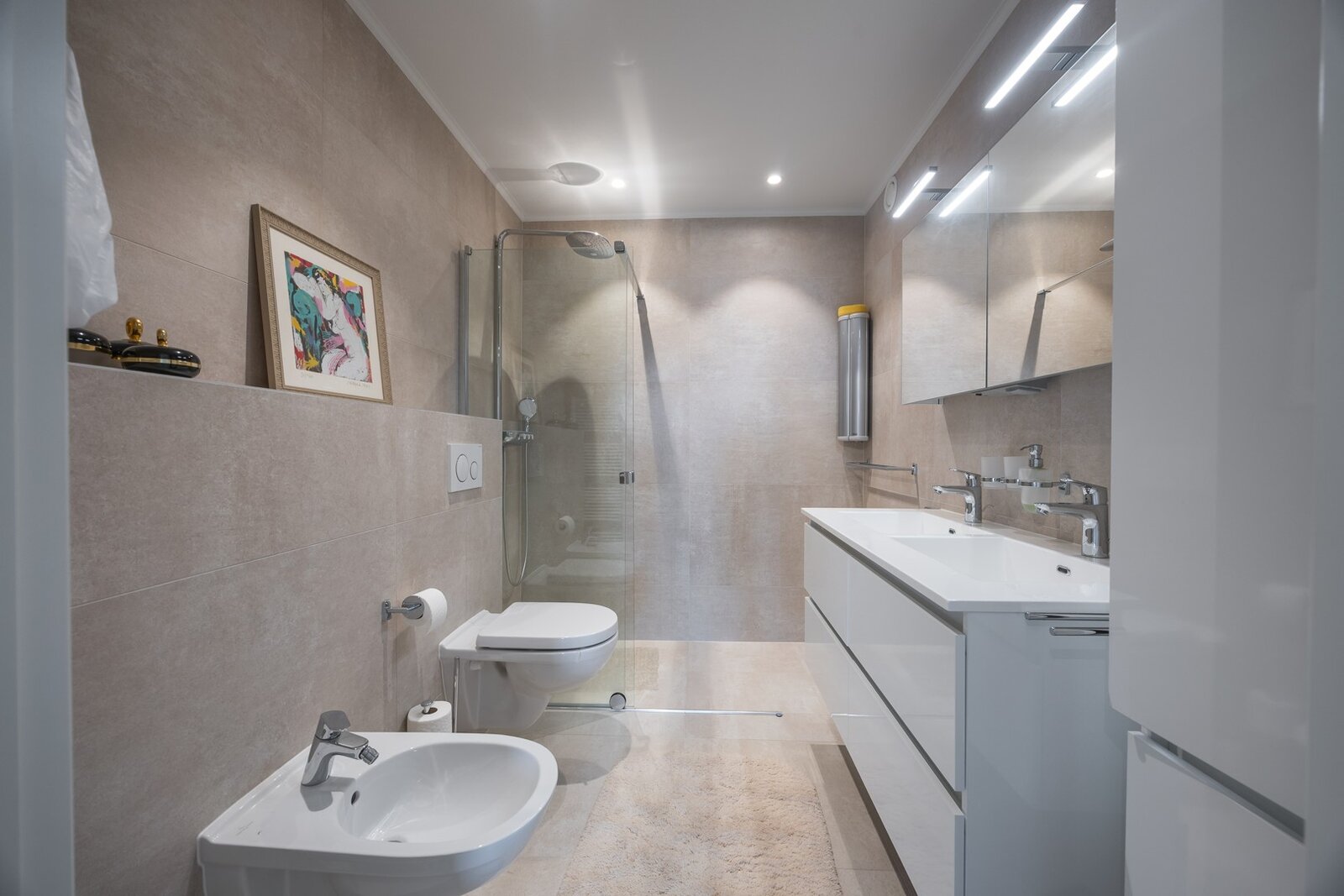 Het appartement beschikt over drie volwaardige slaapkamers, twee stijlvolle badkamers (waaronder één met inloopdouche en één met ligbad), een aparte technische berging en een gastentoilet. Een privatieve kelderberging is inbegrepen in de prijs. U heeft de mogelijkheid tot aankoop van meerdere garageboxen in dezelfde residentie. Dit appartement is het beste van het project The Waves, het combineert zon en zee op een fantastische oppervlakte.