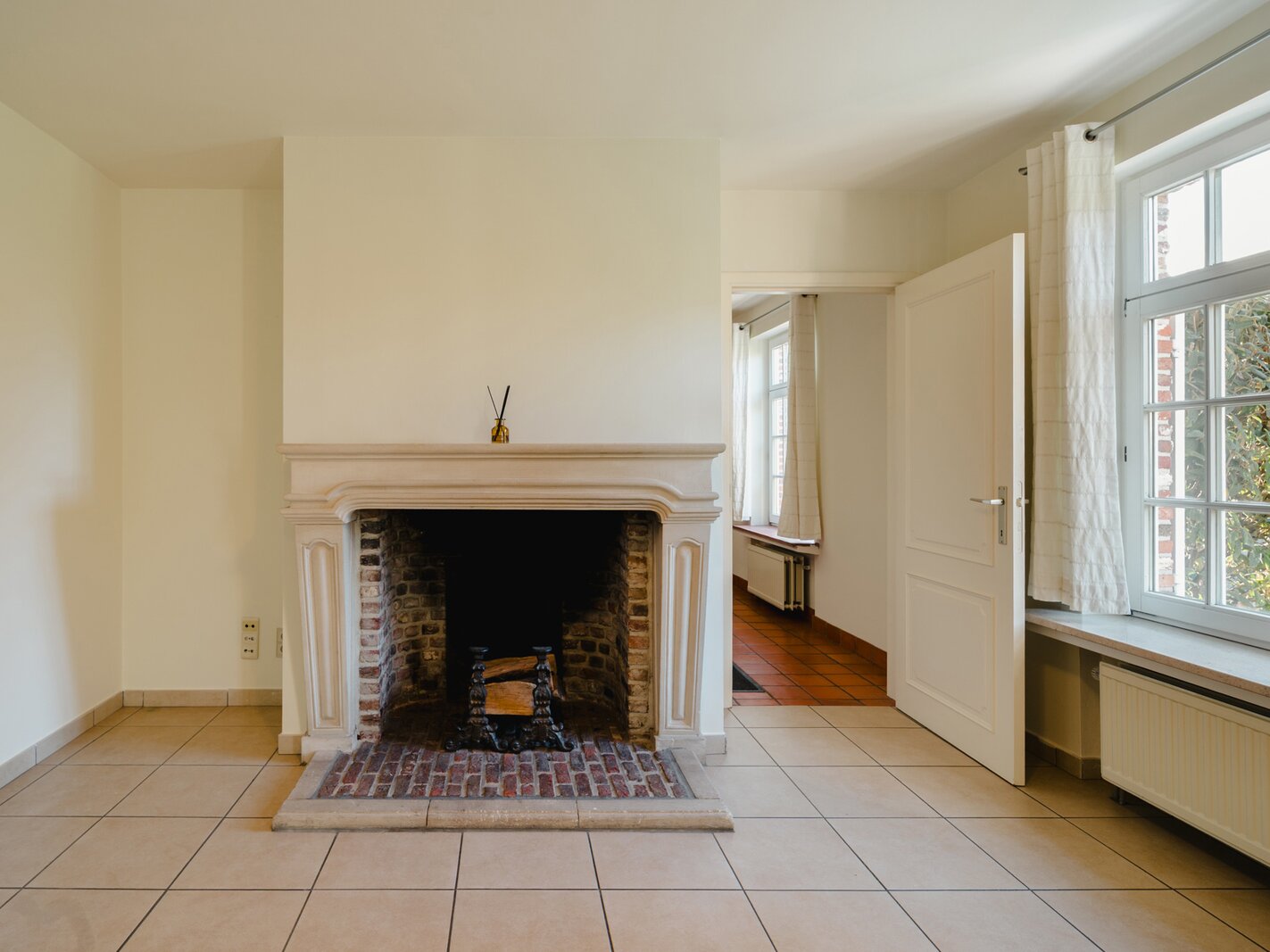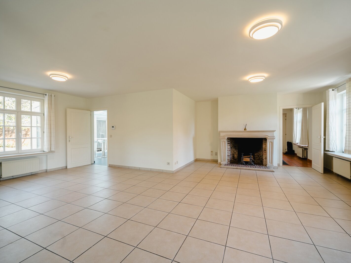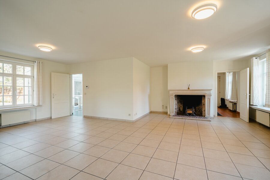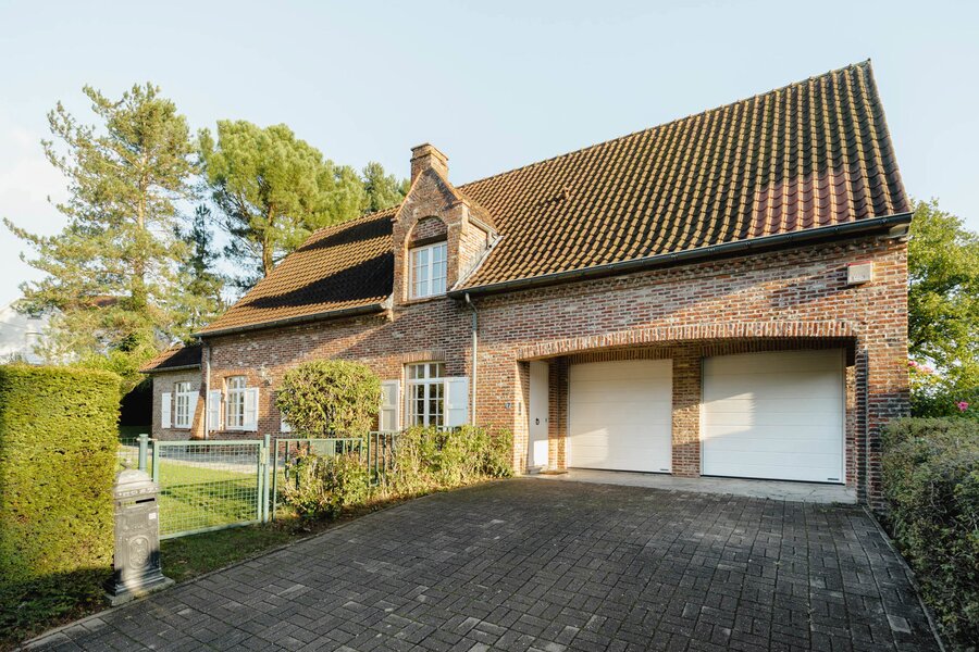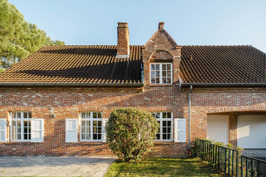 De woning komt uit op een inkomhal met gastentoilet en leidt naar de leefruimtes van 40 m², die baden in het licht dankzij erkers met uitzicht op de tuin. De woonkamer is voorzien van een werkende open haard en een eetkamer. Een grote, volledig ingerichte keuken met eetkamer en toegang tot de tuin maakt de woning compleet. Boven zijn er vier slaapkamers, elk met een inloopkast en een eigen badkamer, en een bergzolder. Een dubbele garage maakt de woning compleet.