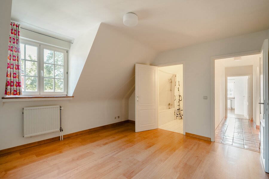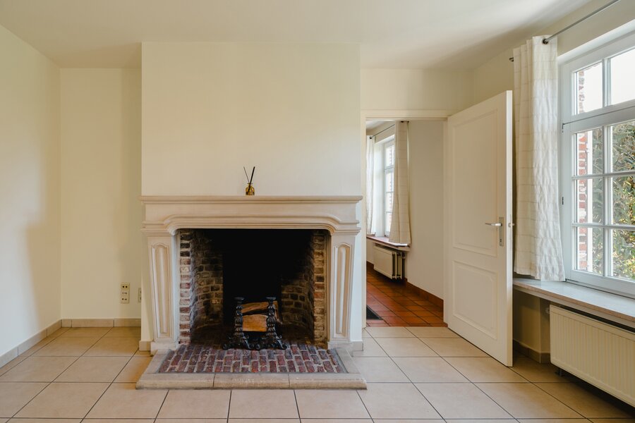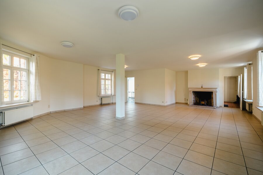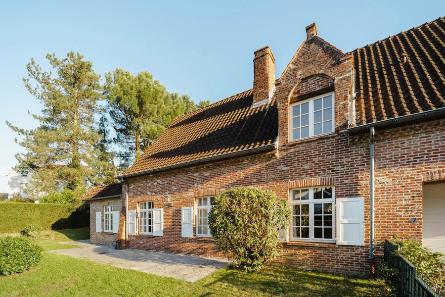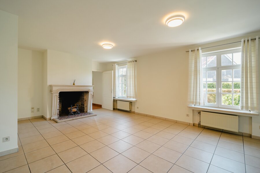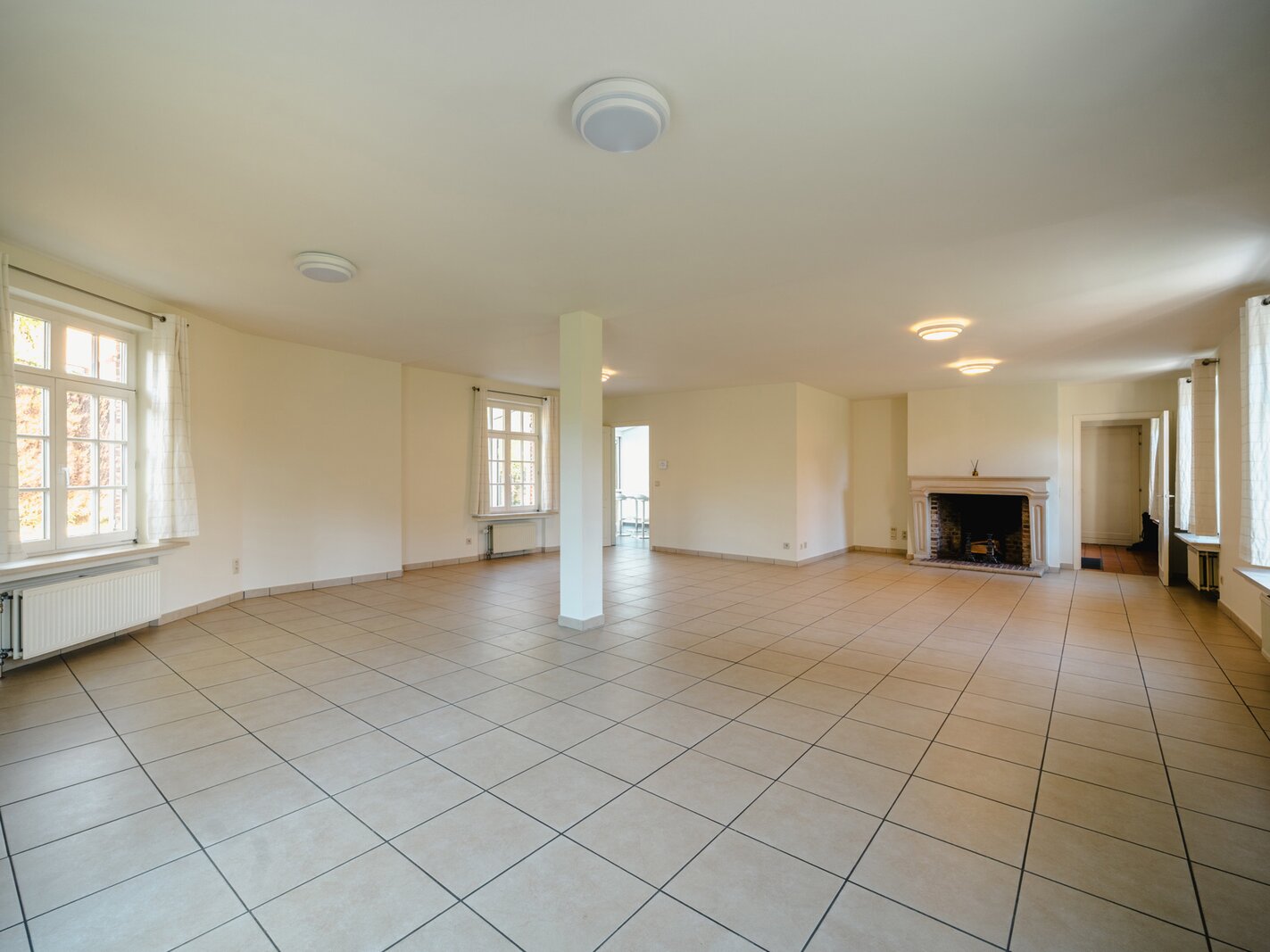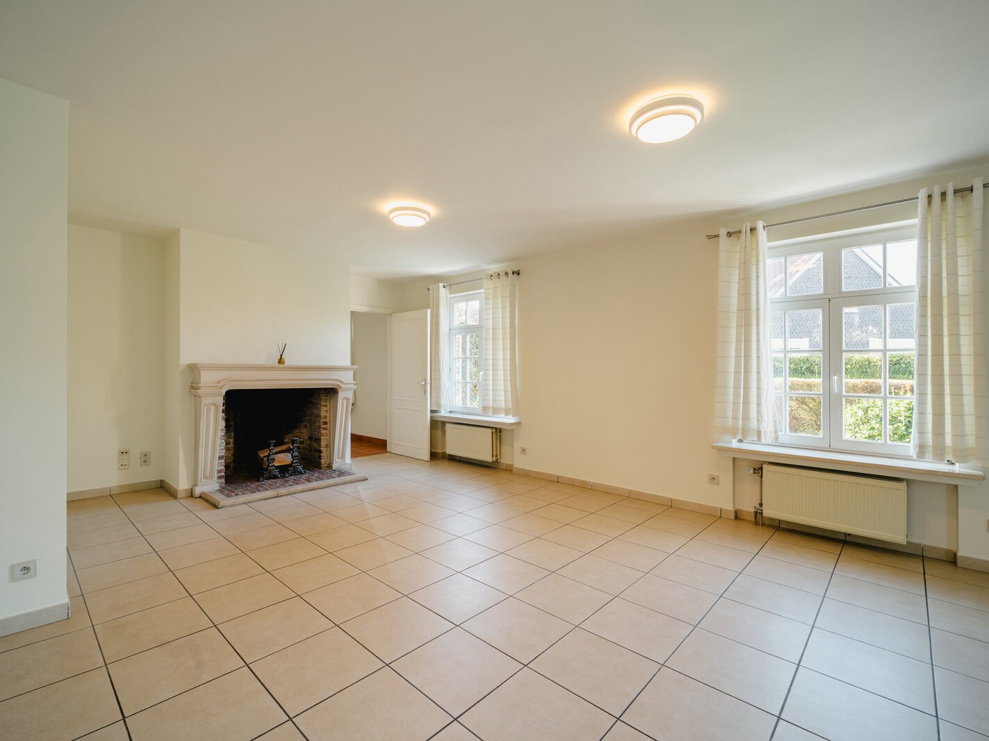 De woning komt uit op een inkomhal met gastentoilet en leidt naar de leefruimtes van 40 m², die baden in het licht dankzij erkers met uitzicht op de tuin. De woonkamer is voorzien van een werkende open haard en een eetkamer. Een grote, volledig ingerichte keuken met eetkamer en toegang tot de tuin maakt de woning compleet. Boven zijn er vier slaapkamers, elk met een inloopkast en een eigen badkamer, en een bergzolder. Een dubbele garage maakt de woning compleet.