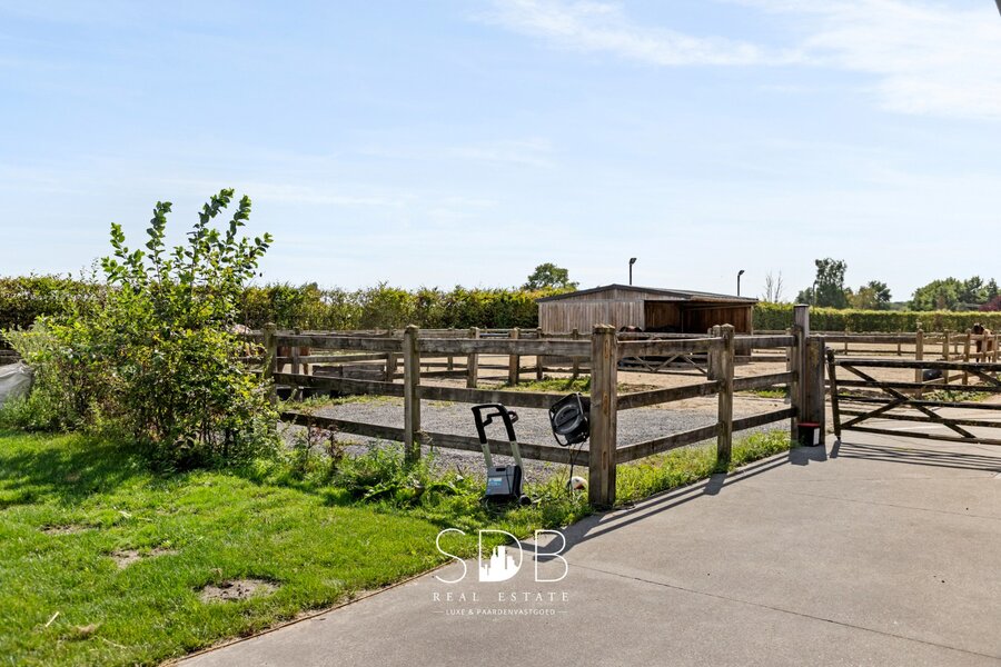 Tot slot zijn er 2,3 hectare graslanden volledig omheind in houten hekwerk en opgedeeld in diverse percelen. Eveneens zijn er paddocks voorzien van een inloopstal en automatische drinkbakken.