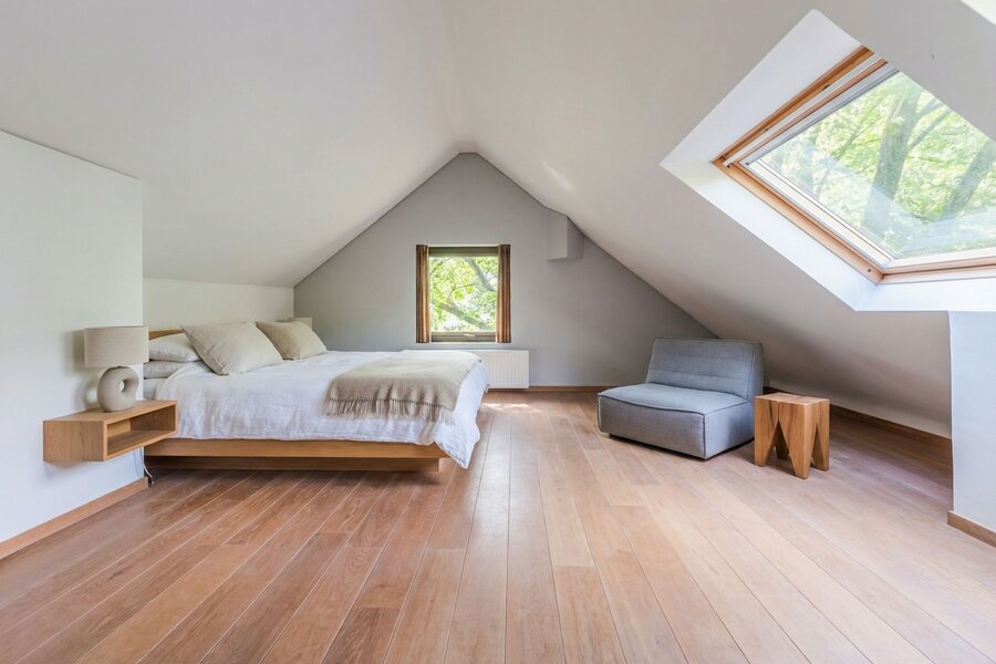 De zolder herbergt een grote extra slaapkamer, toegankelijk via een onafhankelijke trap die ook naar de recentelijk geïsoleerde zolder leidt.