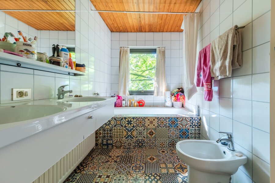 De bovenverdieping bestaat uit een ouderlijke suite met een semi-open badkamer, aparte toiletten en een terras met uitzicht op de tuin. Drie extra slaapkamers, een badkamer en een douchekamer maken deze verdieping compleet.