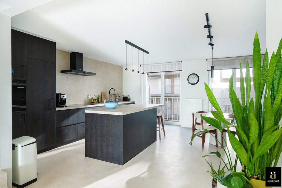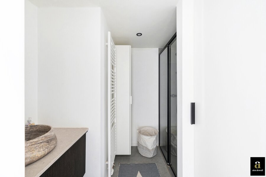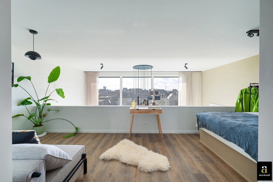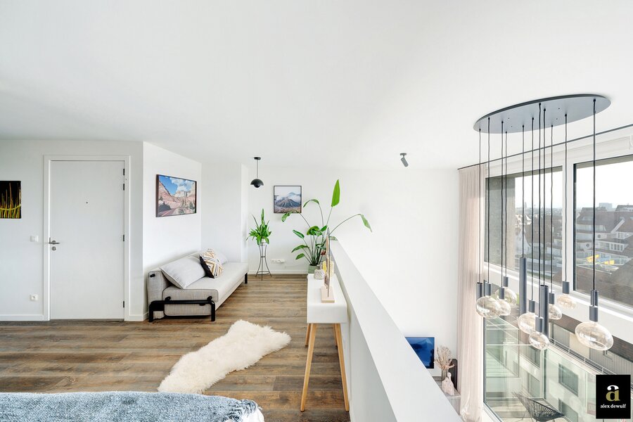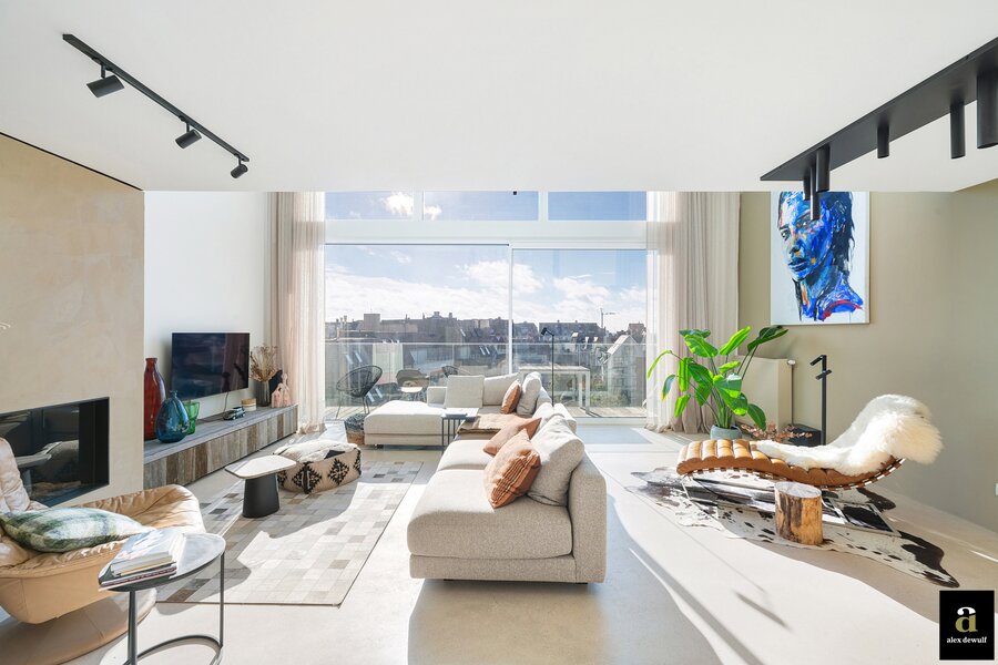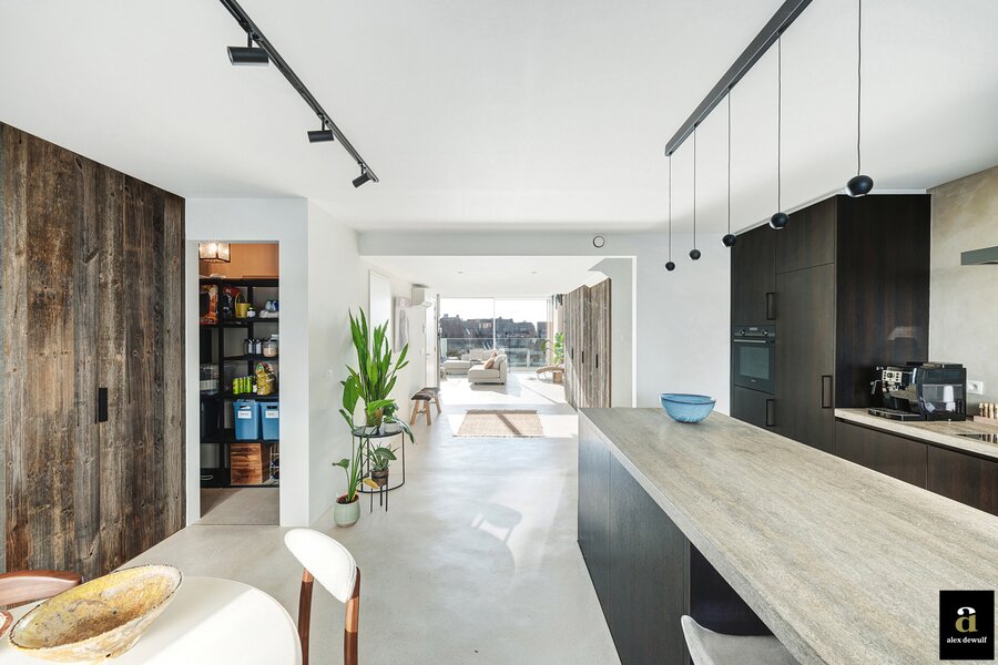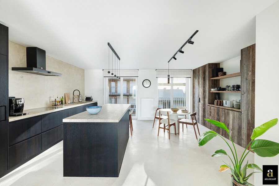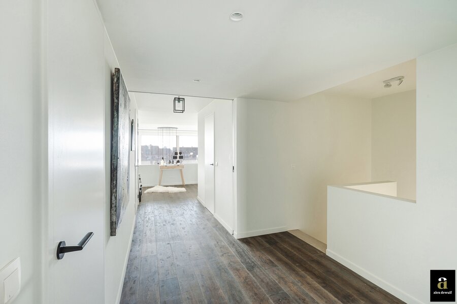 Dit appartement werd ingericht met hoogwaardige materialen en oog voor detail: maatkasten in barnwood, kalkpleistervloeren, parket op de bovenverdieping en badkamermeubilair in notelaar en ruwe eik. Zonnewerend glas aan de zuidzijde en elektrische zonneschermen zorgen voor optimaal comfort. Ventilatiesysteem type D, condenserende ketel en airconditioning per ruimte. Privatieve kelder met fietshaken. Mogelijkheid tot aankoop van een dubbele garagebox in het gebouw.