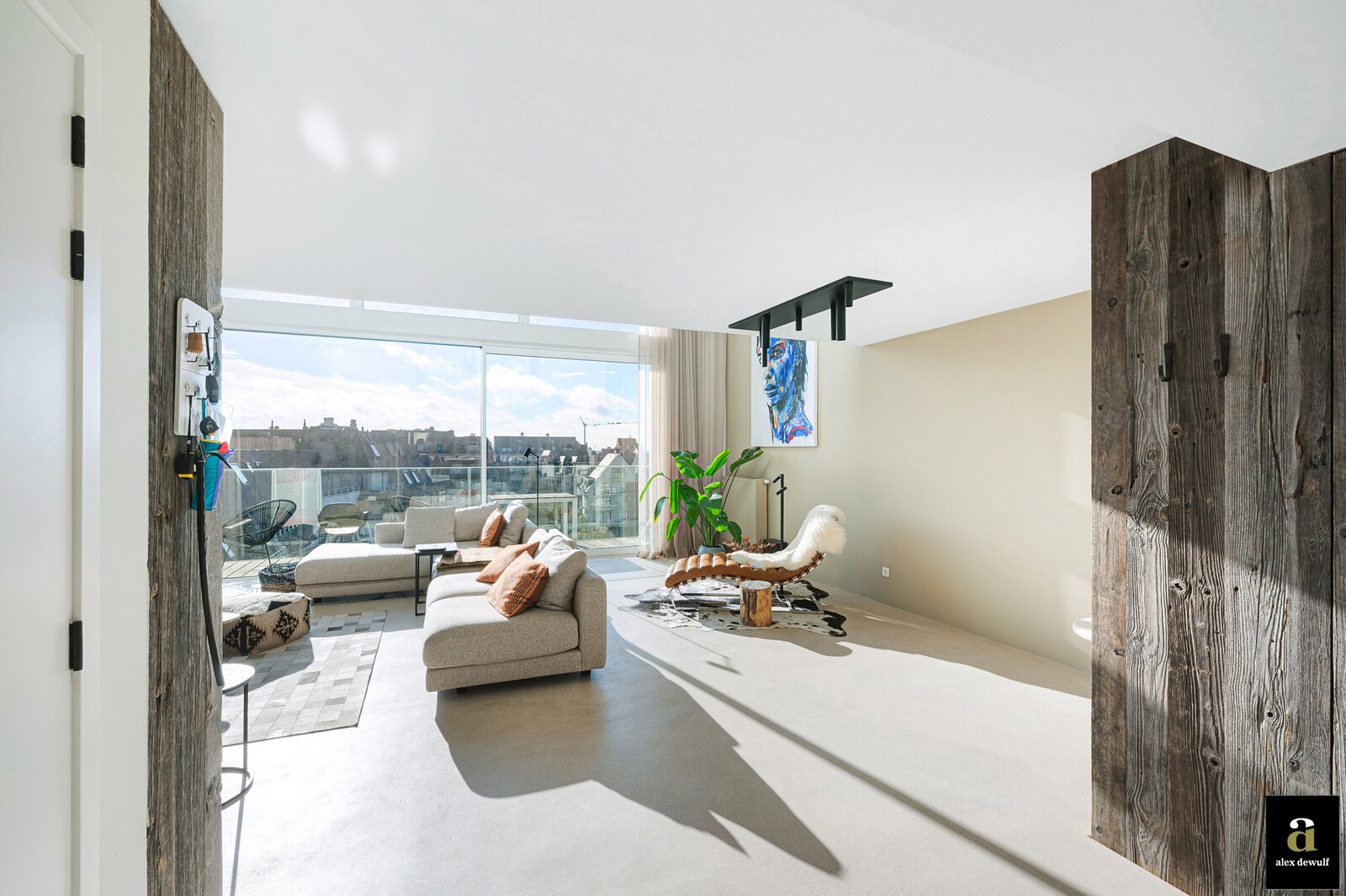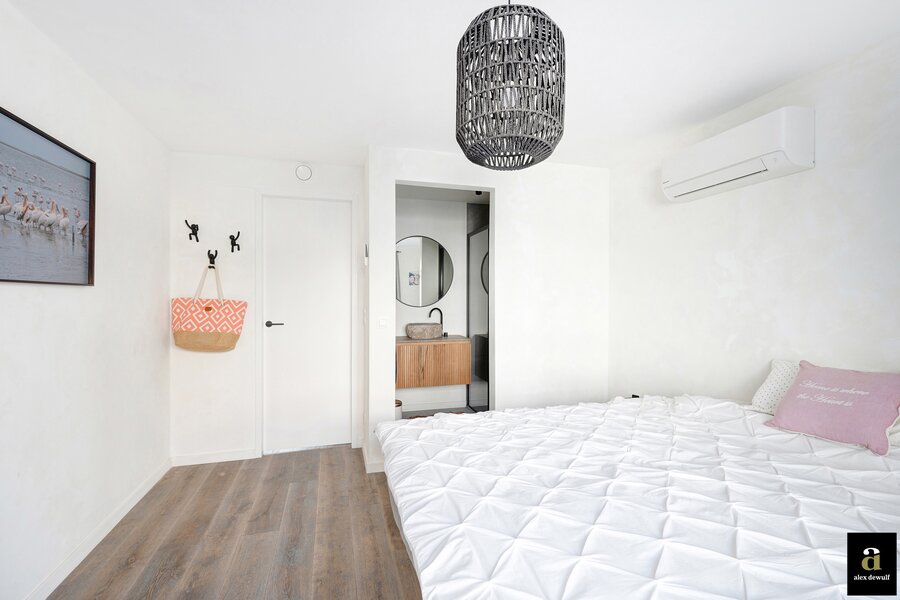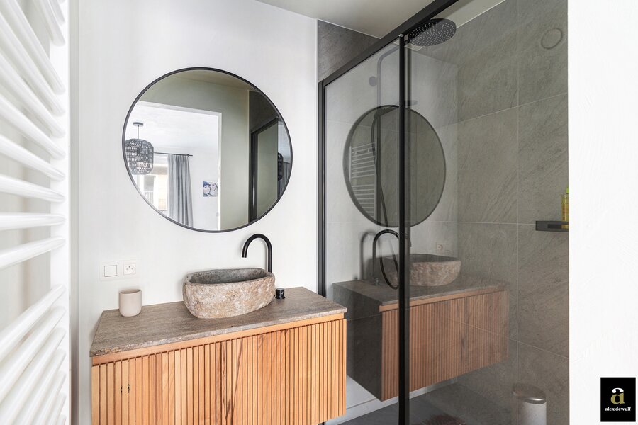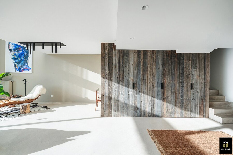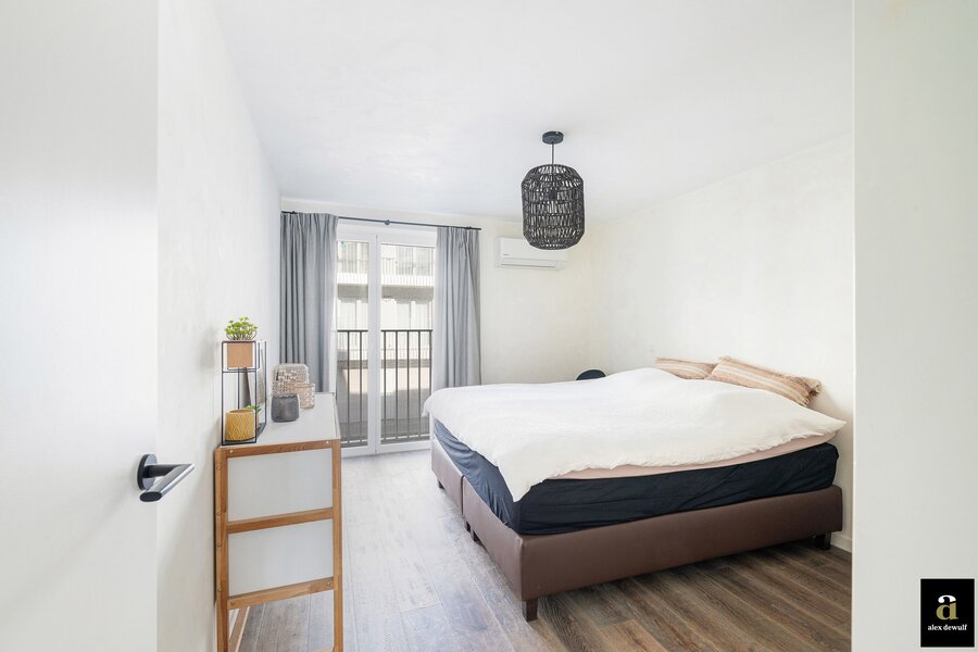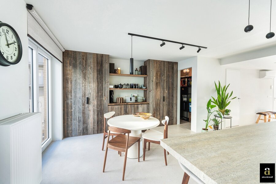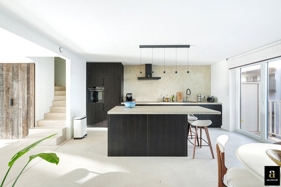 Dit appartement werd ingericht met hoogwaardige materialen en oog voor detail: maatkasten in barnwood, kalkpleistervloeren, parket op de bovenverdieping en badkamermeubilair in notelaar en ruwe eik. Zonnewerend glas aan de zuidzijde en elektrische zonneschermen zorgen voor optimaal comfort. Ventilatiesysteem type D, condenserende ketel en airconditioning per ruimte. Privatieve kelder met fietshaken. Mogelijkheid tot aankoop van een dubbele garagebox in het gebouw.