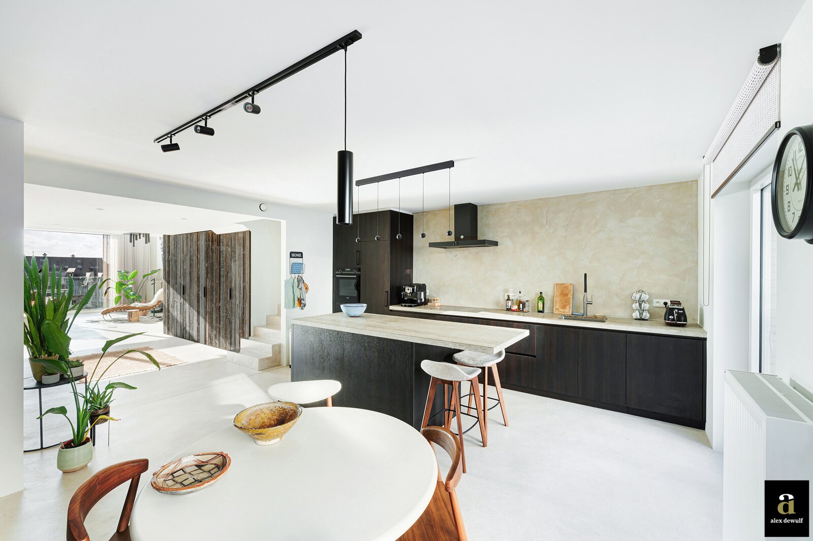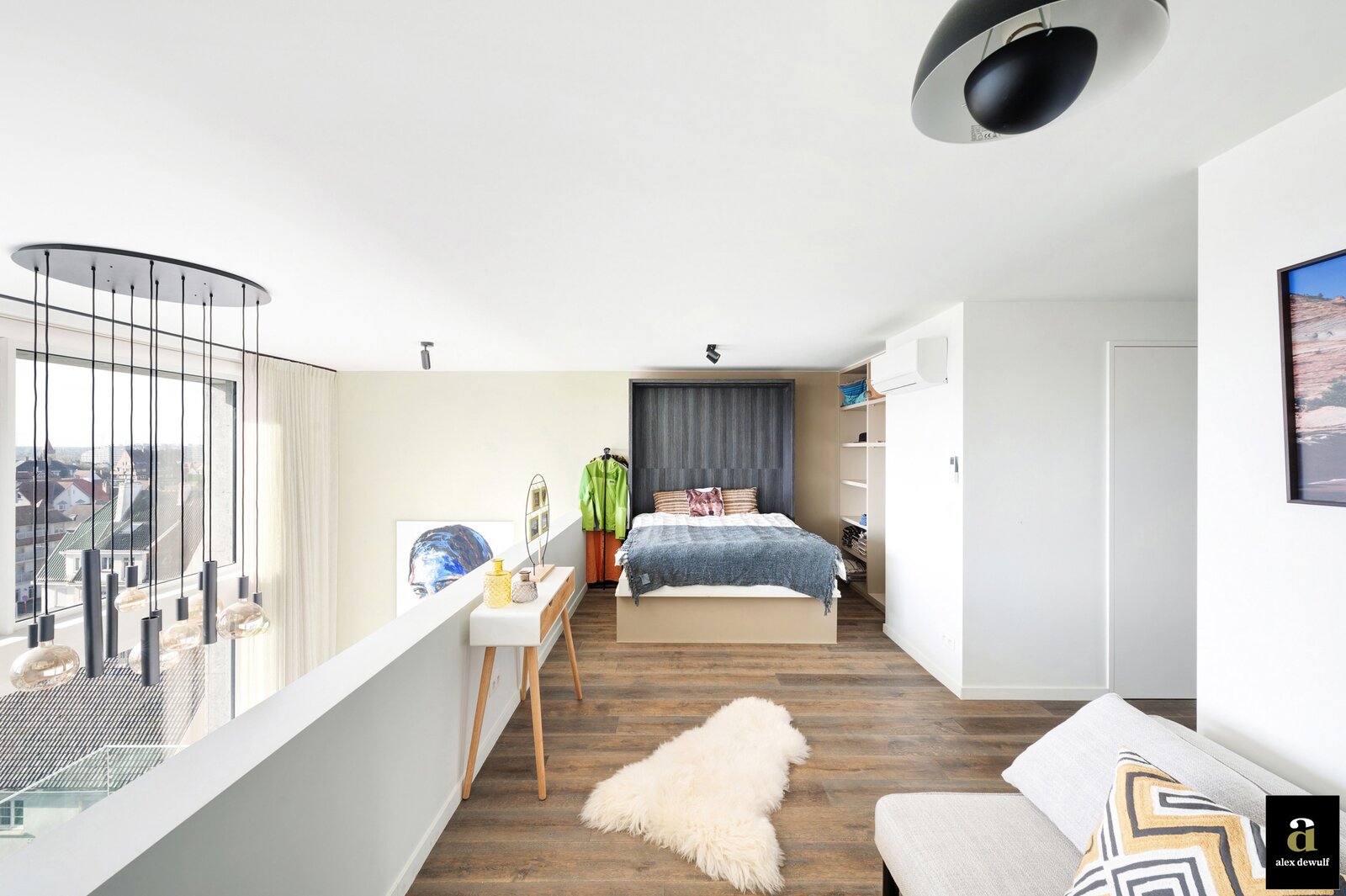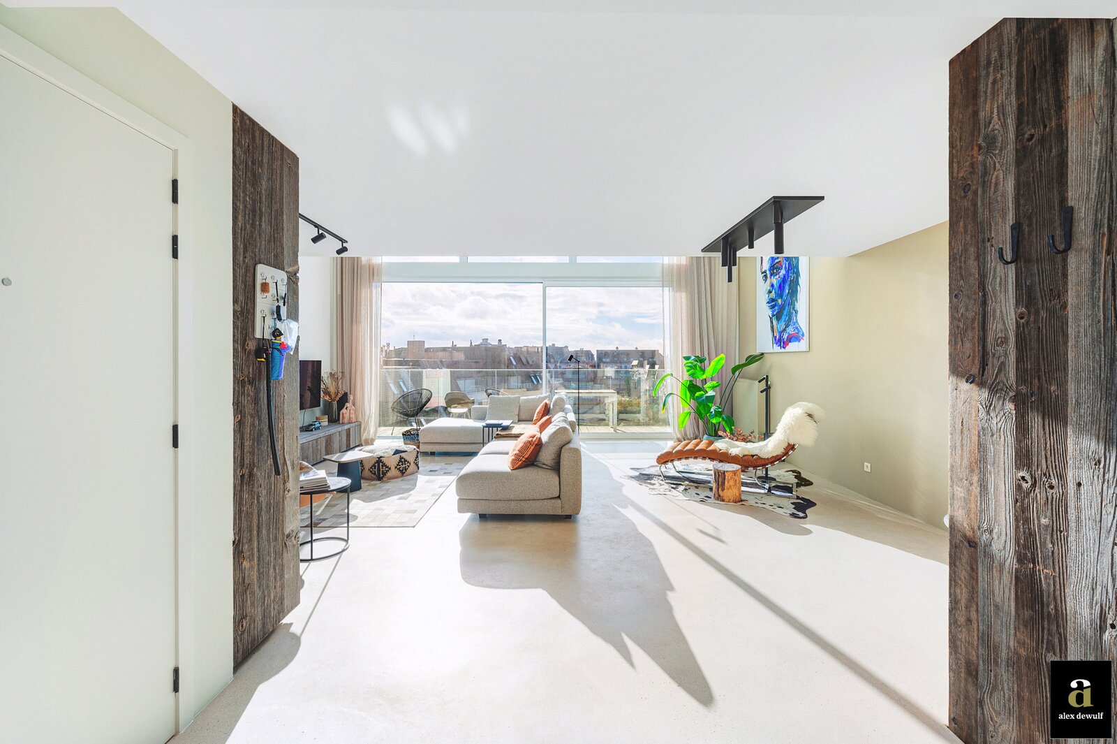 Dit appartement werd ingericht met hoogwaardige materialen en oog voor detail: maatkasten in barnwood, kalkpleistervloeren, parket op de bovenverdieping en badkamermeubilair in notelaar en ruwe eik. Zonnewerend glas aan de zuidzijde en elektrische zonneschermen zorgen voor optimaal comfort. Ventilatiesysteem type D, condenserende ketel en airconditioning per ruimte. Privatieve kelder met fietshaken. Mogelijkheid tot aankoop van een dubbele garagebox in het gebouw.