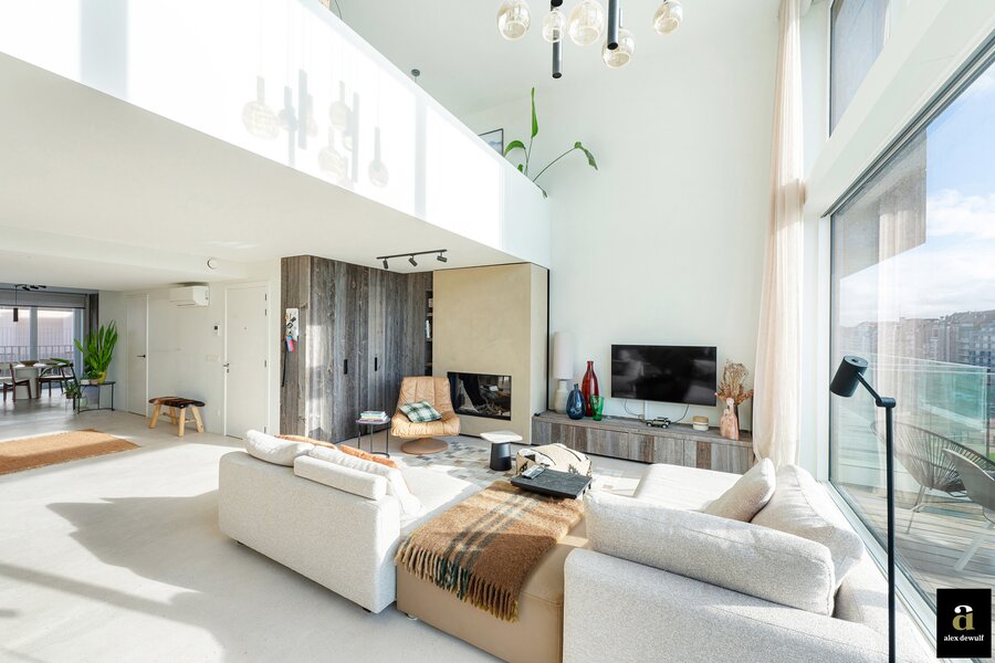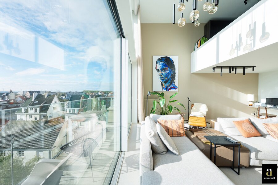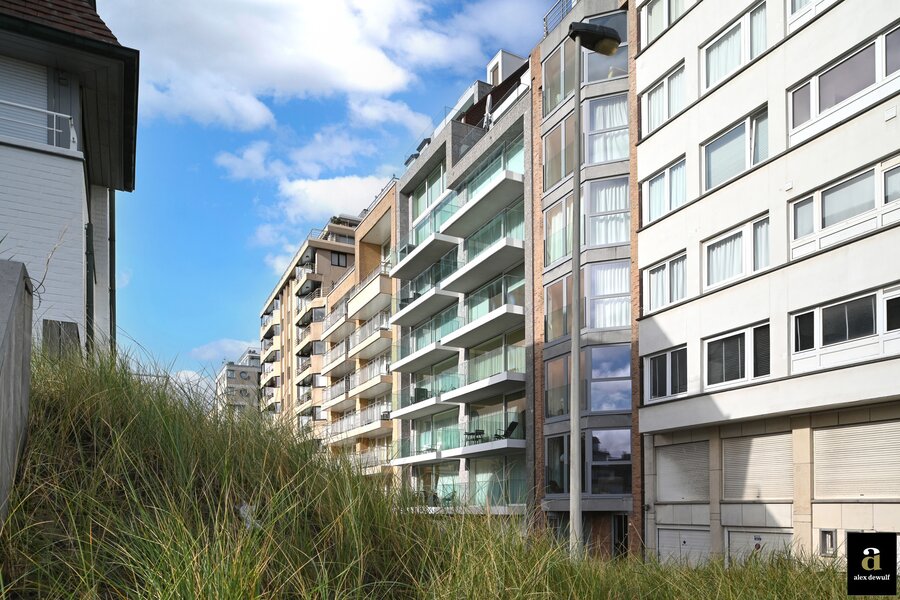 In Duinbergen, op enkele passen van de zeedijk en de RSBC, bevindt zich dit uitzonderlijk mezzanine-appartement van ca. 215 m² (7m gevelbreedte) in de recente Residentie Hampton Beach. Indeling: inkomhal met vestiaire, gastentoilet en berging. Brede en lichtrijke leefruimte met grote raampartijen en toegang tot het zuidgericht terras met open zicht over de villawijk. Achteraan bevindt zich de open ingerichte keuken met kookeiland in natuursteen en toegang tot het tweede terras. Op het verdiep: drie ruime slaapkamers. De master bedroom met en-suite douchekamer. Gastenkamer met plaats voor dubbel bed. Mezzaninekamer met open dressing en douchekamer (met aansluiting wasmachine/droogkast). Op de nachthal: derde badkamer met ligbad, toilet en lavabo. De verdieping is ook bereikbaar via de gemeenschappelijke lift.