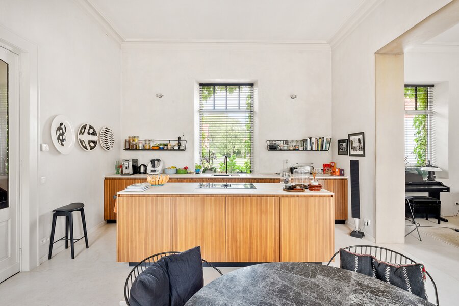 * een prachtige herenwoning (prachtige inkomhal en trap, 3 leefruimtes, 2 keukens, 5 slk, 2 badkamers en privé-terrassen) met prachtige verzichten