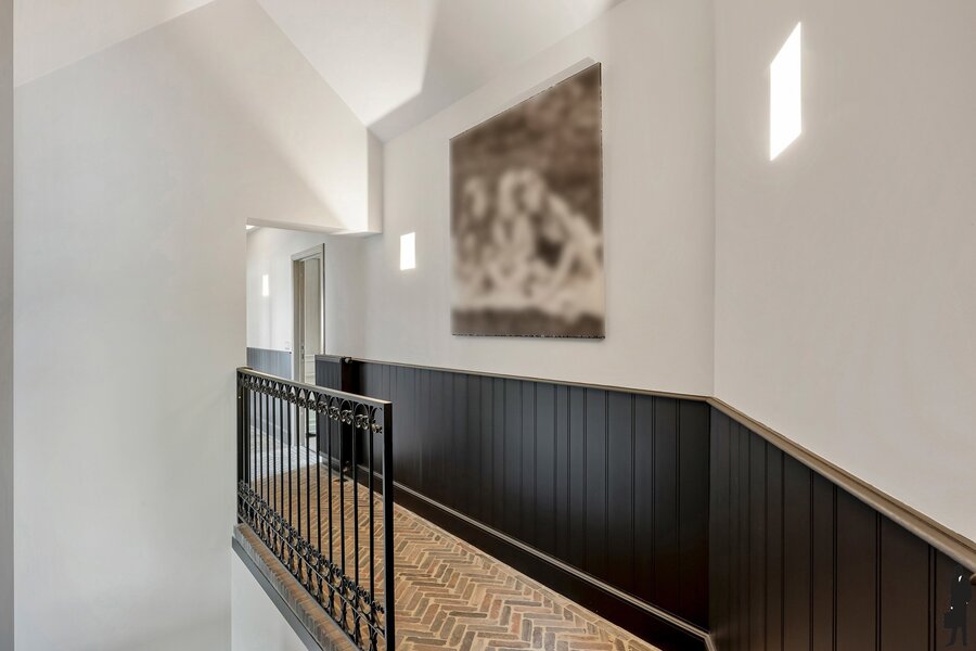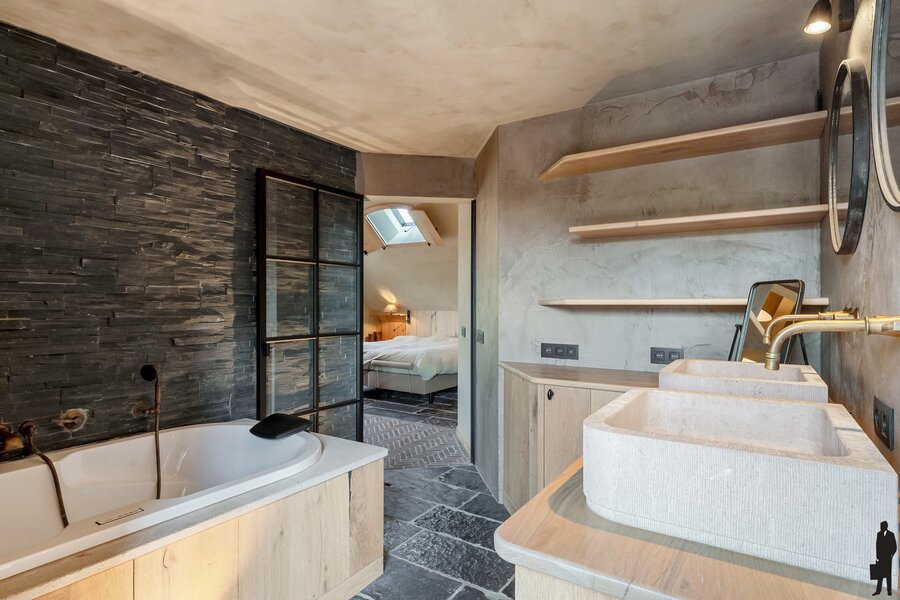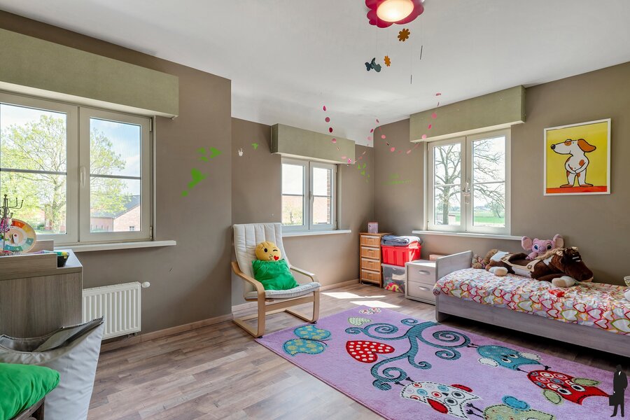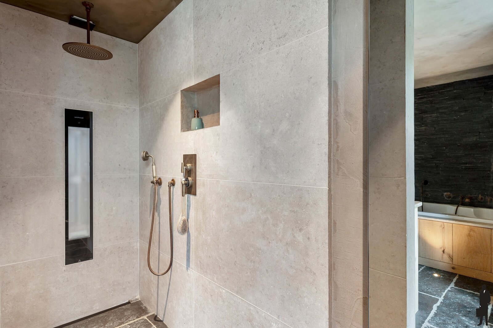 Op het eerste verdiep bevindt zich een ruime hoofdslaapkamer met een uiterst kwaliteits- en sfeervol ingerichte ensuite badkamer. Deze badkamer is uitgerust met een bubbelbad, inloopdouche en infraroodspiegel, wat zorgt voor een heus wellnessgevoel. Daarnaast zijn er op deze verdieping bijkomend drie volwaardige slaapkamers, ideaal voor kinderen, logés of extra werk-/hobbyruimtes. Een tweede badkamer, eveneens hoogwaardig afgewerkt, bevindt zich in de nachthal en doet dienst voor de overige slaapvertrekken.