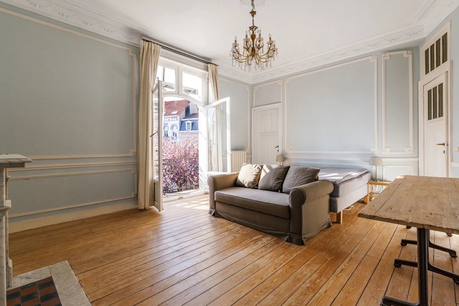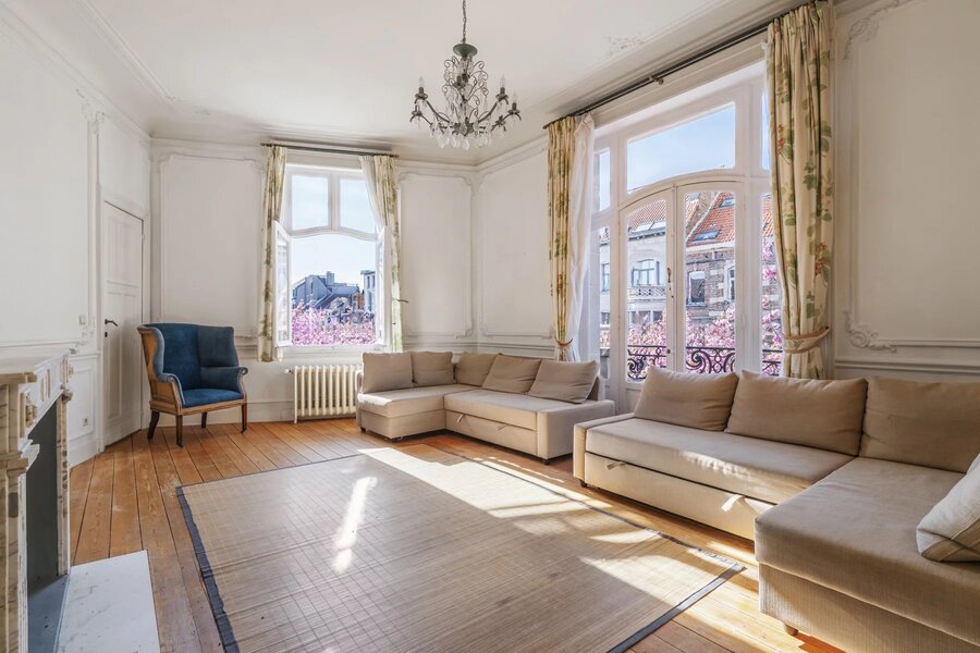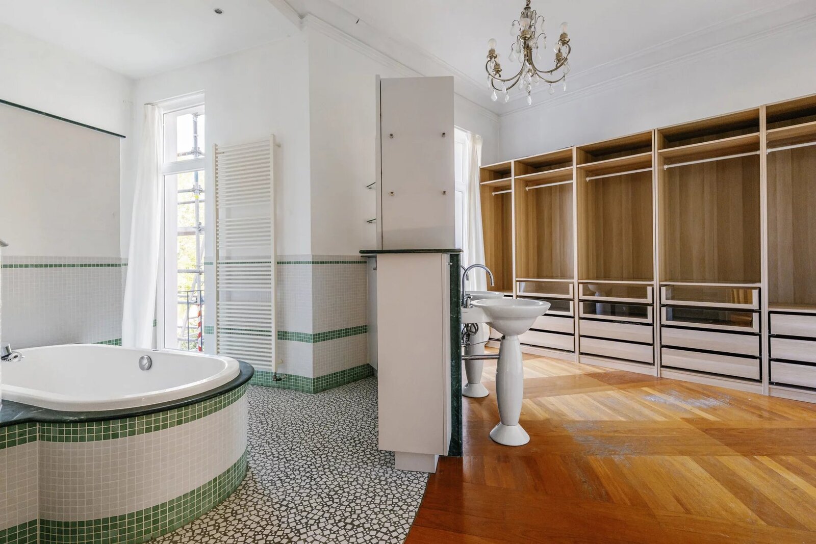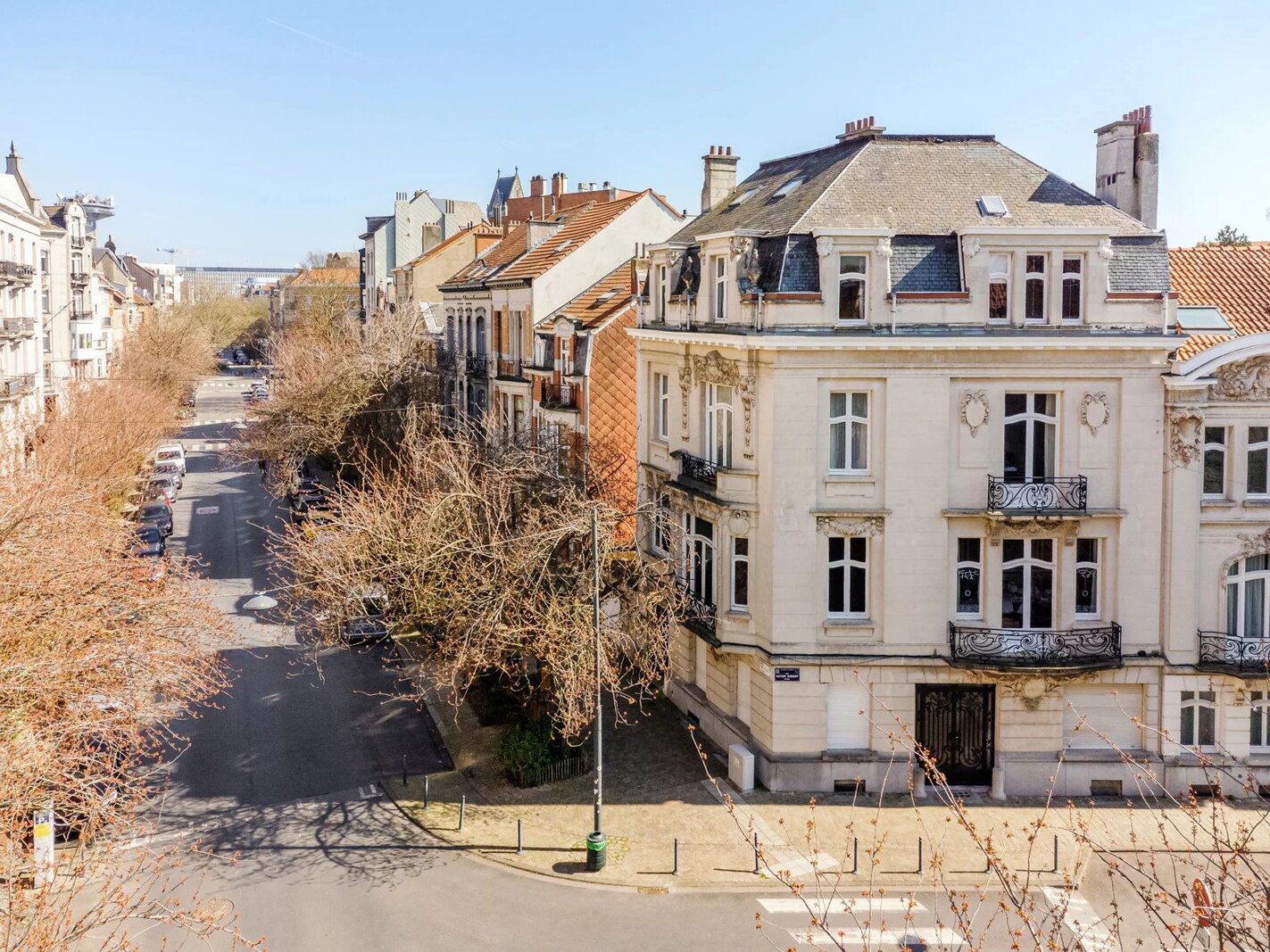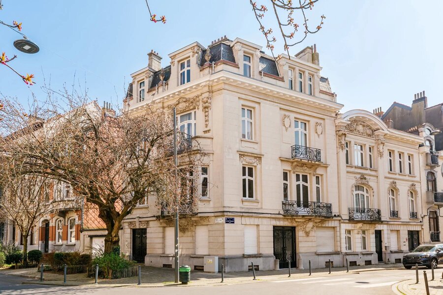 Schaarbeek: Victoire - Junot presenteert dit uitzonderlijke herenhuis in Beaux-Arts-stijl met drie gevels, gebouwd op een perceel van 2 are 20, met talrijke authentieke elementen, gebeeldhouwde decoraties, ornamenten, glas-in-loodramen, binnenfresco's, parketvloeren en ijzerwerk. Het baadt in het licht en biedt zeer mooie volumes met hoge plafonds, een oppervlakte exclusief kelders en zolder van ± 120 m² per verdieping of ± 631 m² (PEB) met kantoren, recepties, eetkamer, keukens, badkamers, slaapkamers, kleedkamer, kelders en zolder. Het dak zal tegen juni nieuw, geïsoleerd en afgewerkt zijn. Twee ingangen, waaronder een "drive-through". Garage. Tuin - binnenplaats, talrijke bewoningsmogelijkheden. Gascondensatieketel 2022. Nieuw dak 2025, wat de PEB F