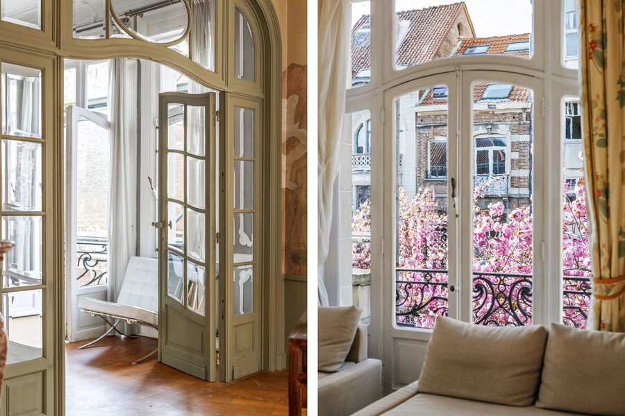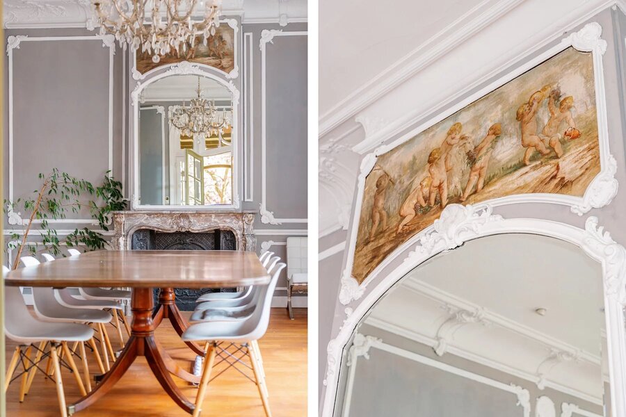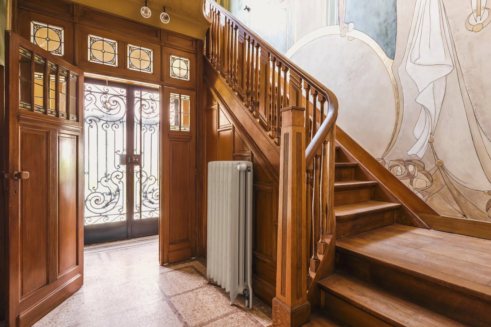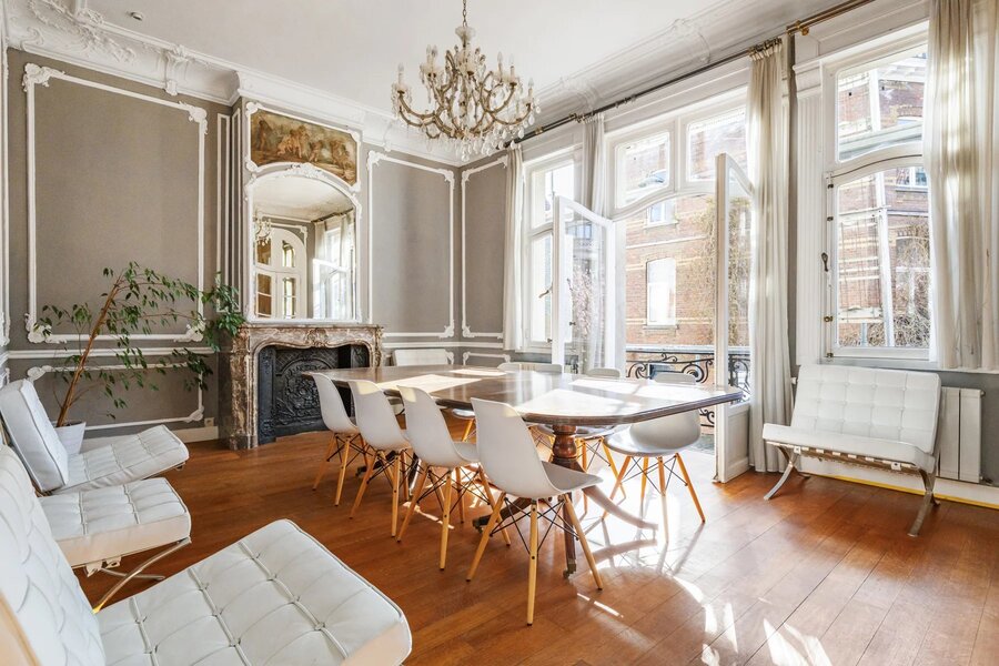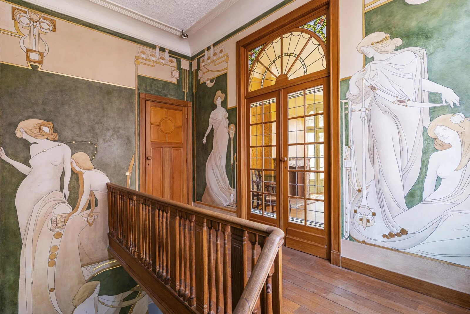 Schaarbeek: Victoire - Junot presenteert dit uitzonderlijke herenhuis in Beaux-Arts-stijl met drie gevels, gebouwd op een perceel van 2 are 20, met talrijke authentieke elementen, gebeeldhouwde decoraties, ornamenten, glas-in-loodramen, binnenfresco's, parketvloeren en ijzerwerk. Het baadt in het licht en biedt zeer mooie volumes met hoge plafonds, een oppervlakte exclusief kelders en zolder van ± 120 m² per verdieping of ± 631 m² (PEB) met kantoren, recepties, eetkamer, keukens, badkamers, slaapkamers, kleedkamer, kelders en zolder. Het dak zal tegen juni nieuw, geïsoleerd en afgewerkt zijn. Twee ingangen, waaronder een "drive-through". Garage. Tuin - binnenplaats, talrijke bewoningsmogelijkheden. Gascondensatieketel 2022. Nieuw dak 2025, wat de PEB F