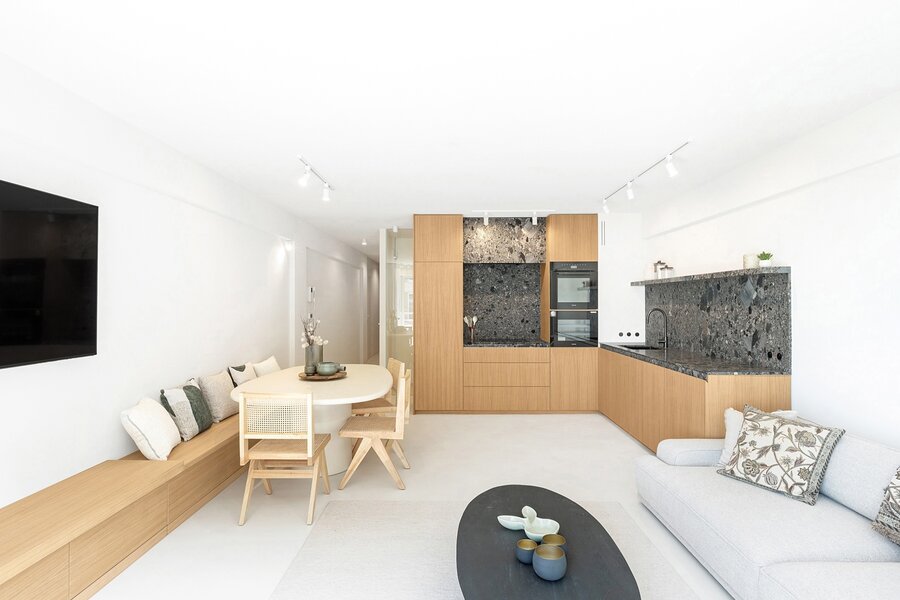 Aan het iconische Rubensplein in Knokke, op een uitzonderlijke ligging op de hoek van de Zeedijk, bevindt zich dit prachtig gerenoveerde appartement met adembenemend frontaal zeezicht. Dankzij de zuidwestelijke oriëntatie geniet u hier niet alleen van een magnifiek vergezicht over zee, maar ook van zonlicht tot in de avonduren – een absolute troef. De inkomhal verwelkomt u met een praktische vestiaire en gastentoilet. De lichtrijke leefruimte baadt in het zonlicht dankzij de brede raampartijen aan de zeekant en kijkt uit over zowel het strand als het levendige Rubensplein. De open keuken vormt een stijlvol en tegelijk functioneel geheel, uitgerust met hoogwaardige Miele-toestellen, een wijnkast en een aparte diepvriezer – perfect voor wie comfort en kwaliteit weet te appreciëren. Het volledige appartement werd afgewerkt met smaakvolle mortex vloeren voorzien van vloerverwarming, wat zorgt voor een strak en warm interieurgevoel. De hoofdslaapkamer beschikt over ruime ingemaakte kasten en sluit aan op een luxueus afgewerkte douchekamer met een tweede toilet. Ook de tweede slaapkamer is voorzien van praktische ingebouwde kasten en biedt voldoende ruimte voor een volwaardig bed of logeeropstelling. Extra troeven zijn de private kelderberging en de vlot toegankelijke fietsenberging in het gebouw.