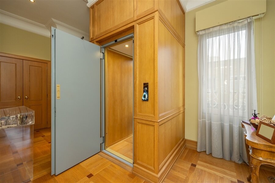 Dankzij de lift kan elke verdieping gemakkelijk bereikt worden en dankzij de oprit met garage en automatische poort is het gemakkelijk parkeren .