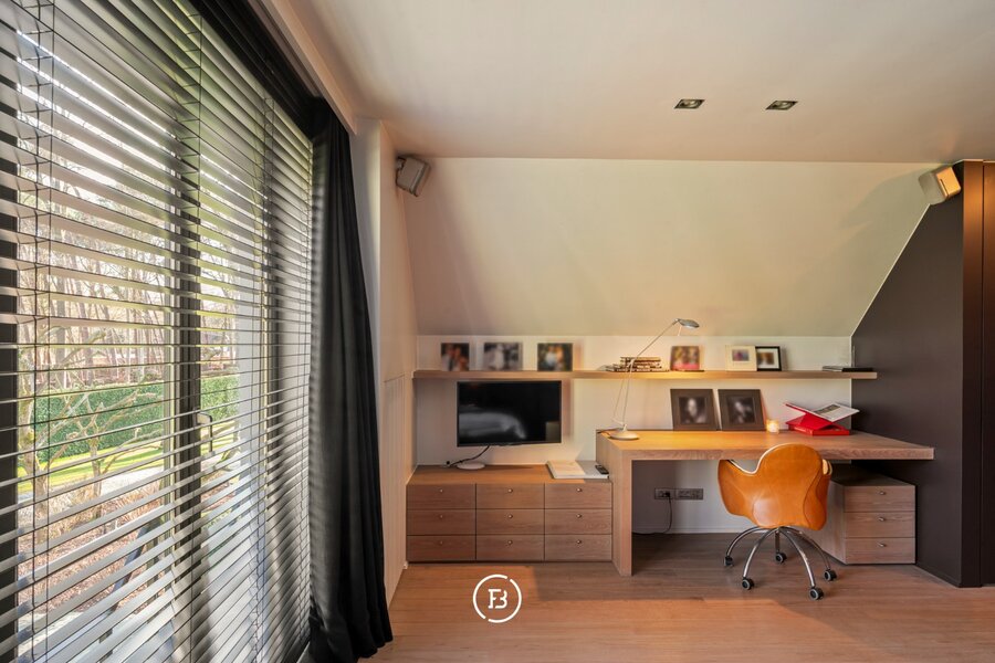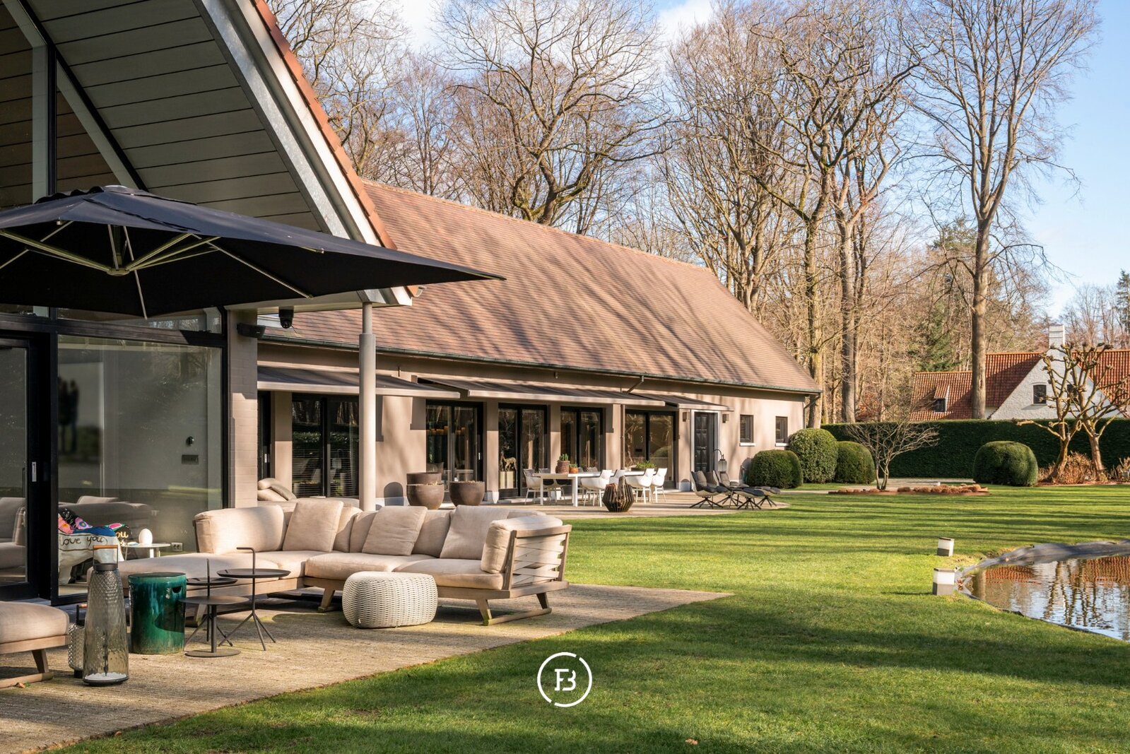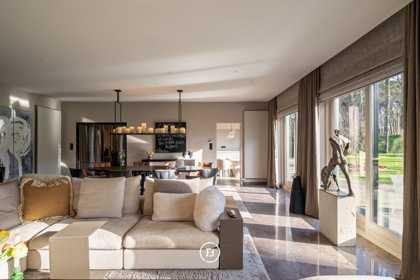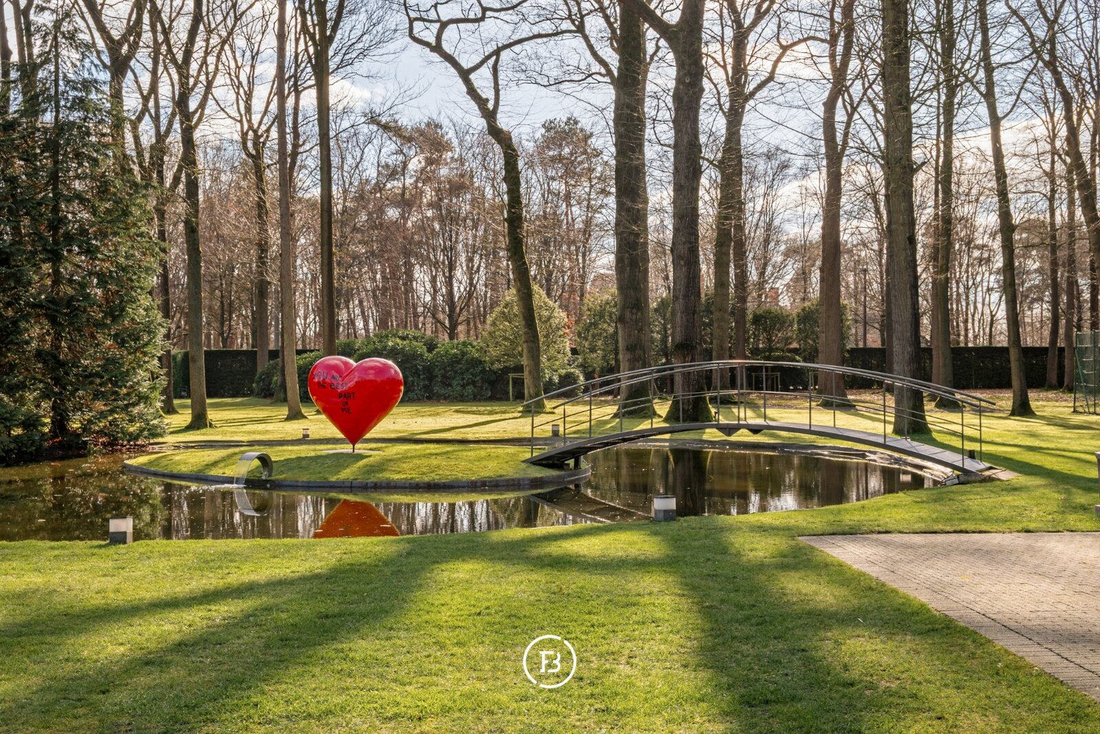 Op één van de mooiste en meest gegeerde percelen van het bos, een uitzonderlijk zuidgericht domein van 13.570 m², ligt deze tijdloze villa waar rust, privacy en actief genieten perfect samenkomen. Het terrein wordt gekenmerkt door een zeldzame combinatie van majestueuze bomen en open, lichtrijke ruimtes, waardoor het een parkachtig en tegelijk luchtig karakter krijgt. Het omheinde perceel is bereikbaar via een indrukwekkende oprijlaan en ontvouwt zich als een privépark met vijver en een tennisplein in kunstgras.
