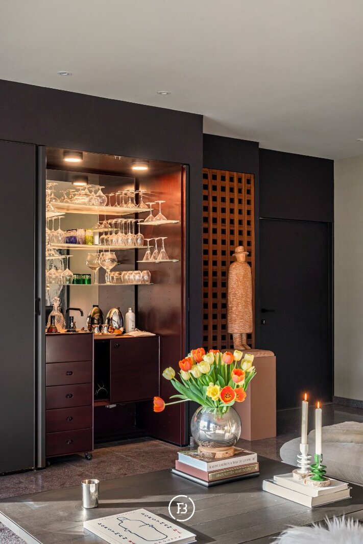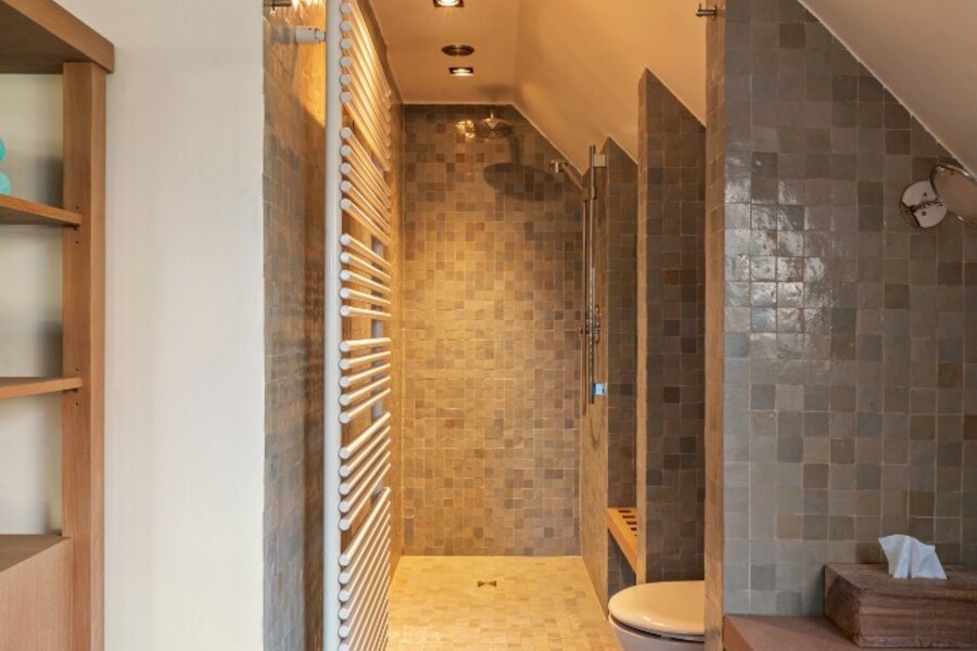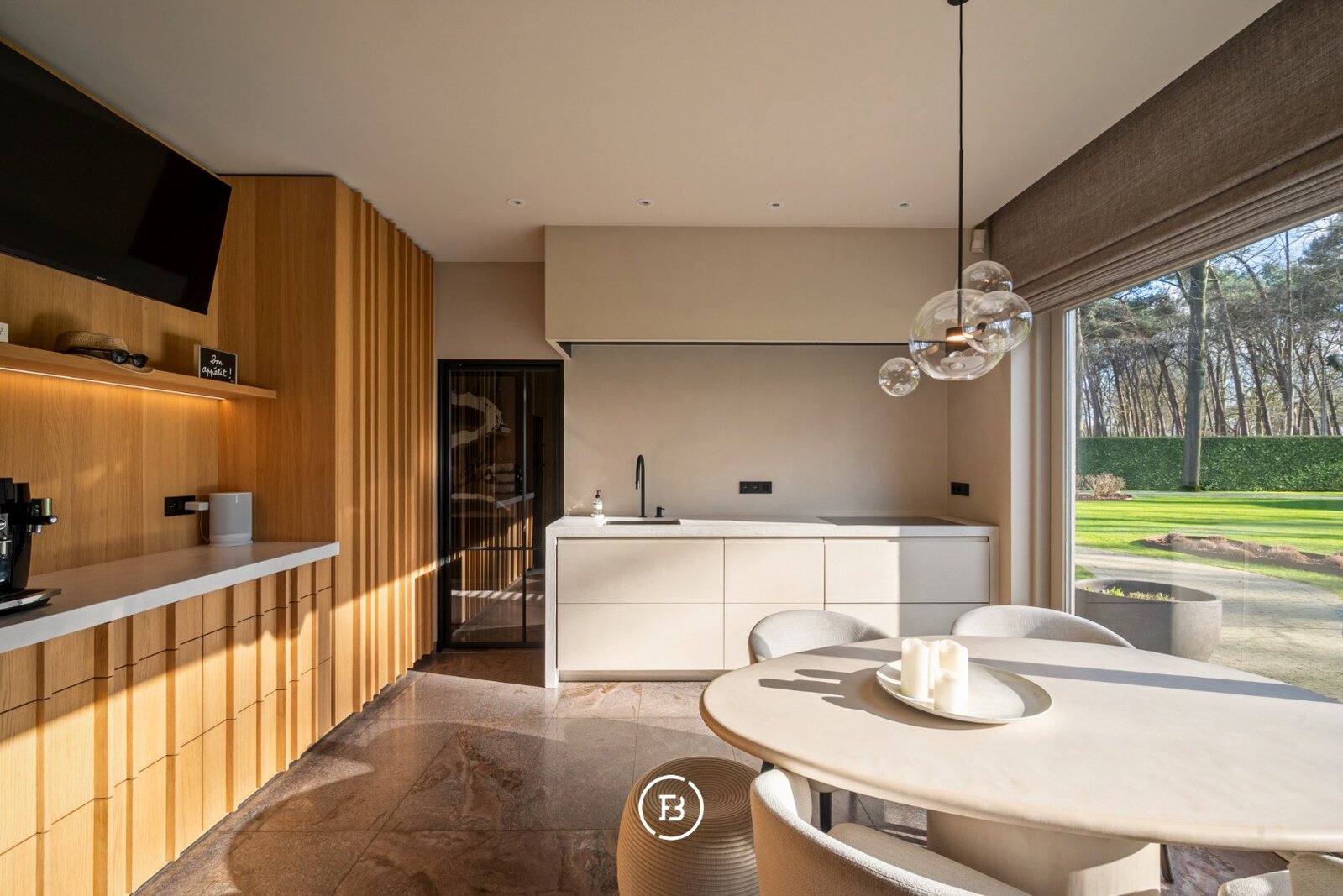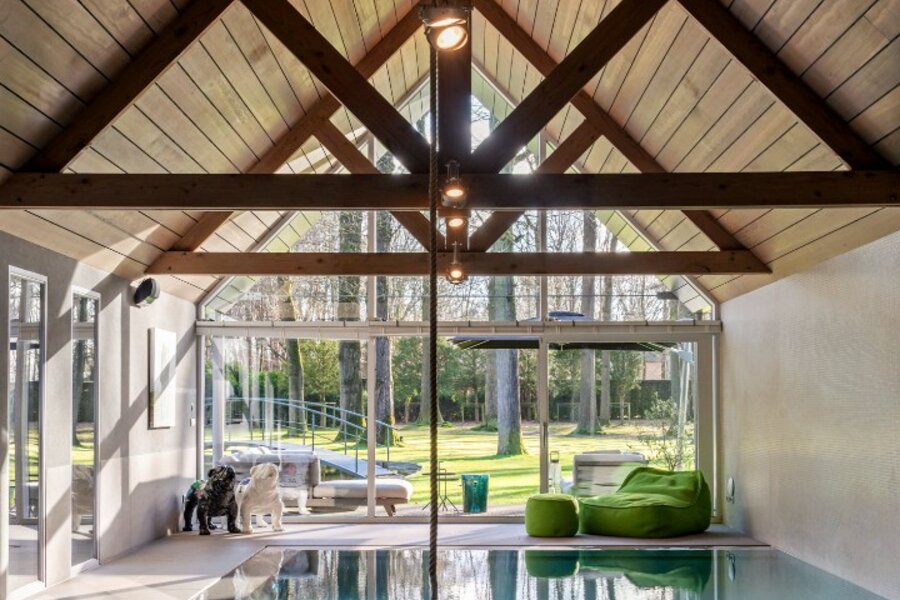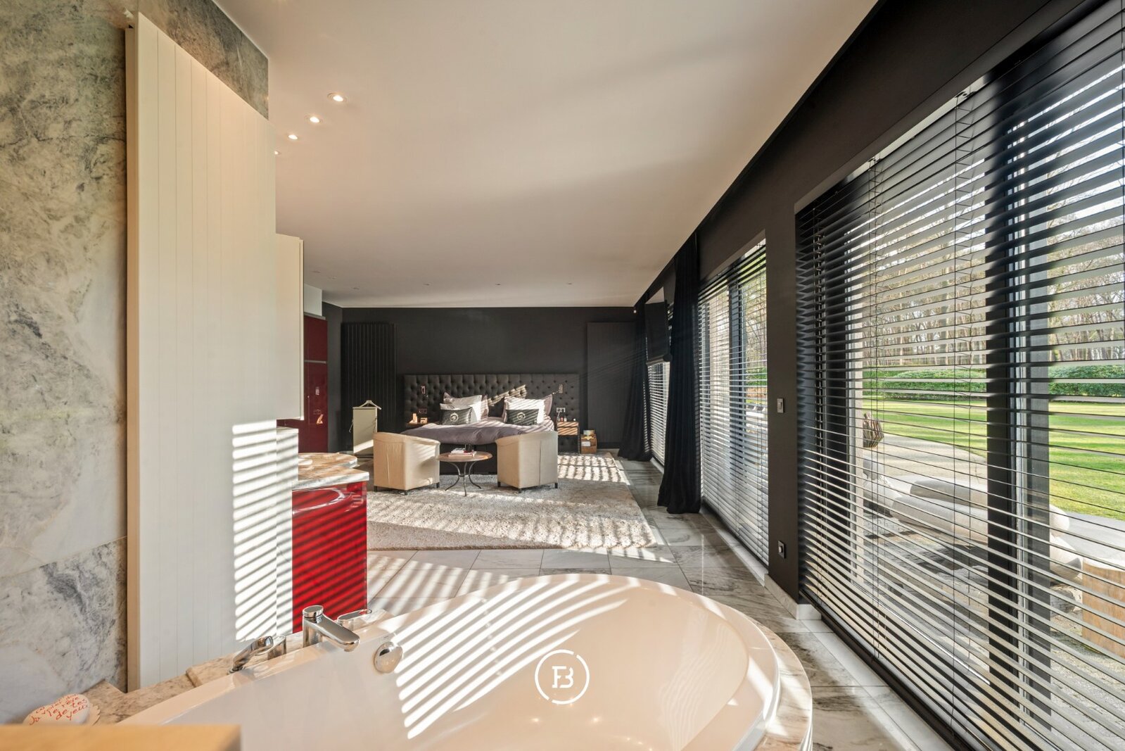 Het gelijkvloers biedt een vernieuwde keuken die naadloos overgaat in de leefruimte met sfeervolle haard, een master bedroom met badkamer en directe toegang tot het wellnessgedeelte met binnenzwembad, jacuzzi en douche, bereikbaar via de slaapkamer én een aparte gang. Verder is er nog een slaapkamer met eigen sanitaire voorzieningen, uitgevend op een patio, een grote berging en een ruime dubbele garage.