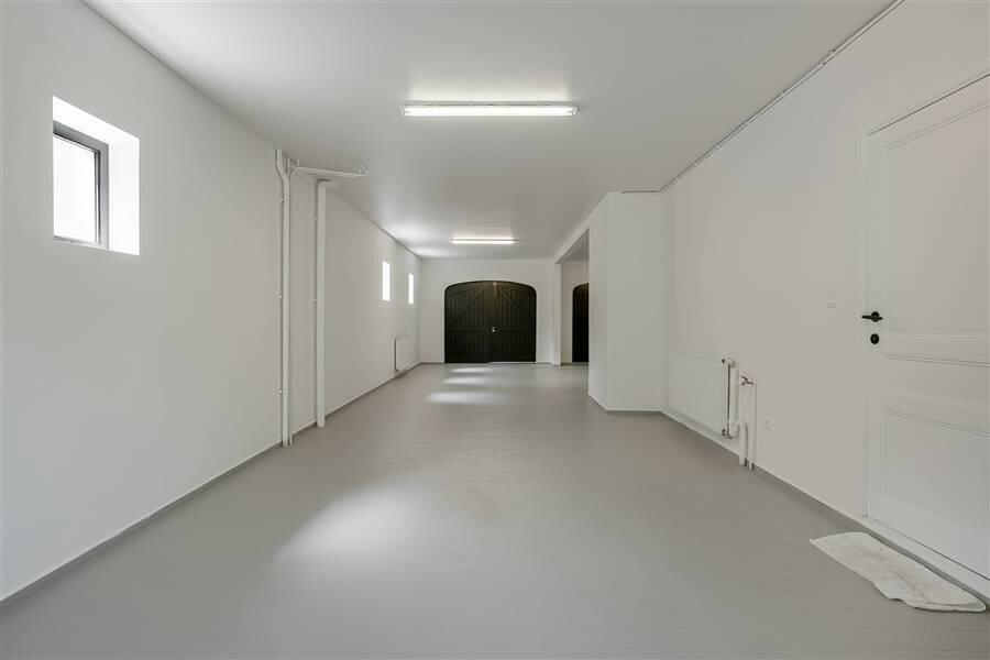 Een inkomhal met gasten toilet die toegang biedt tot een ruime woonkamer met een parketvloer. De keuken aangrenzend aan de eetkamer is hoogwaardig afgewerkt en beschikt over kwalitatieve toestellen. Vanuit de woonkamer en eetkamer is er een prachtig zicht op de aangelegde tuin! Aansluitend aan de keuken bevindt zich een ruime inpandige garage (voorzien van 3 poorten/doorsteek naar tuin).