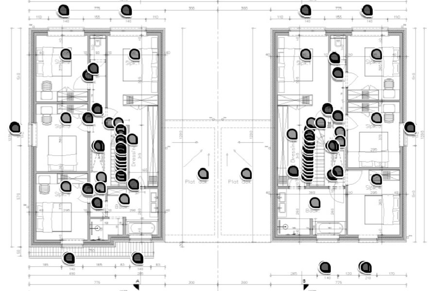 Lot 1 situeert zich op een perceel van 503 m² met een bewoonbare oppervlakte van ca. 225 m², terwijl lot 2 een perceel van 445 m² omvat met ca. 215 m² bewoonbare oppervlakte. Beide woningen beschikken over 4 volwaardige slaapkamers, een lichtrijke leefruimte met open keuken en een praktische indeling afgestemd op modern gezinsleven.