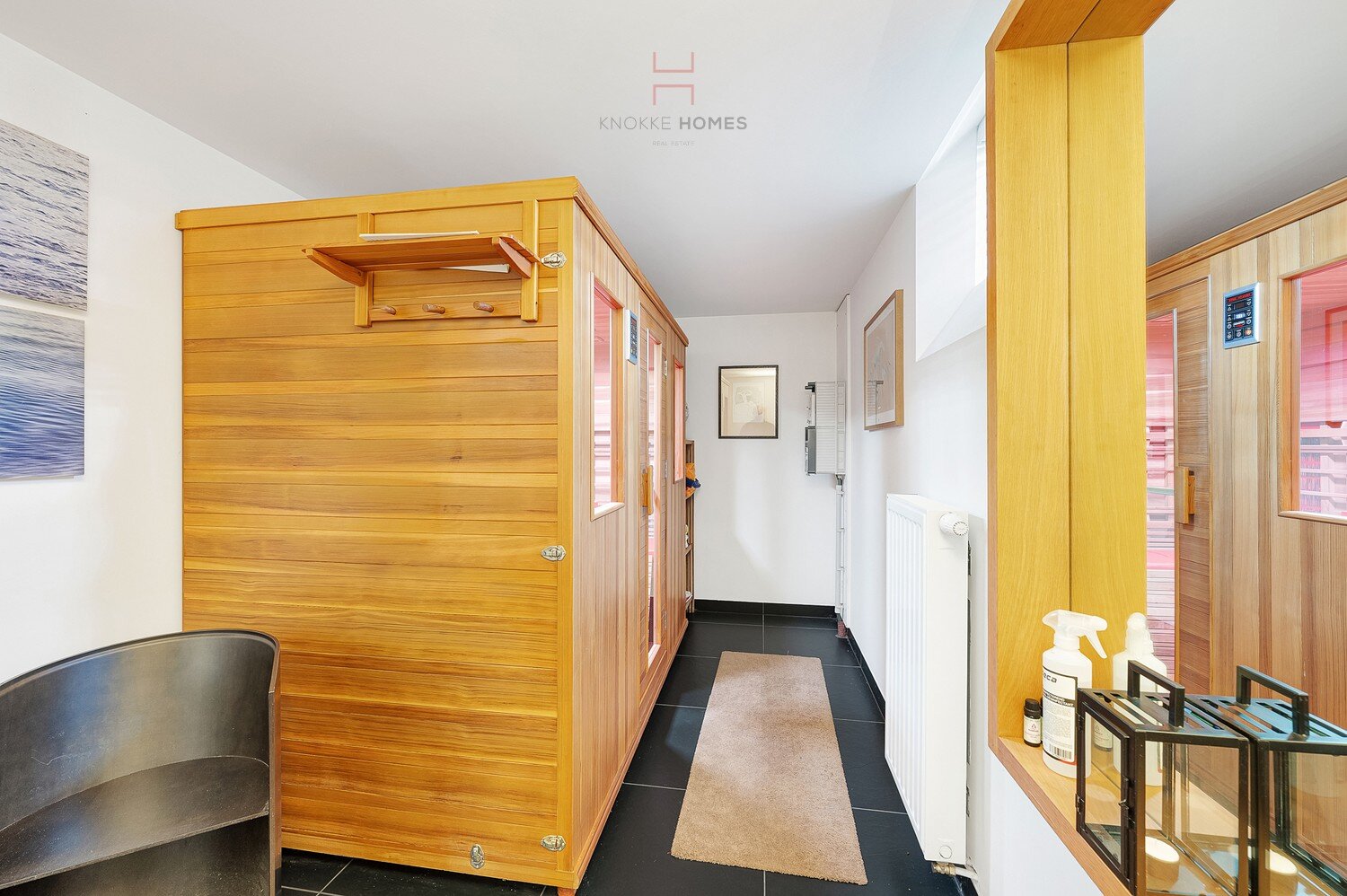 een wellnessruimte met ontspanningszone en sauna,