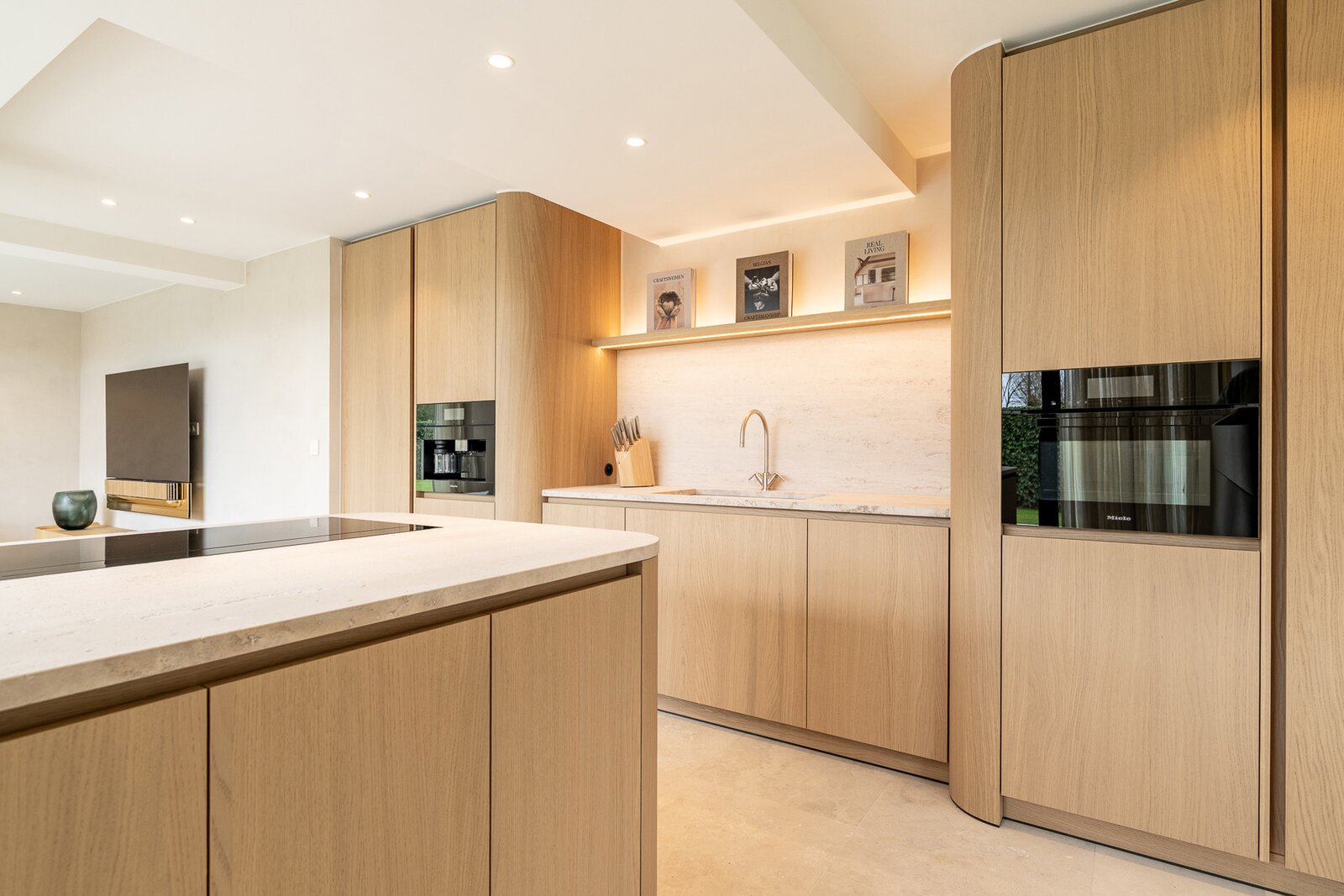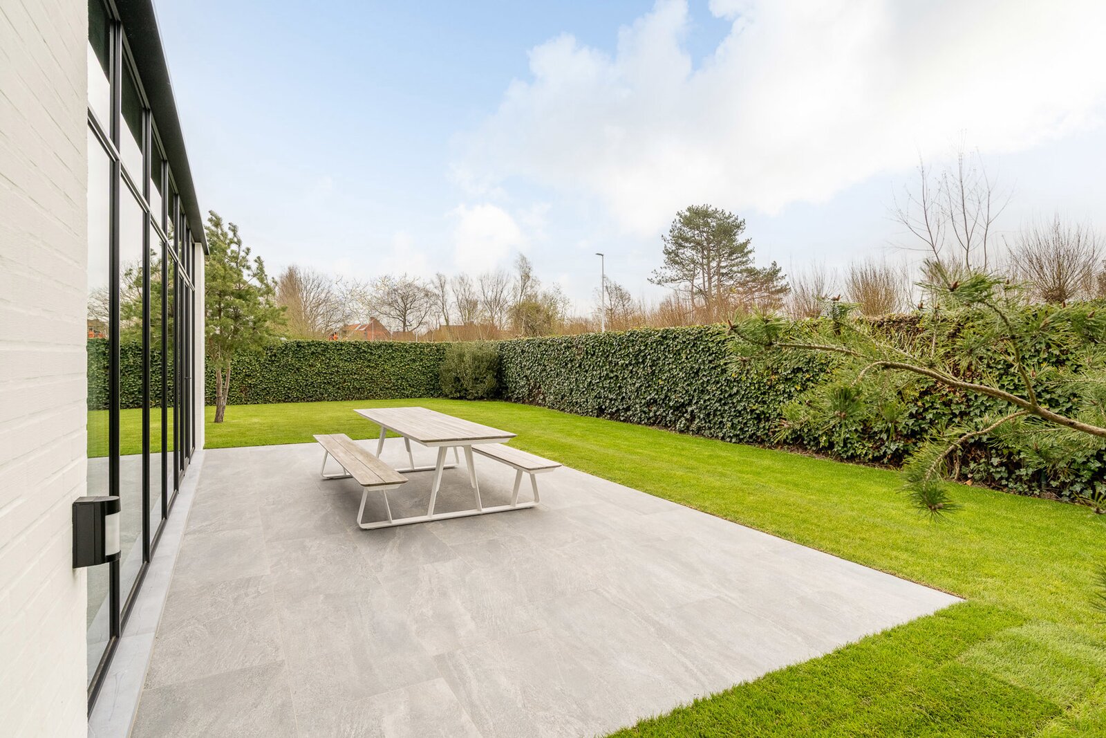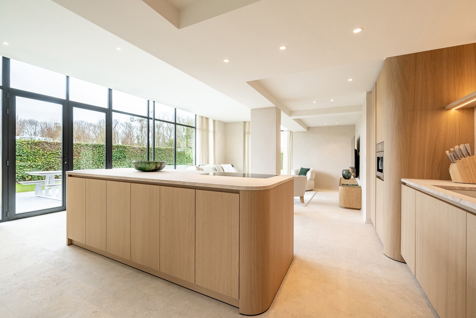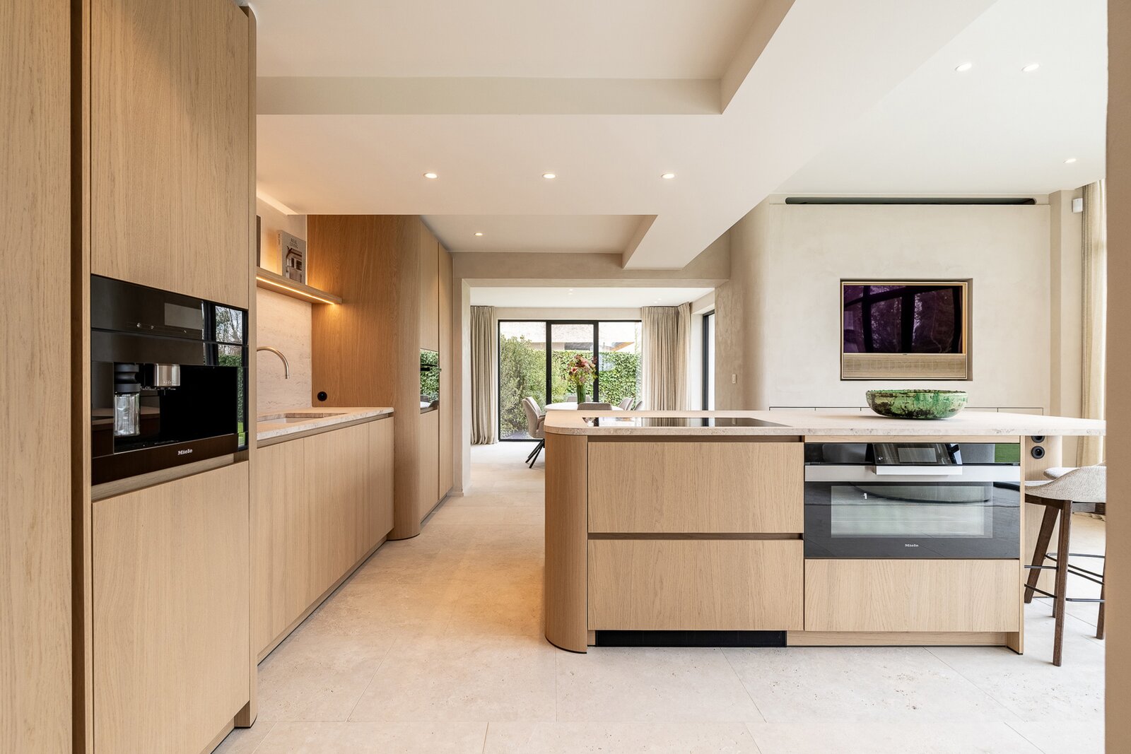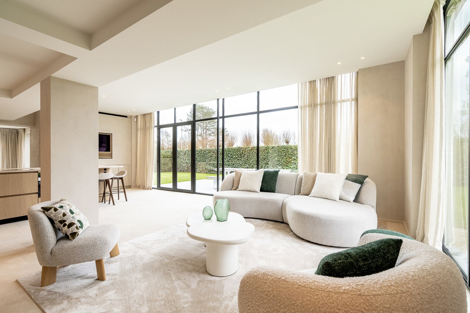 De lichtrijke leef- en eetruimte sluit naadloos aan op de volledig uitgeruste leefkeuken, die voorzien is van vloerverwarming en airconditioning. Vanuit hier heb je toegang tot het zonnige terras en de prachtig aangelegde tuin. Op het gelijkvloers bevindt zich ook de master bedroom met ensuite dressing, badkamer en apart toilet, wat een bijzonder praktisch en luxueus comfort biedt.