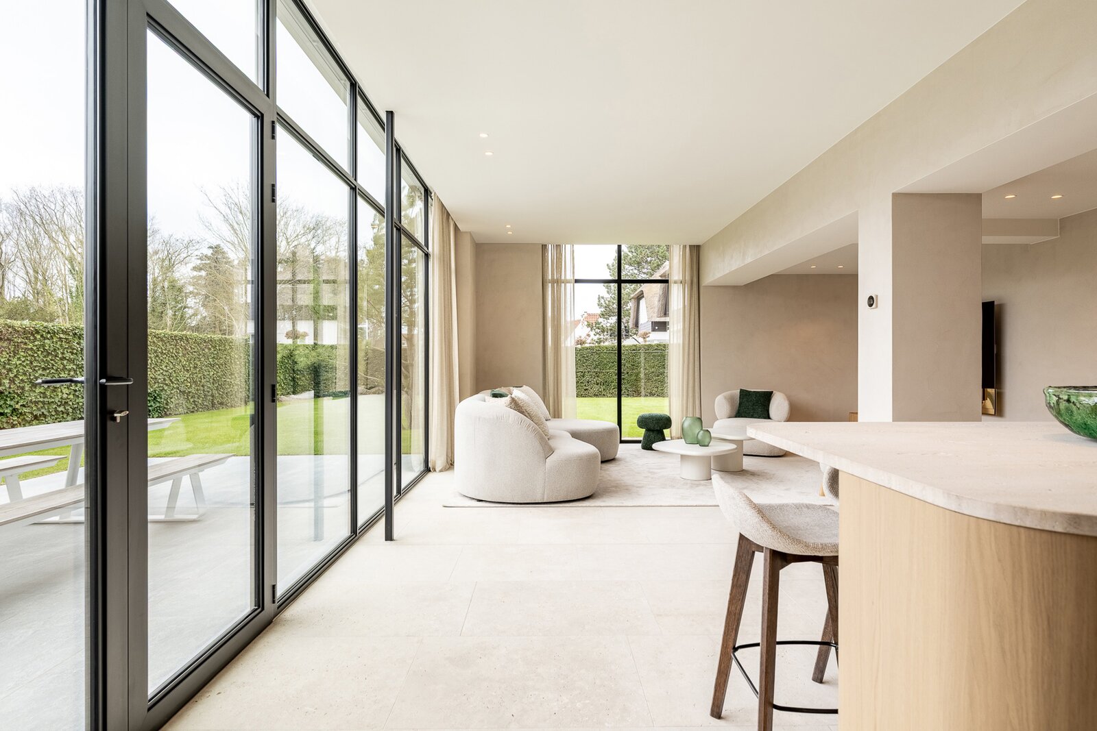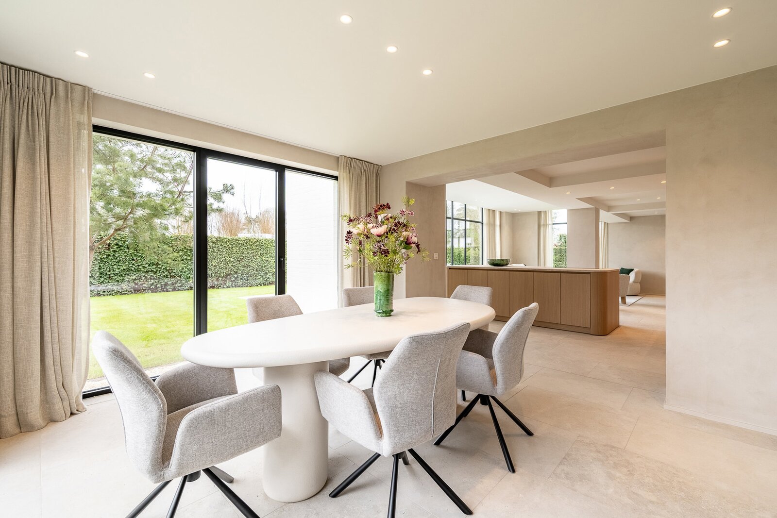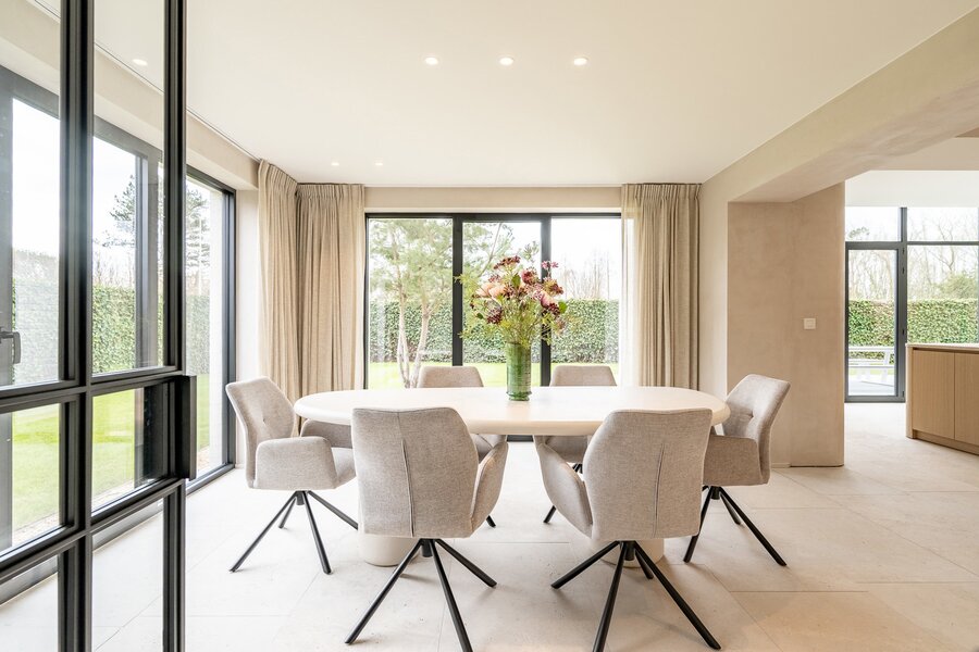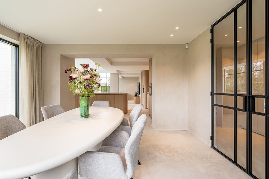 “Villa Zoutedijk” werd met veel zorg en oog voor detail volledig gerenoveerd, waarbij de typische stijl bewaard bleef en gecombineerd werd met hoogwaardige, tijdloze materialen. Het resultaat is een harmonieus geheel dat ruimte, licht en comfort uitstraalt. Dankzij zonnepanelen en een doorgedreven isolatie behaalt de woning bovendien een uitstekende EPC-score (A).