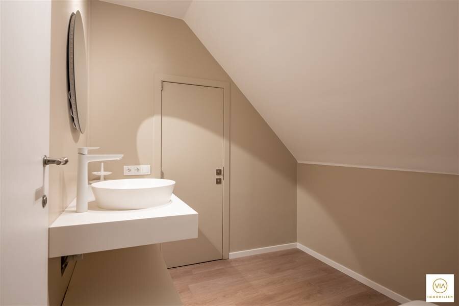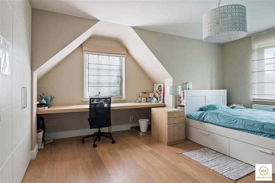 Tweede verdieping is eveneens mooi afgewerkt en bevat een zolder-+ technische ruimte en nog twee extra slaapkamers.Woning is volledig onderkelderd en heeft op vele plaatsen een eiken parket en is afgewerkt met tal van inbouwkasten.