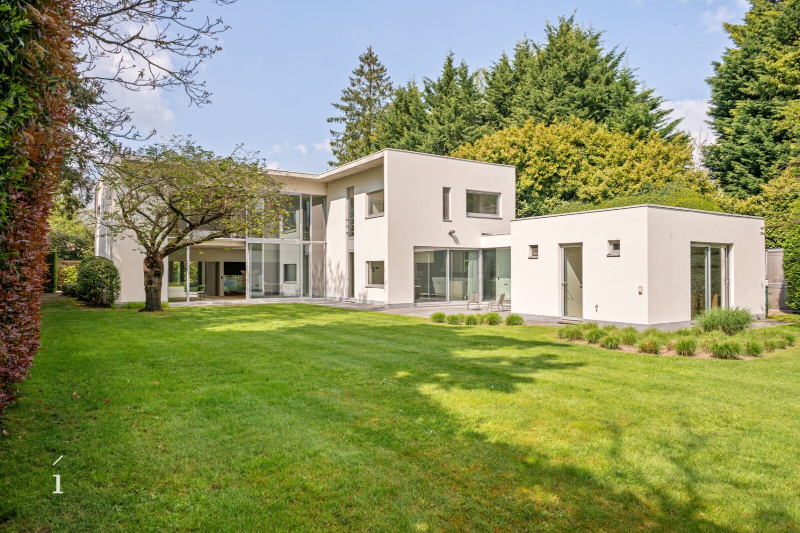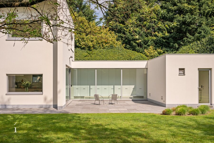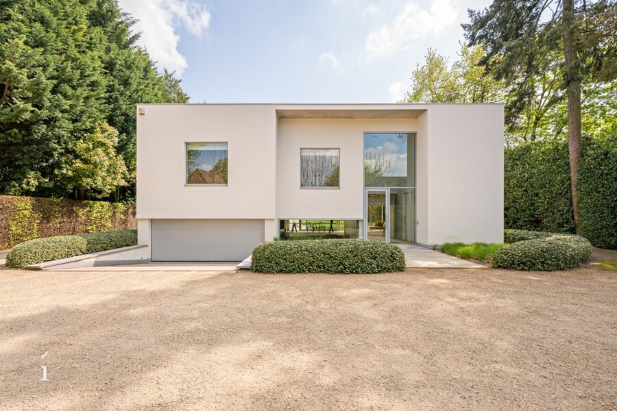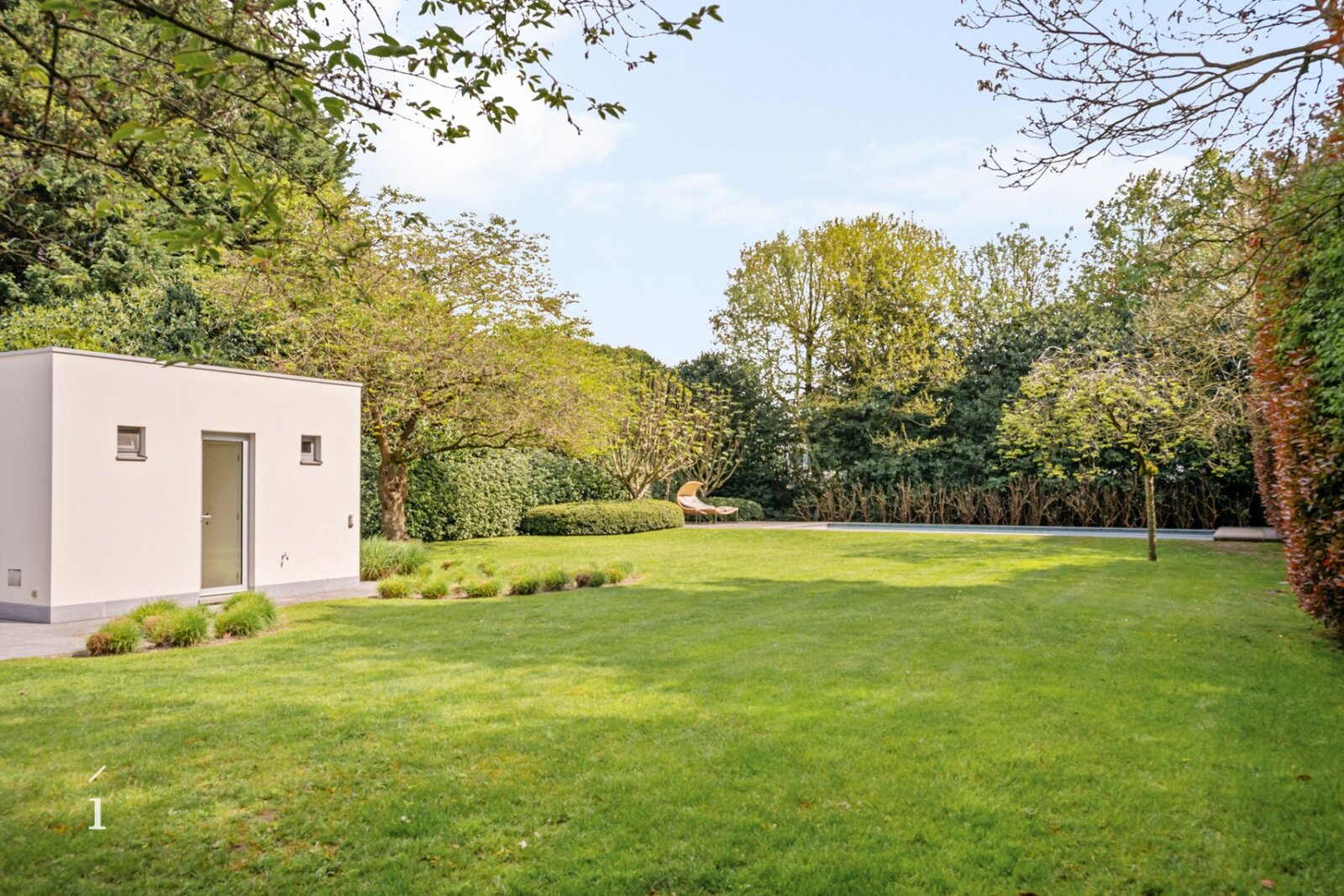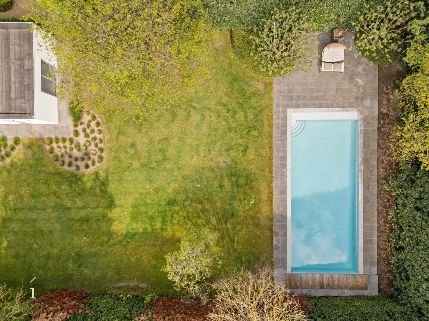 Discreet gelegen villa met tijdloze architectuur en zwembad in de kern van Sint-Martens-Latem