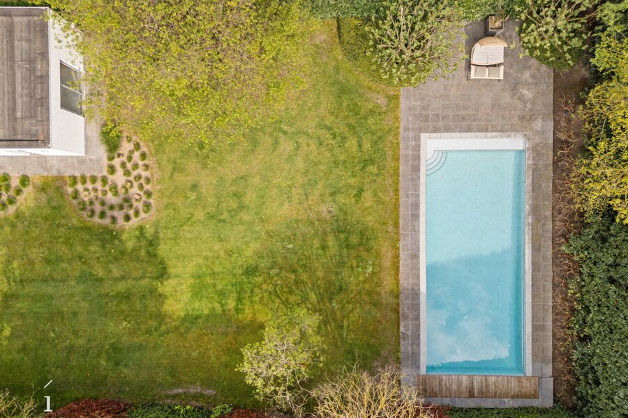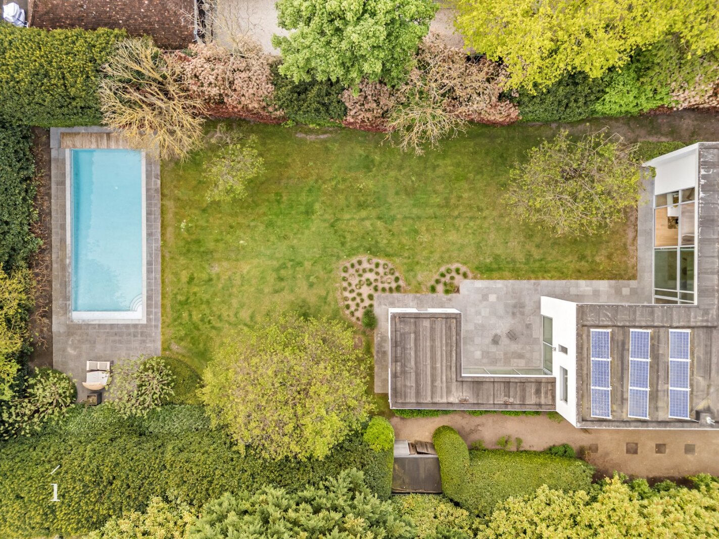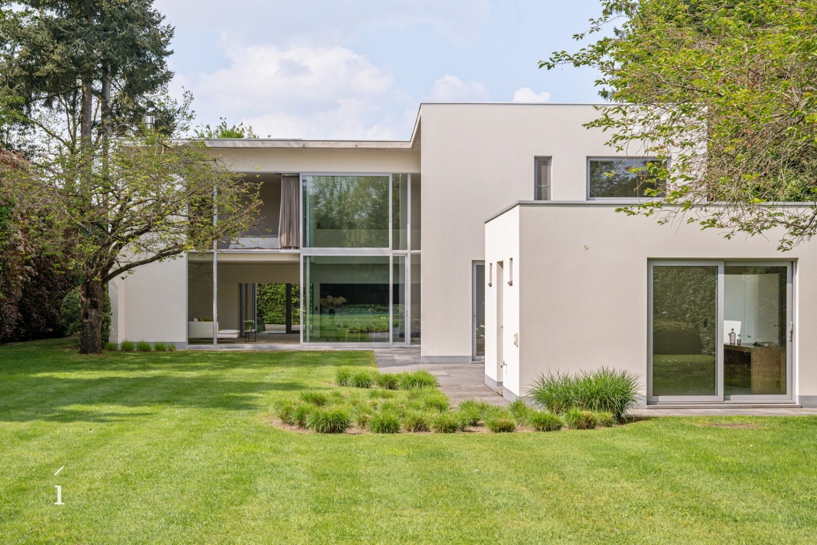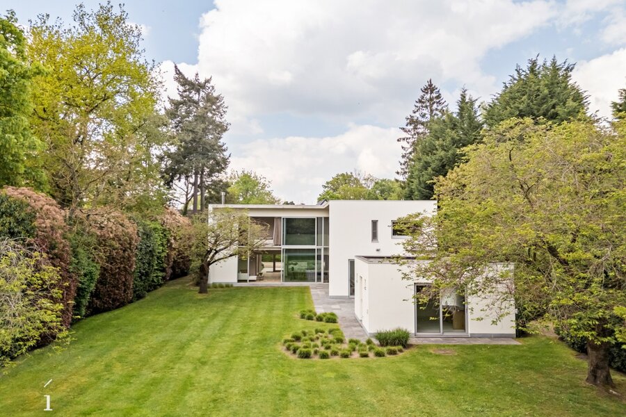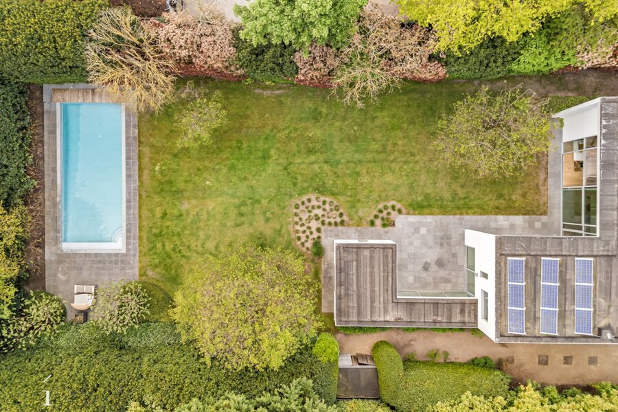 Discreet gelegen villa met tijdloze architectuur en zwembad in de kern van Sint-Martens-Latem