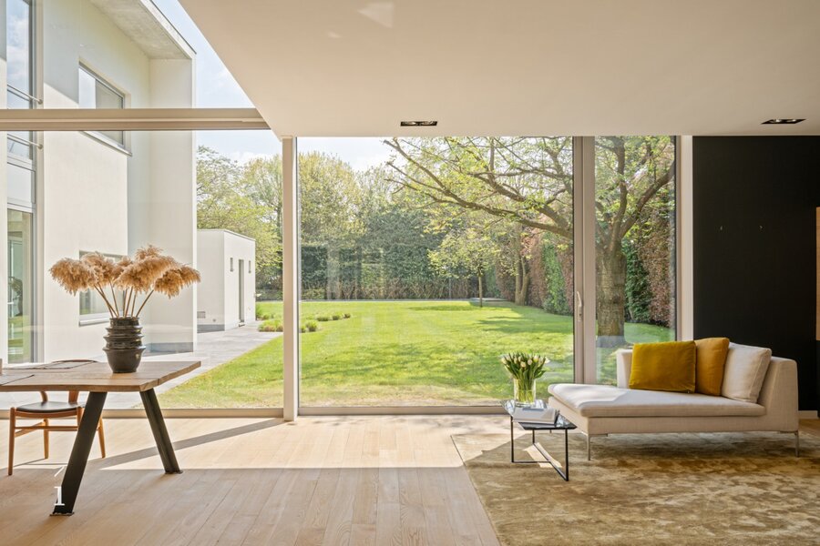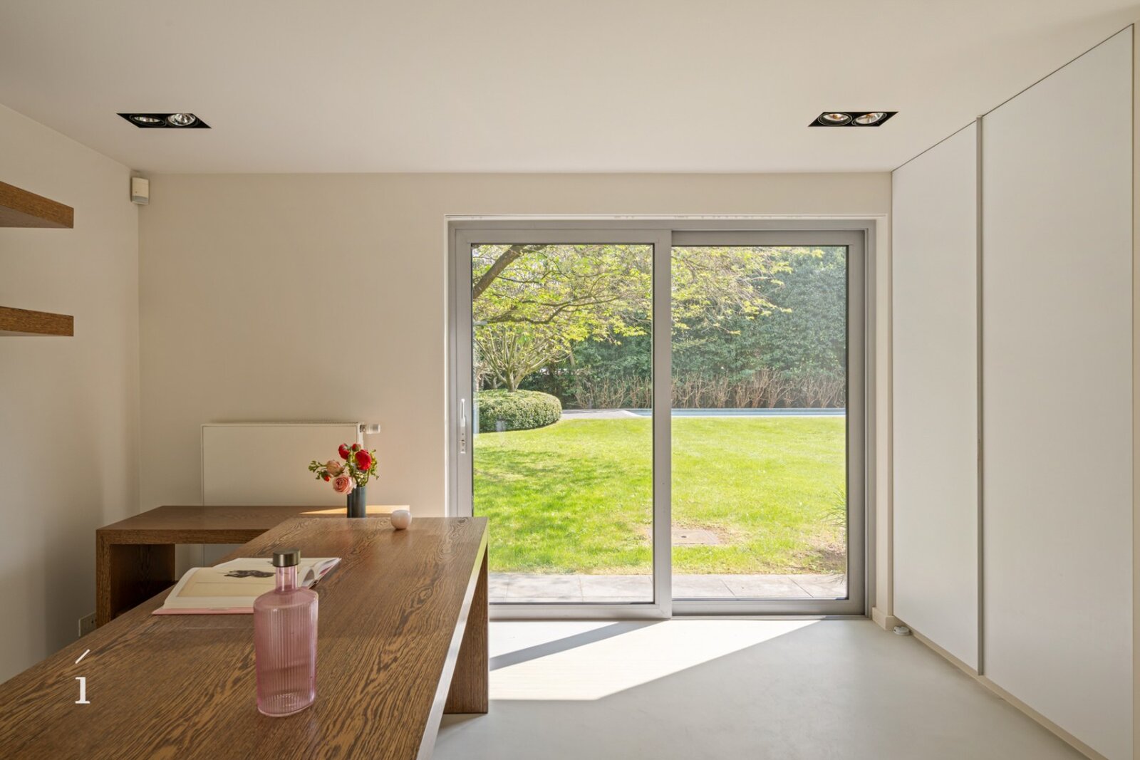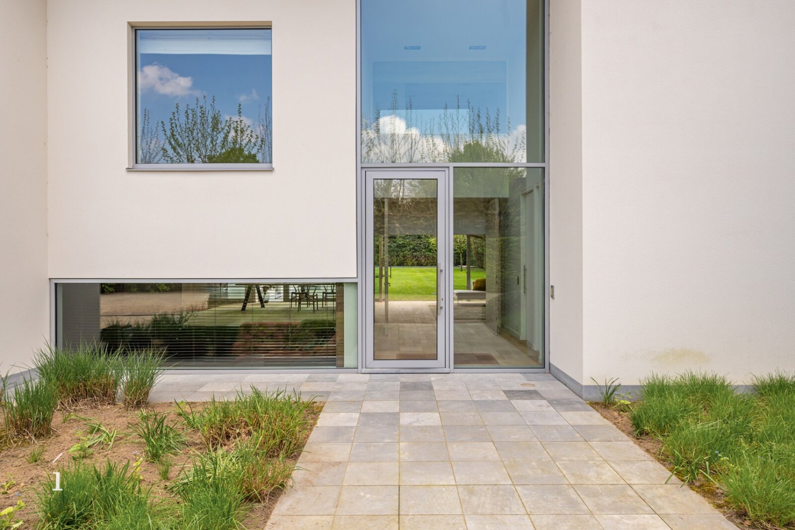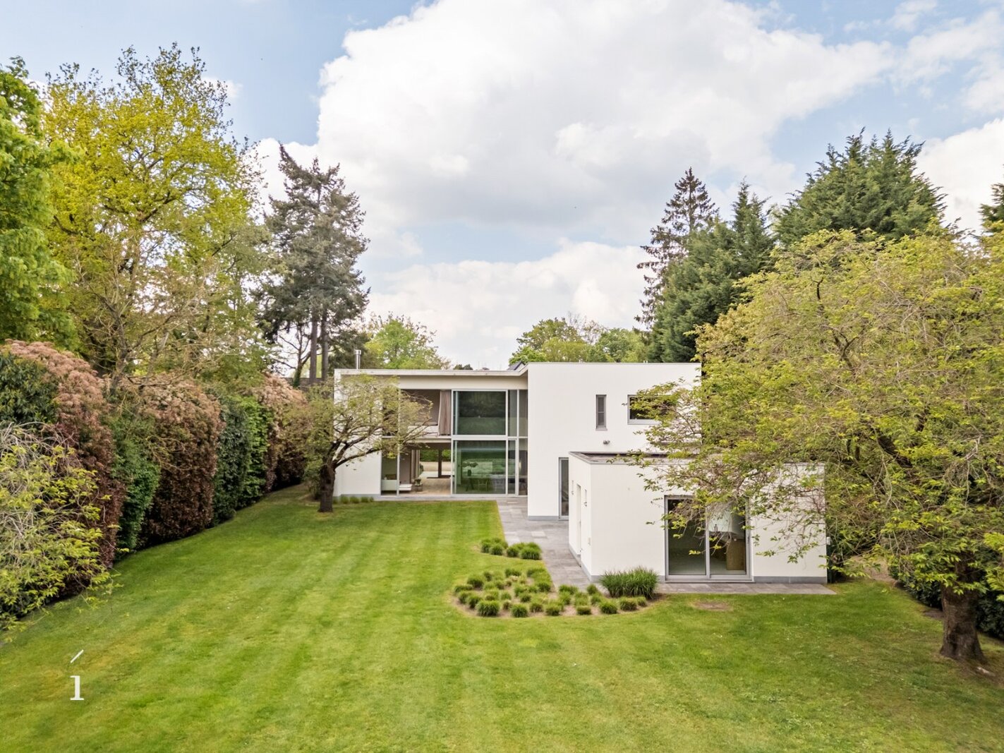Discreet gelegen villa met tijdloze architectuur en zwembad in de kern van Sint-Martens-Latem
