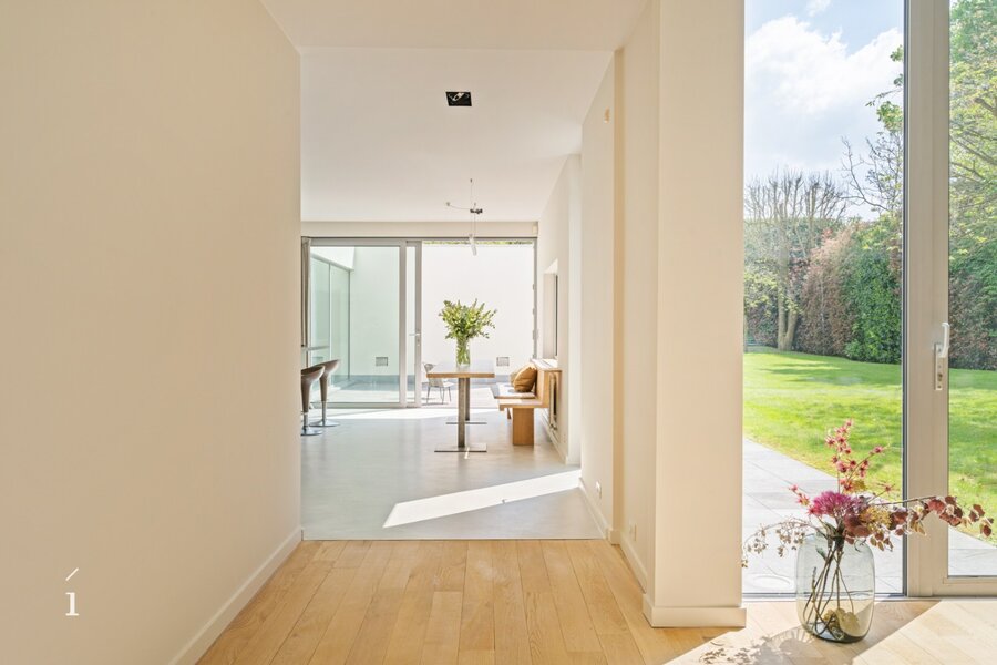 Aan het einde van een doodlopende straat, discreet verscholen maar toch in het bruisende centrum van Sint-Martens-Latem, verwelkomt deze eigentijdse villa u met een zeldzame combinatie van rust, privacy en verfijnd wooncomfort. Met een bewoonbare oppervlakte van 454 m² en een zuid georiënteerd perceel van 2.138 m², prachtig aangelegd en voorzien van een zwembad van 5 op 12 meter, vormt dit een unieke woonervaring op een absolute toplocatie.