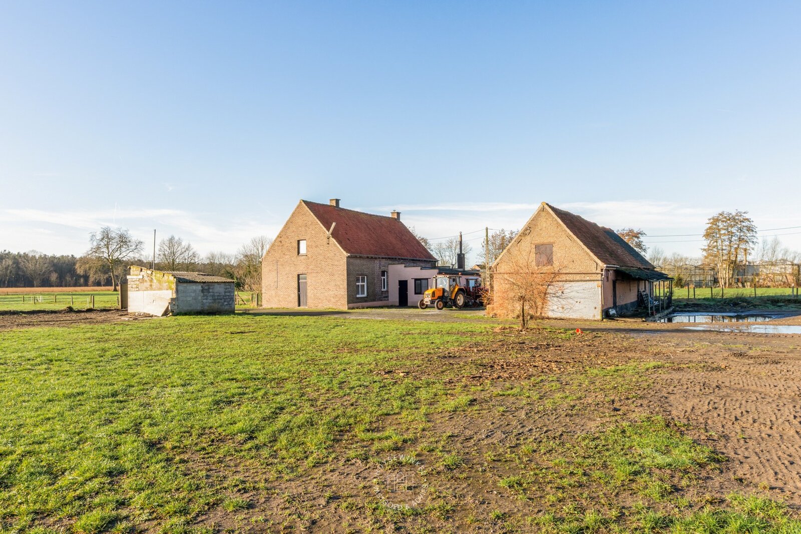 Op een prachtig landelijk gelegen perceel van bijna 4.000 m² bevindt zich deze voormalige hoeve met bijgebouwen. Men kan kiezen voor totaal renovatie of nieuwbouw. Voor het verwijderen van de bestaande constructies werd reeds een vergunning aangevraagd, en bovendien werd door architect Benjamin Durieux een volledig uitgewerkt plan opgemaakt voor de realisatie van een moderne, villa, dewelke ook reeds vergund werd.
