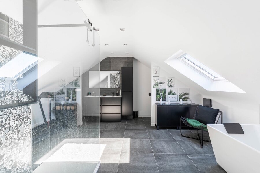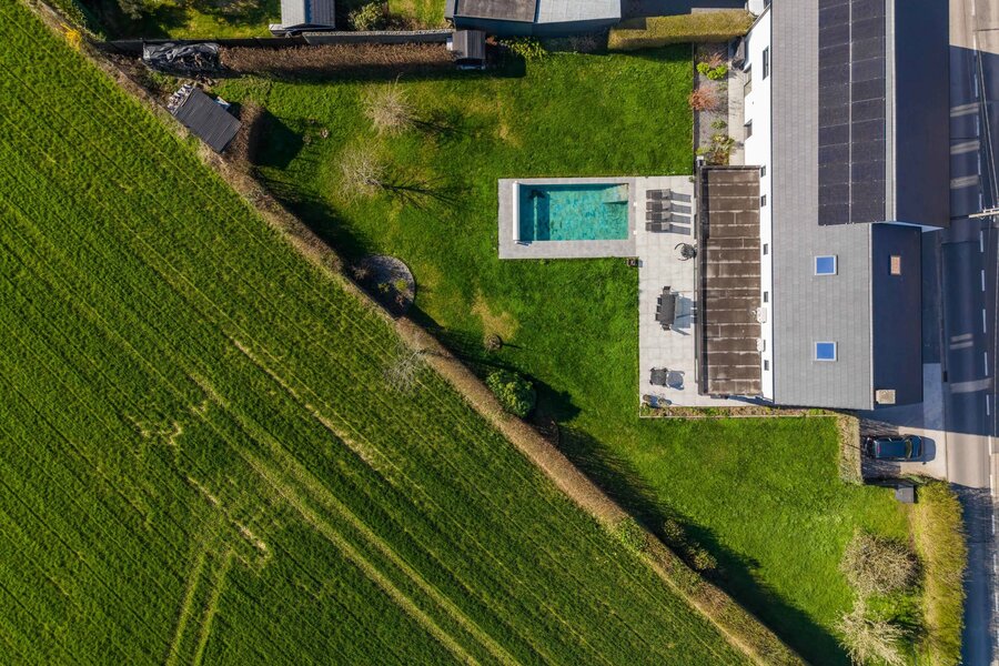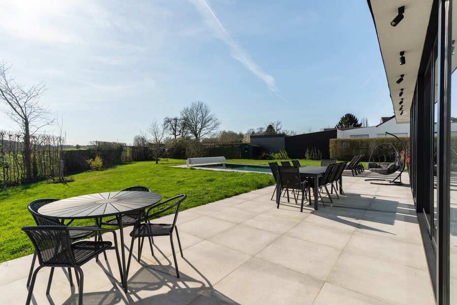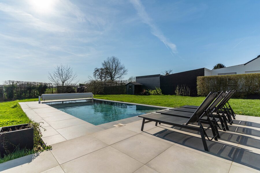 À l’extérieur, vous profiterez d’une agréable terrasse et d’un jardin paysager avec piscine, parfaitement orienté et à l’abri des regards.