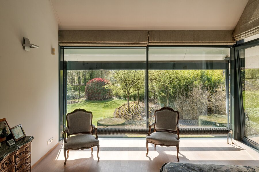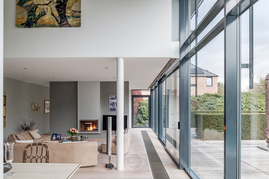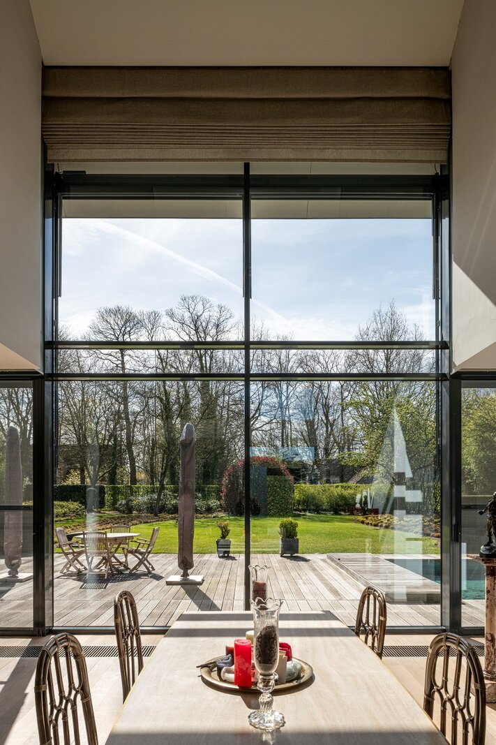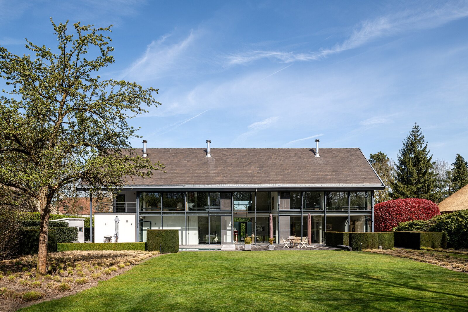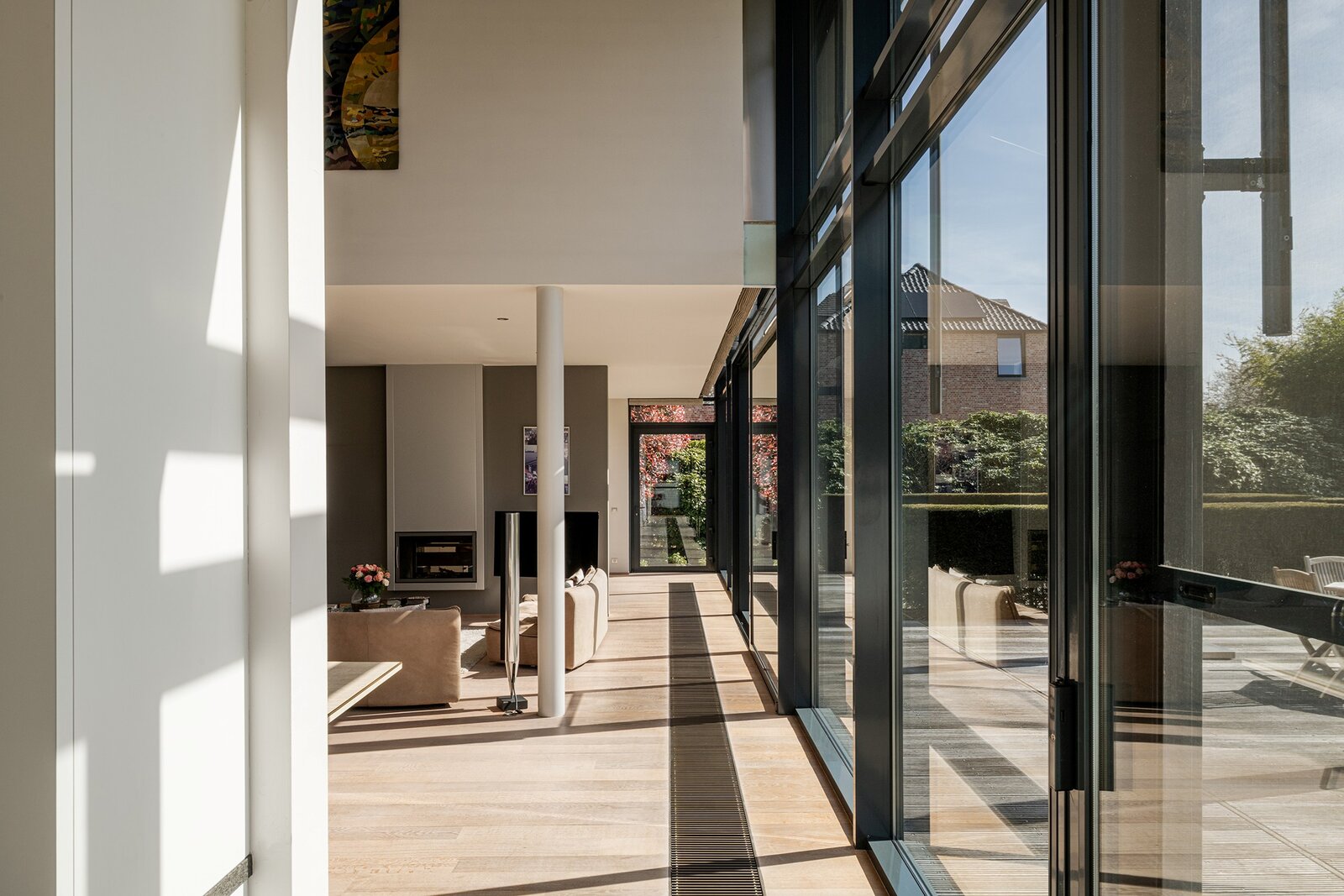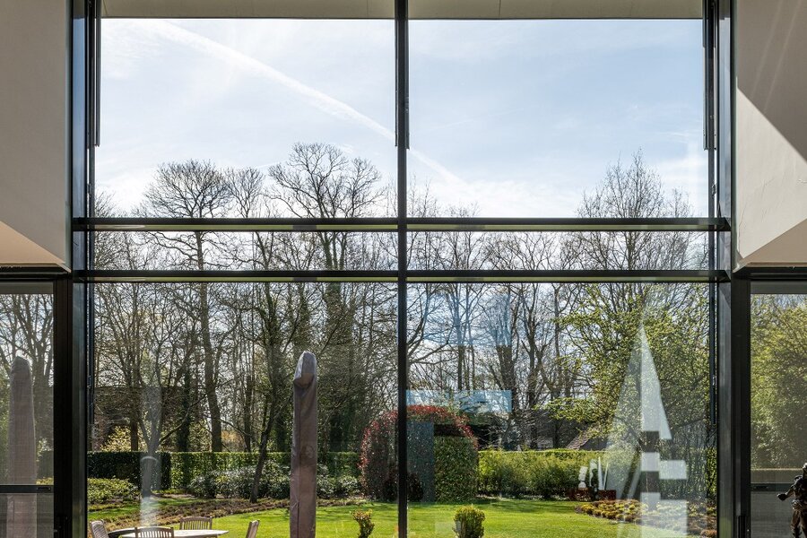 Dankzij de doordachte architectuur en de grote raampartijen geniet elke ruimte van een overvloed aan natuurlijk lichtinval en een schitterend zicht op de tuin. Alle kamers staan in directe verbinding met het groen, waardoor binnen en buiten naadloos in elkaar overvloeien.