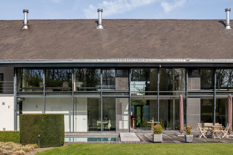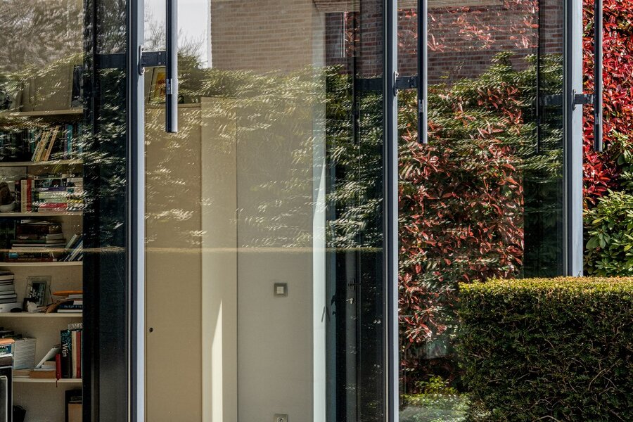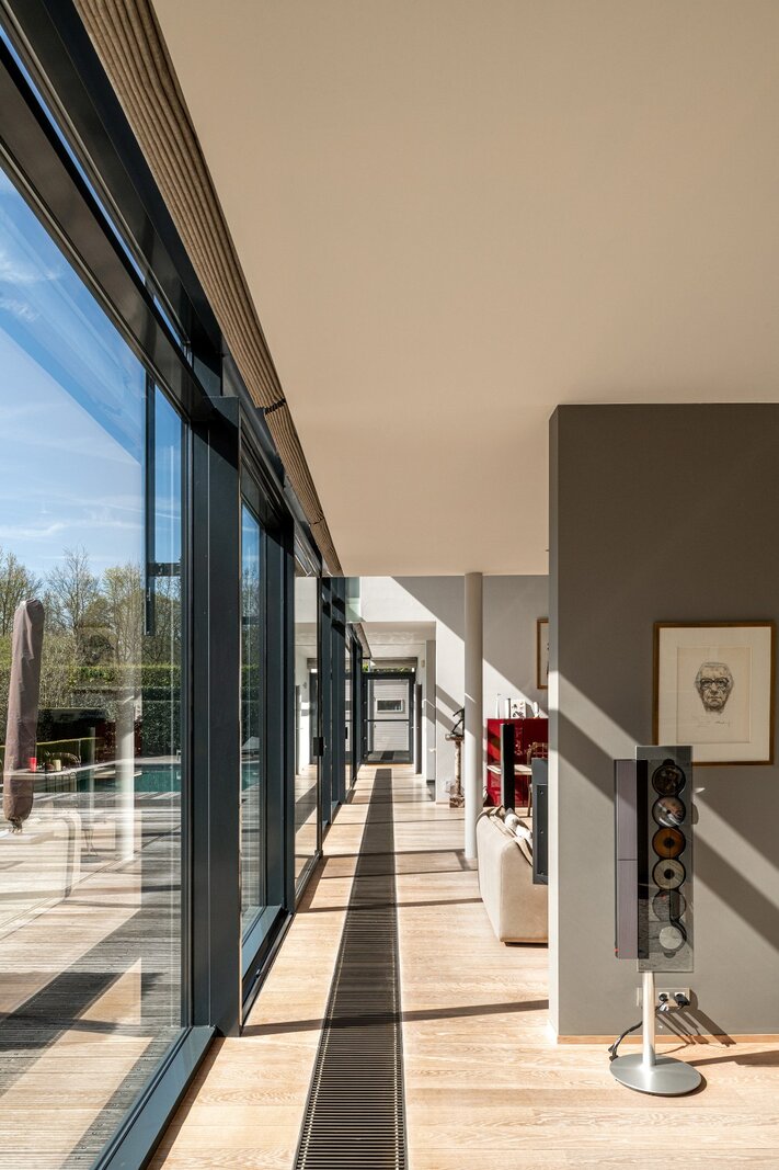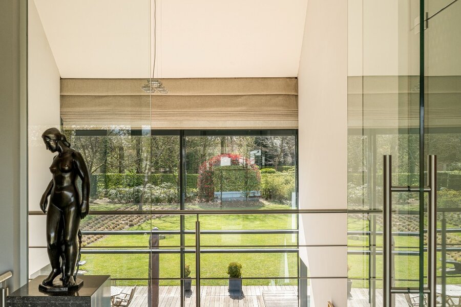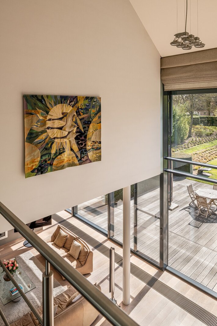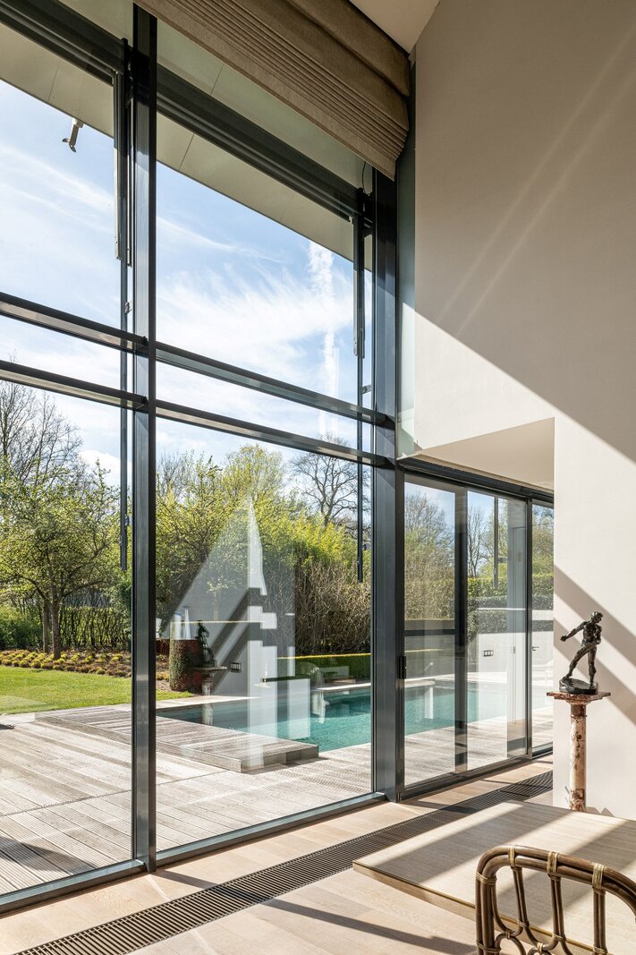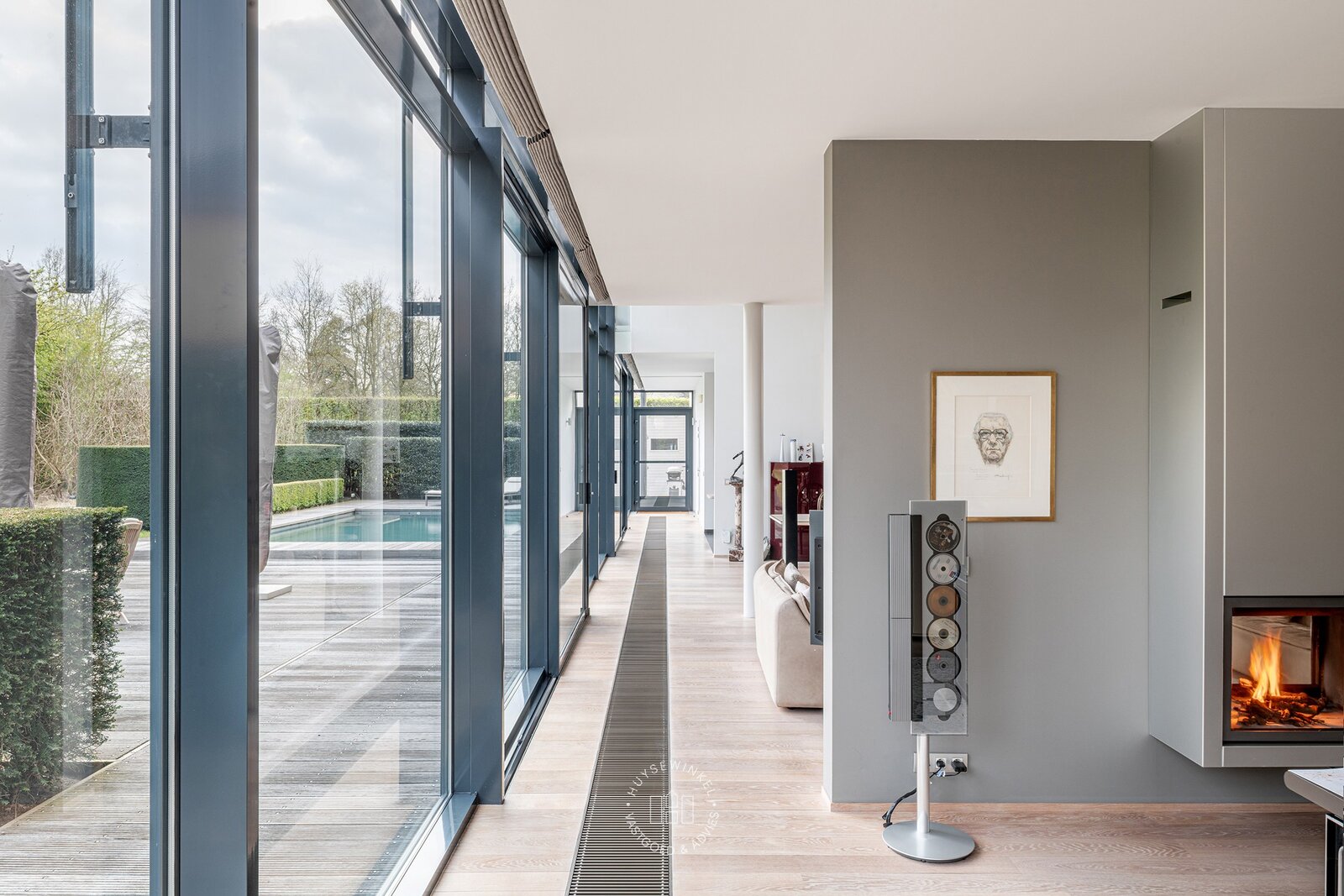 Dankzij de doordachte architectuur en de grote raampartijen geniet elke ruimte van een overvloed aan natuurlijk lichtinval en een schitterend zicht op de tuin. Alle kamers staan in directe verbinding met het groen, waardoor binnen en buiten naadloos in elkaar overvloeien.