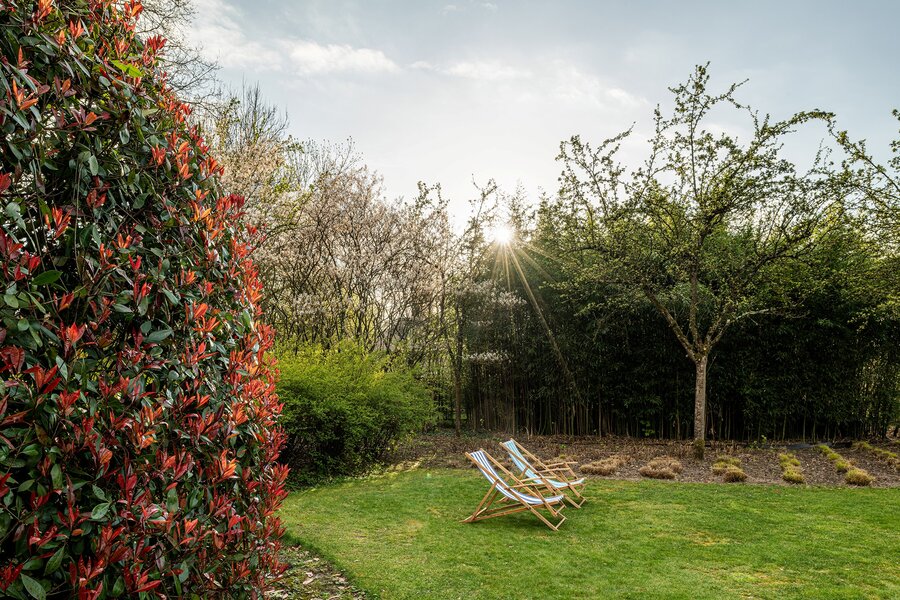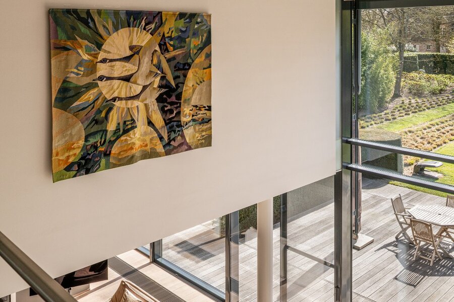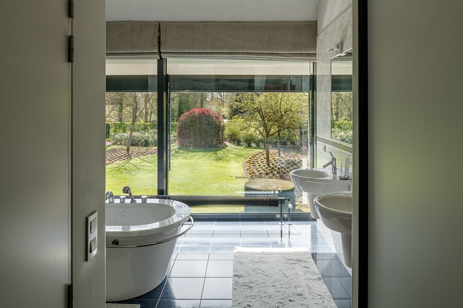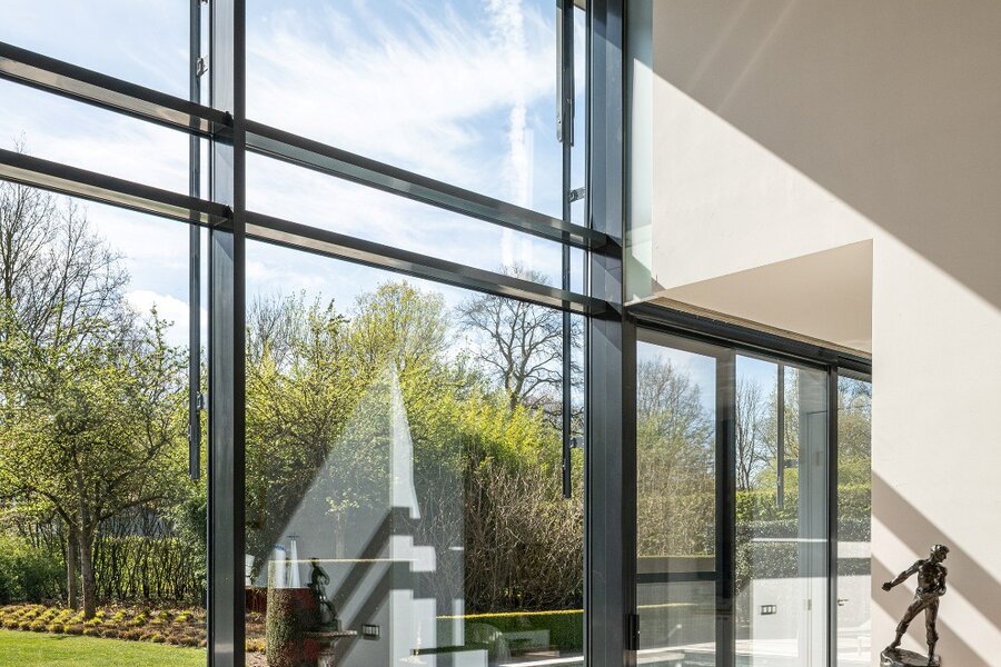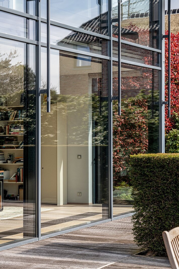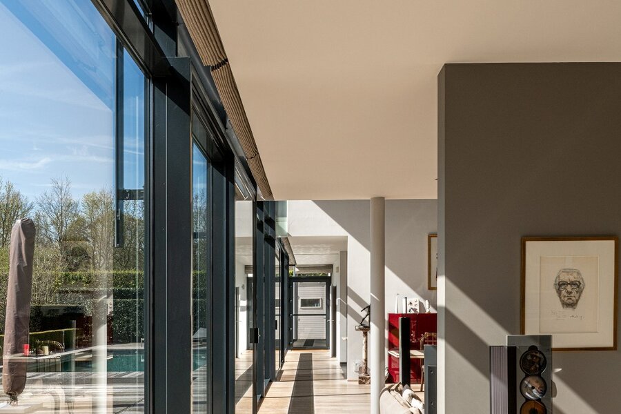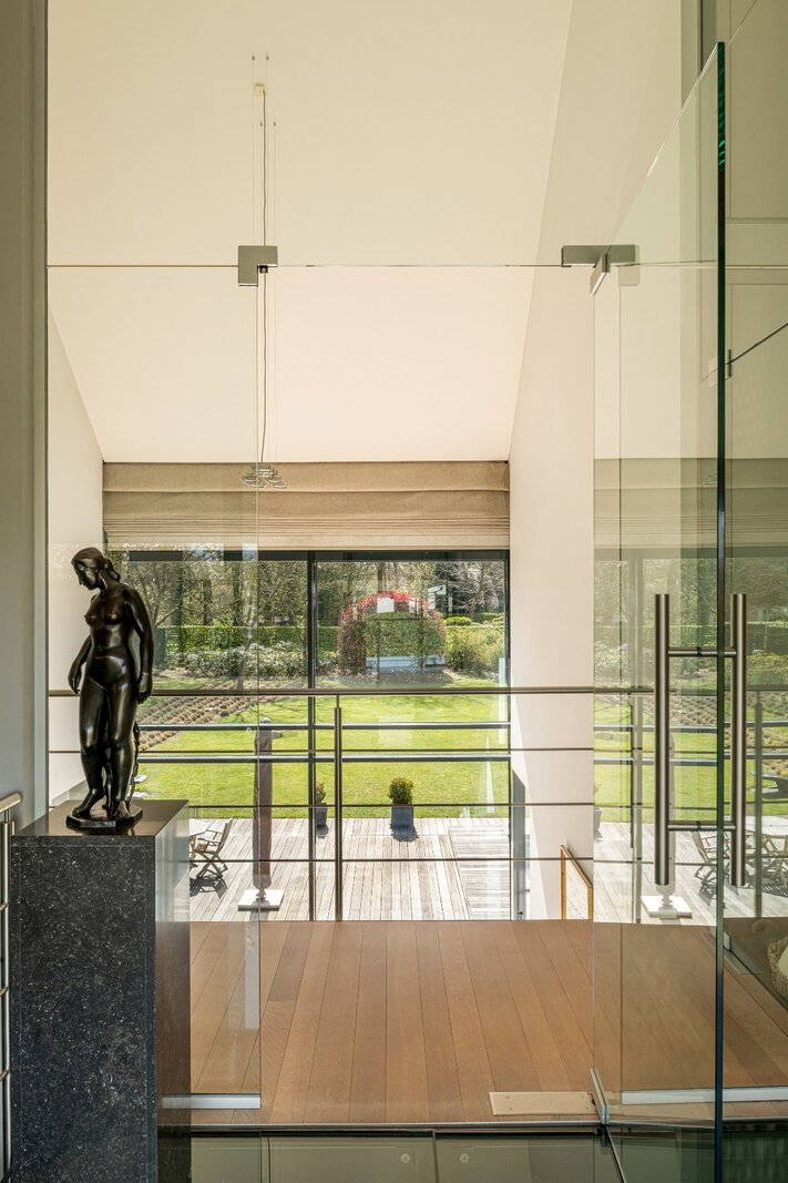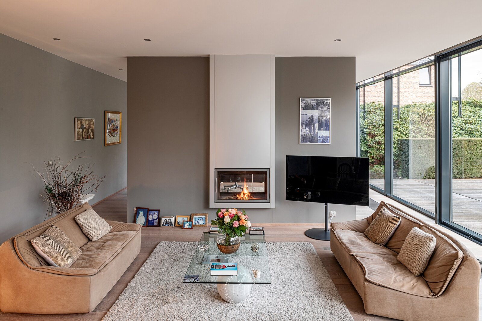 Dankzij de doordachte architectuur en de grote raampartijen geniet elke ruimte van een overvloed aan natuurlijk lichtinval en een schitterend zicht op de tuin. Alle kamers staan in directe verbinding met het groen, waardoor binnen en buiten naadloos in elkaar overvloeien.
