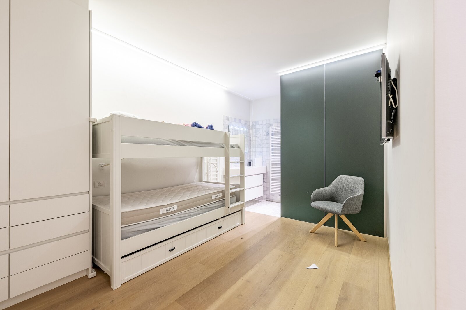 Tweede slaapkamer (of tv-ruimte) met eigen douchekamer en directe toegang tot de tuin.