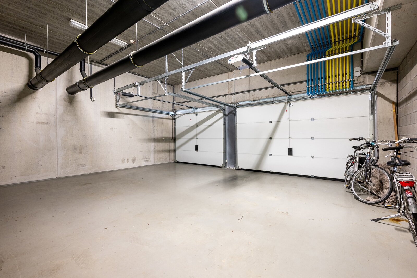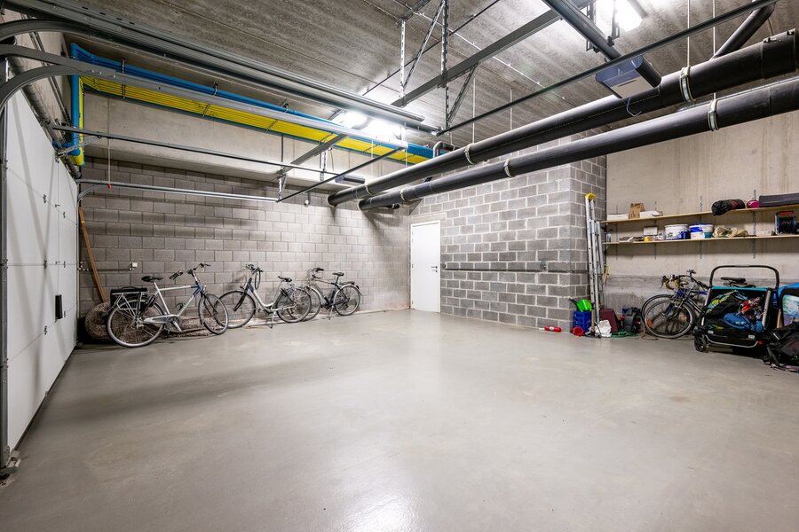 Vanuit deze ruimtes is er een directe, privatieve toegang tot de ruime garagebox met plaats voor drie wagens en fietsen.