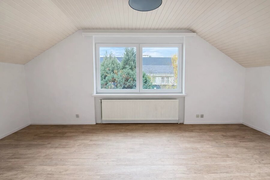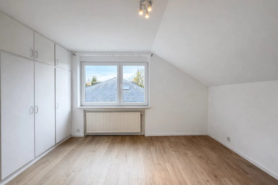 Op de bovenste verdieping bevindt zich een grote slaapkamer die het geheel harmonisch aanvult.