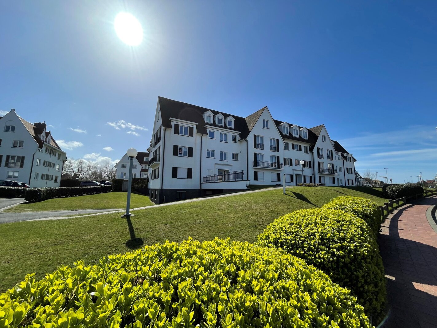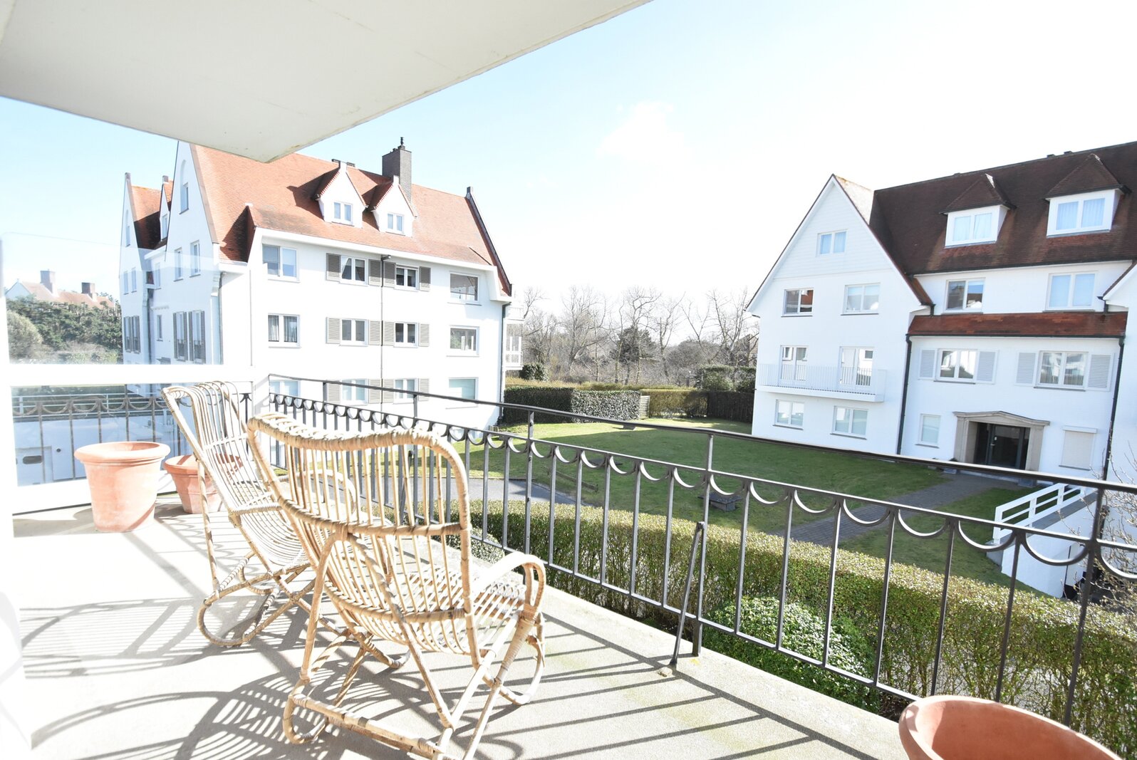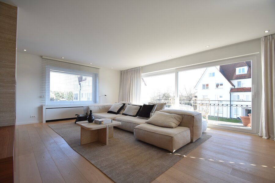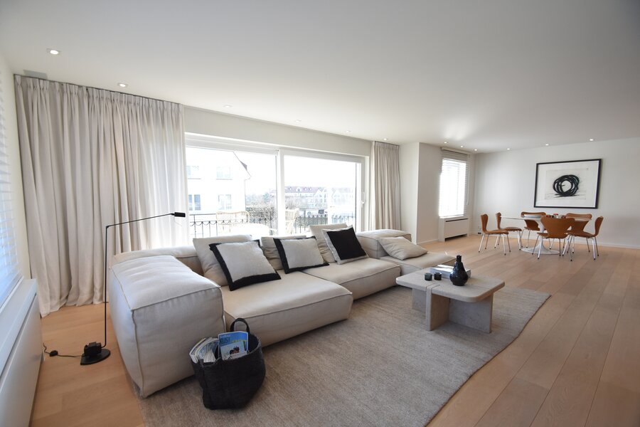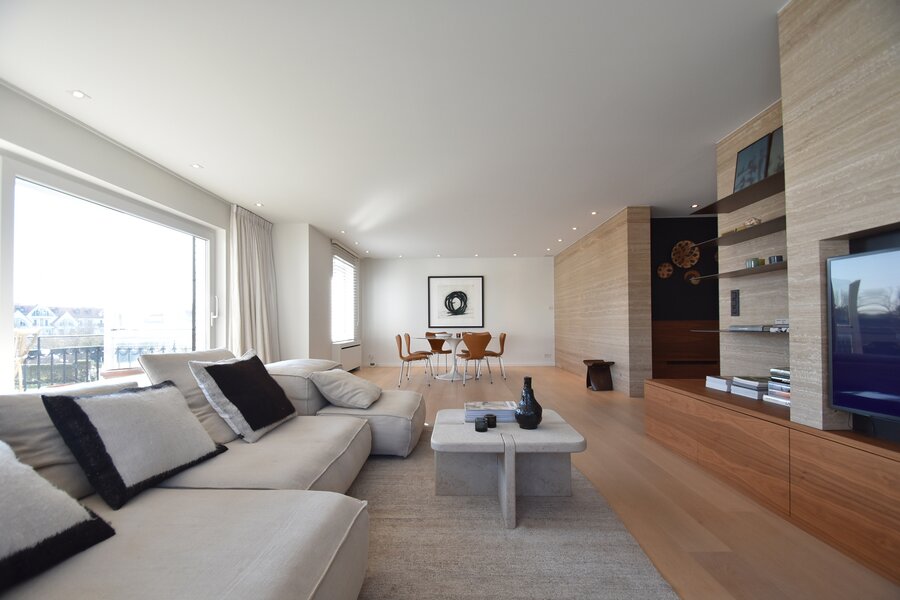 Exclusief te koop. Prachtig hoekappartement met zonneterras te koop gelegen in een gerenommeerde villaresidentie in het Zoute, nabij het strand, het Zwin en de Royal Zoute Tennis.