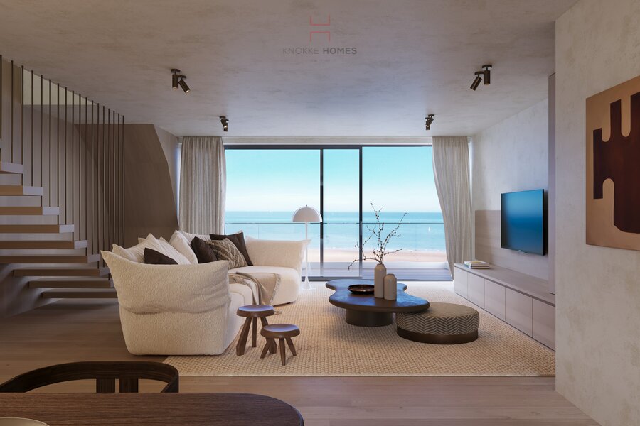 Laatste duplexappartement op de Zeedijk in de nieuwbouwresidentie Pierlala, een prestigieus project met eerstelijns zeezicht aan de zeilclub Anemos in Duinbergen.