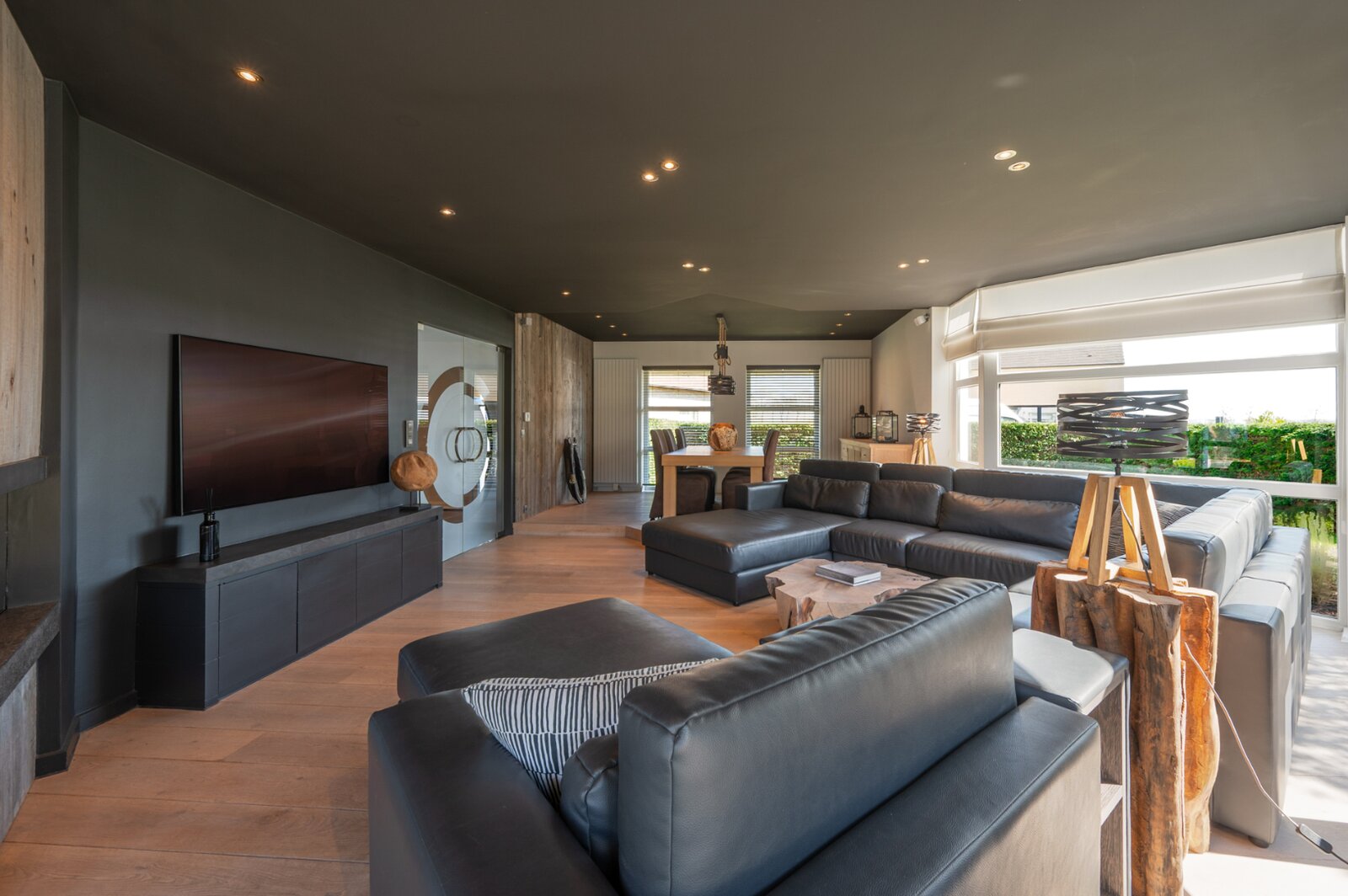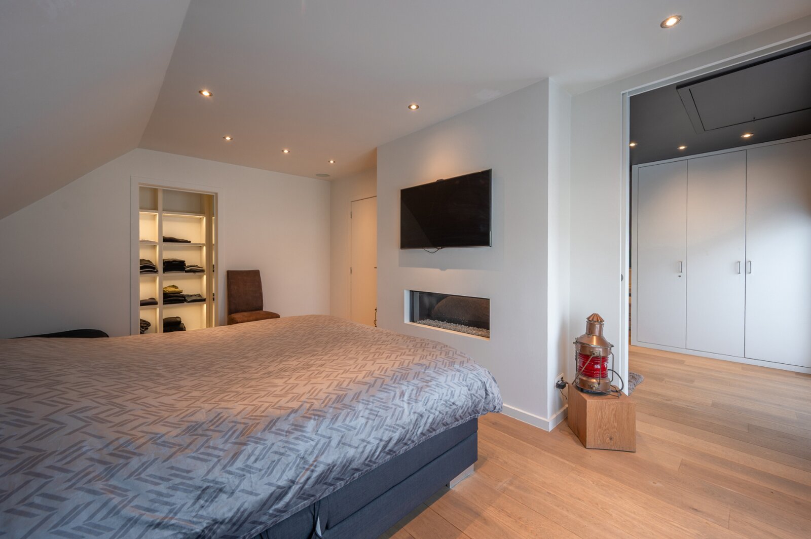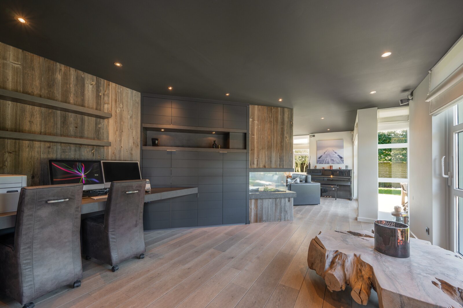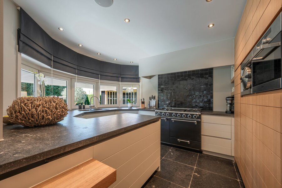 De woning verwelkomt u met een ruime en lichtrijke woonkamer, met aansluitend een bureau. Grote raampartijen zorgen voor veel natuurlijk licht en een mooi uitzicht op de tuin. De open keuken is volledig uitgerust met moderne apparatuur en biedt voldoende opbergruimte. De inpandige garage, voorzien van ingemaakte kasten, geeft directe toegang tot de woning.