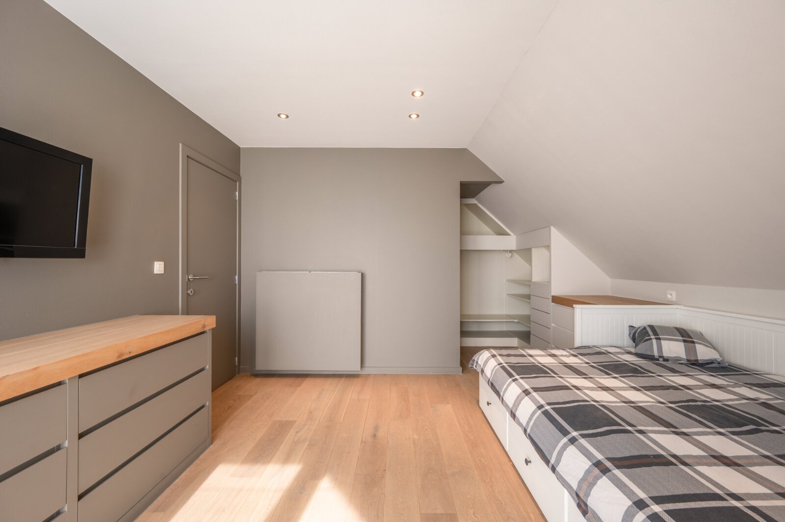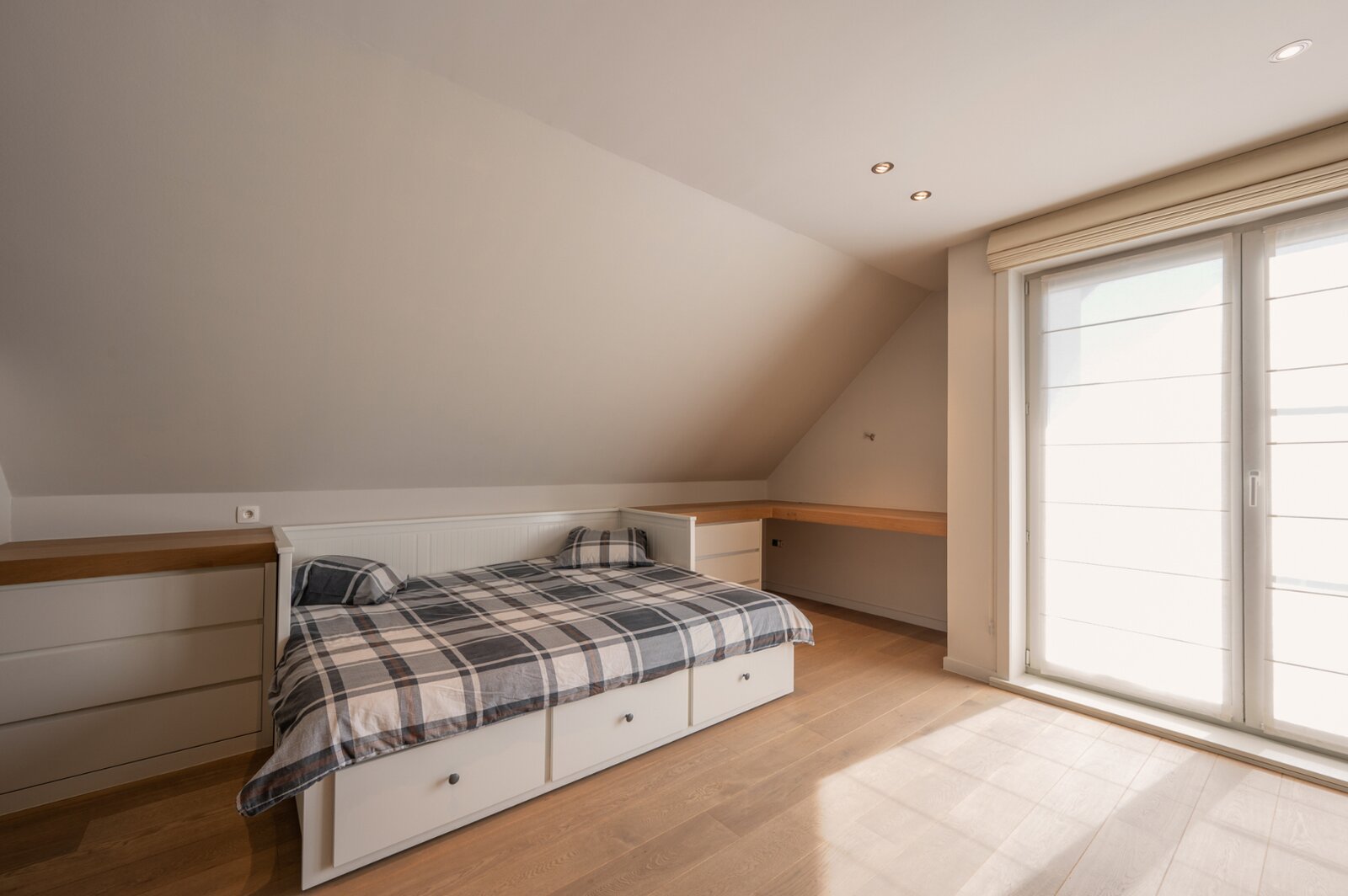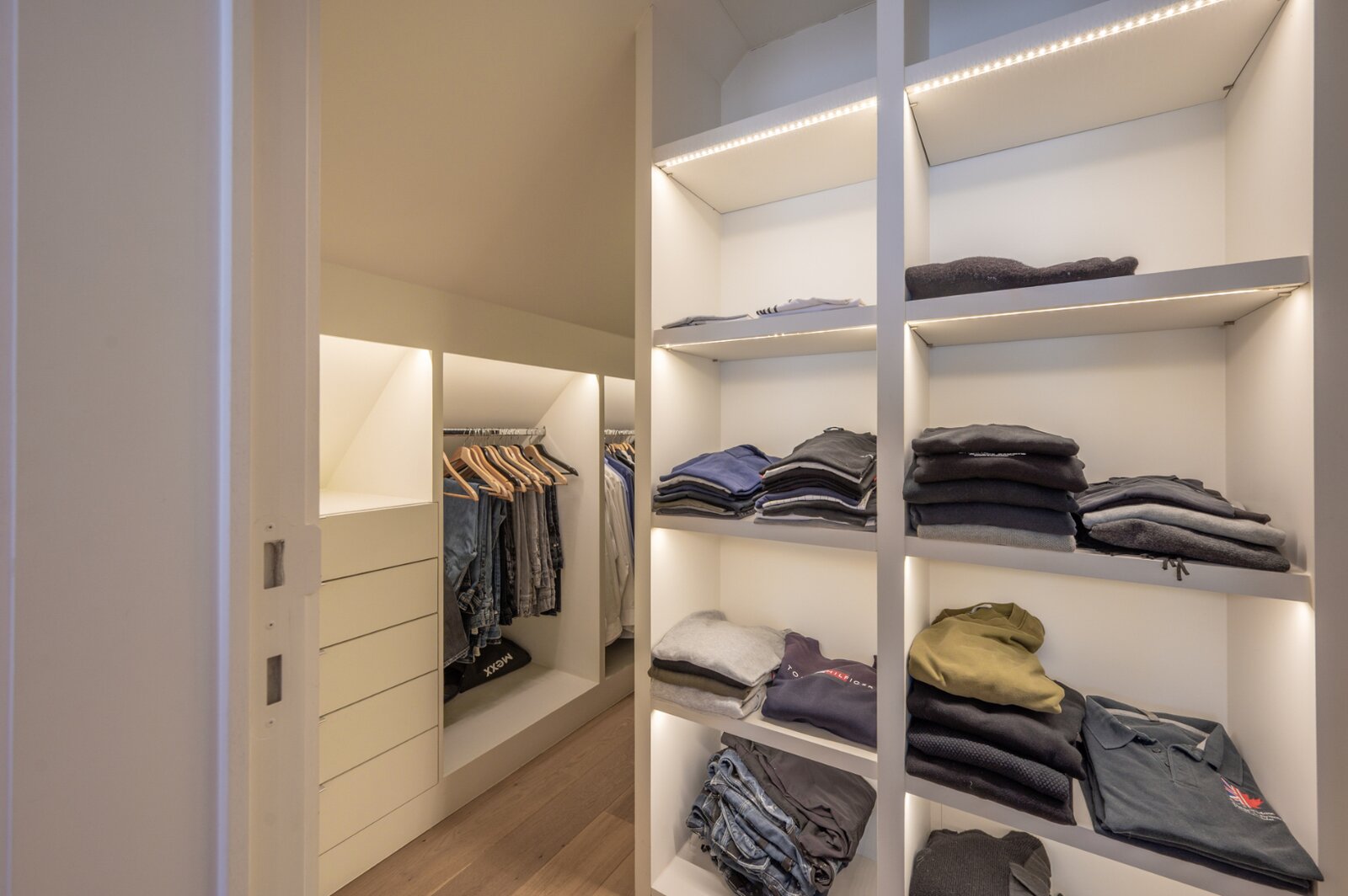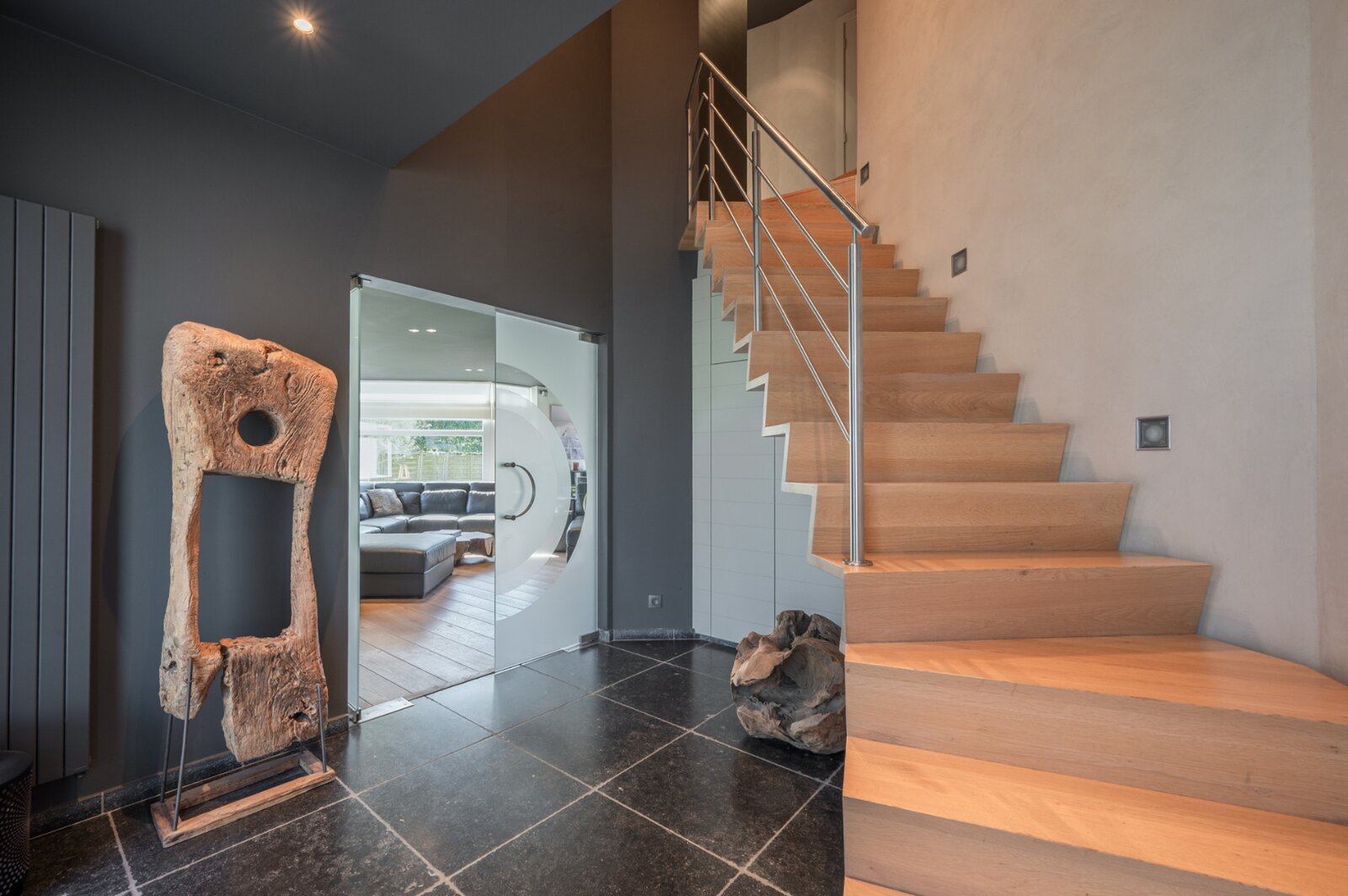 De woning verwelkomt u met een ruime en lichtrijke woonkamer, met aansluitend een bureau. Grote raampartijen zorgen voor veel natuurlijk licht en een mooi uitzicht op de tuin. De open keuken is volledig uitgerust met moderne apparatuur en biedt voldoende opbergruimte. De inpandige garage, voorzien van ingemaakte kasten, geeft directe toegang tot de woning.