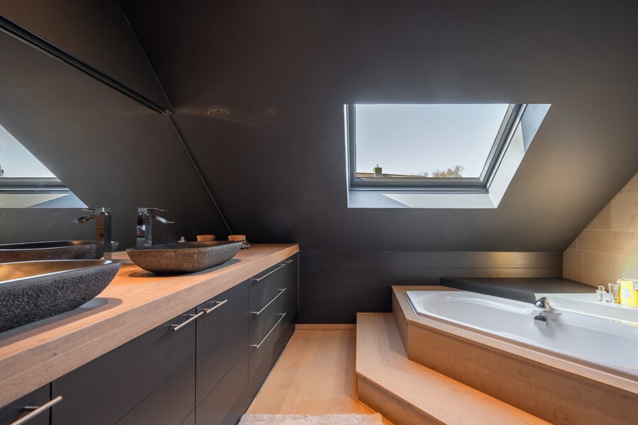 Op de eerste verdieping bevinden zich vier slaapkamers, een badkamer met ligbad, een aparte douchekamer en de master bedroom met ensuite badkamer en dressing, die zowel comfort als privacy biedt.