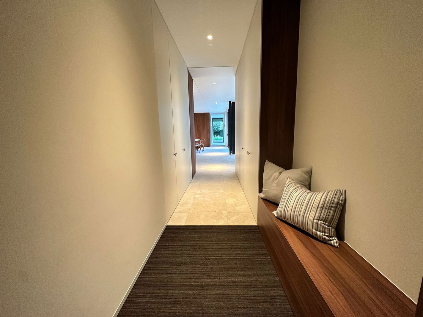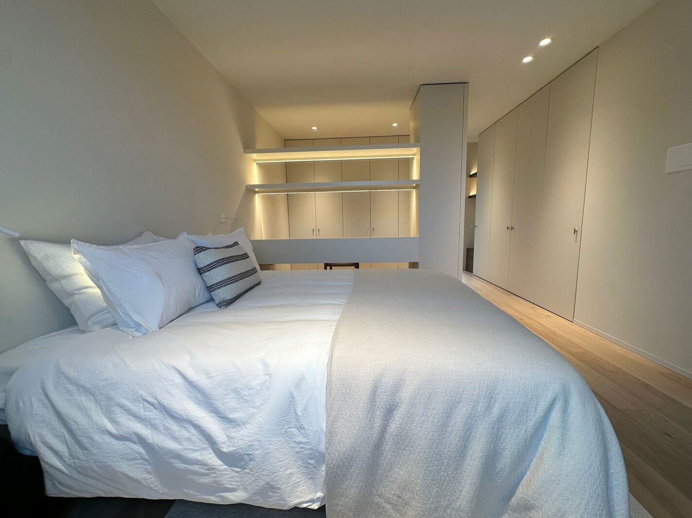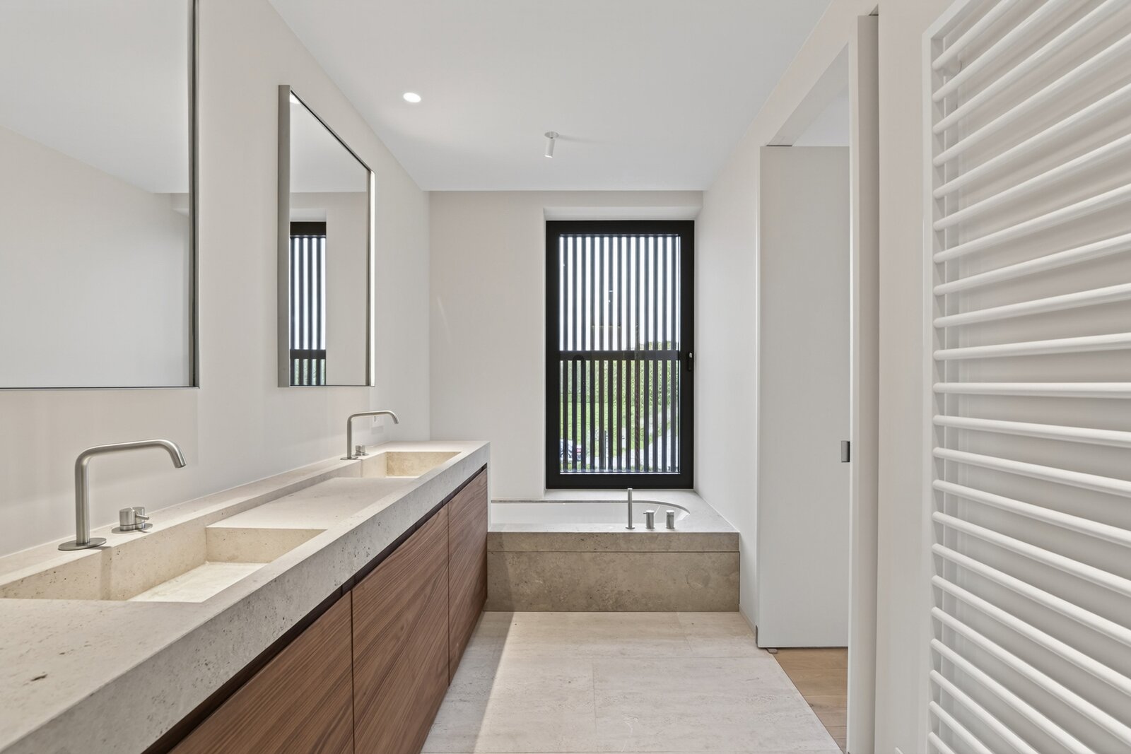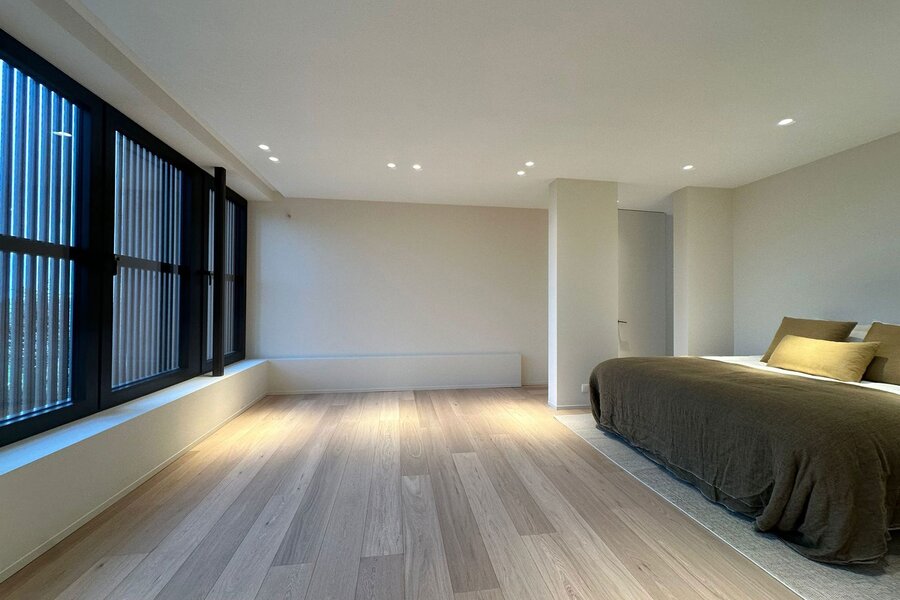Op de eerste verdieping bevinden zich vier volwaardige slaapkamers, elk met een eigen badkamer. De master bedroom beschikt over een volledig ingerichte dressing met maatwerk.