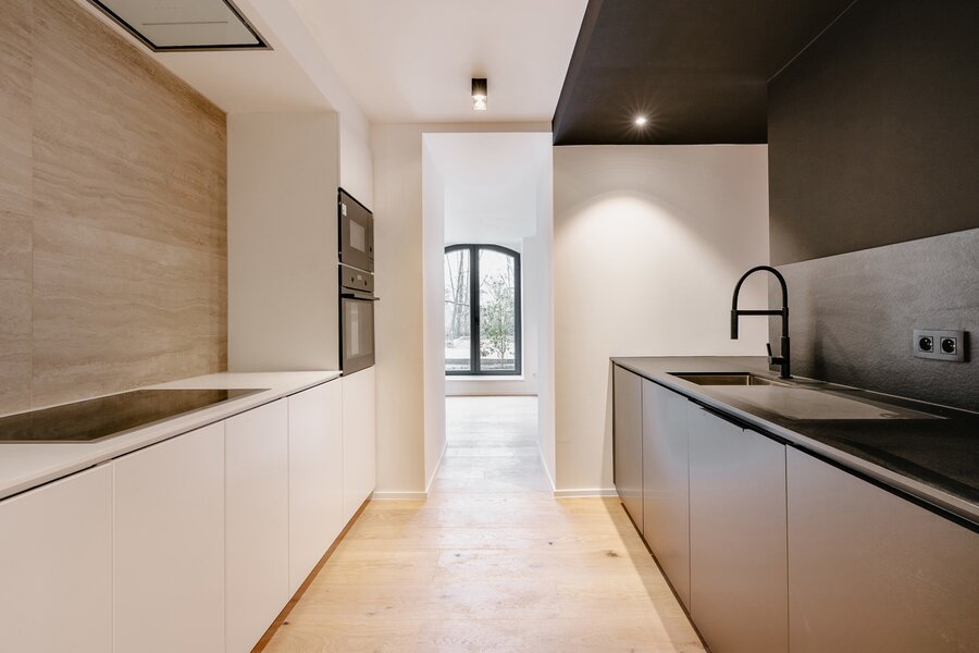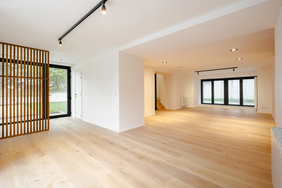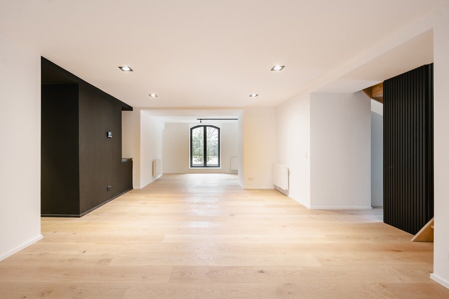 De aangeboden duplex heeft een oppervlakte van ongeveer 220 m² en beschikt over royale ruimtes en een aangename lichtinval dankzij de zuidwestelijke ligging. Het heeft ook een volledig onafhankelijke ingang, wat het comfort en de privacy van een huis biedt. Het appartement bestaat uit een ruime leefruimte met een woonkamer, een eetkamer en een volledig uitgeruste keuken op maat. Het geheel komt uit op een terras van ±17 m², dat overgaat in een privétuin. Het slaapgedeelte omvat drie slaapkamers, een kantoor, een badkamer en een doucheruimte grenzend aan de ouderslaapkamer. Twee parkeerplaatsen en een grote kelder maken dit pand compleet.
