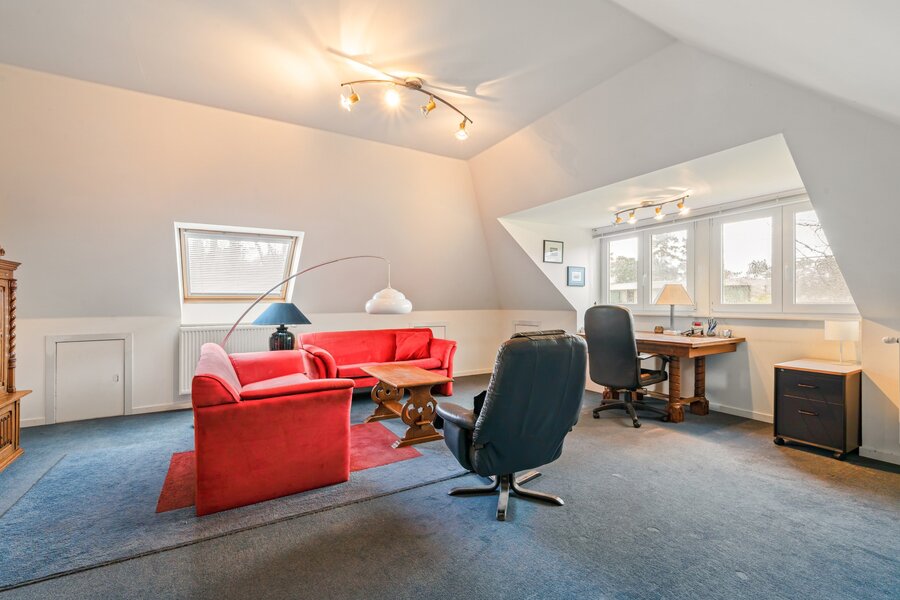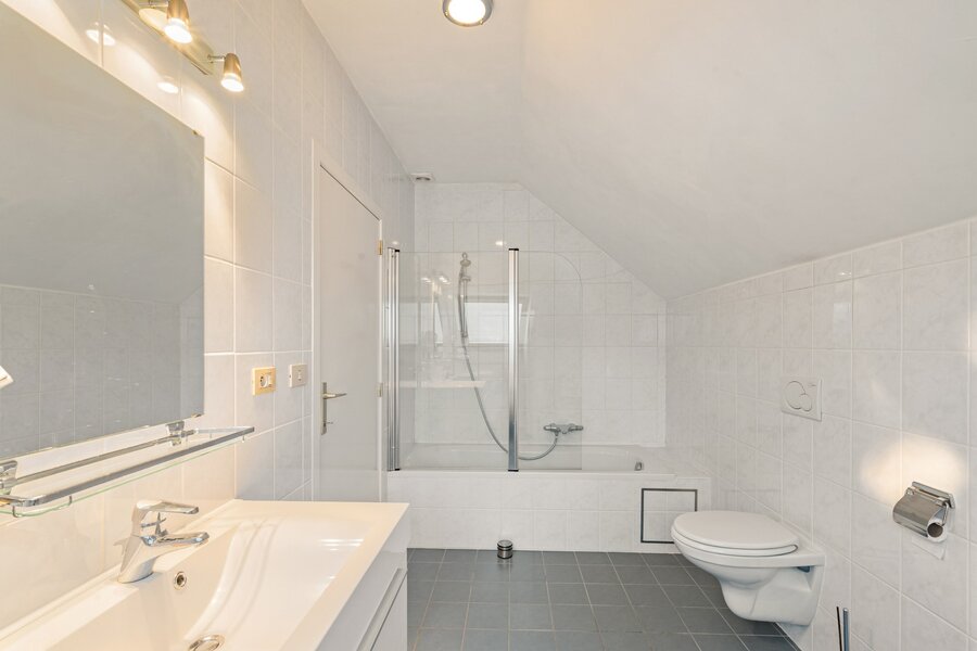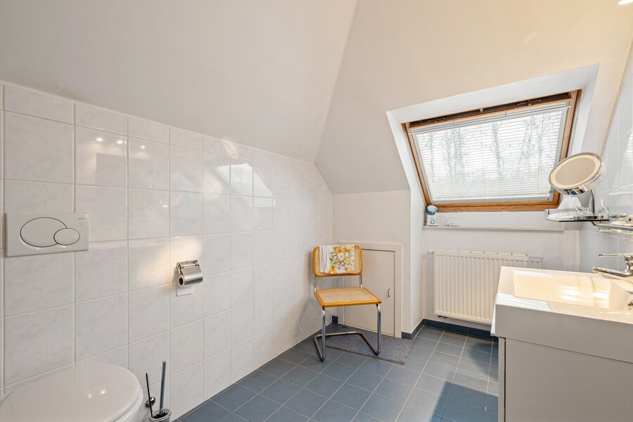 Op de eerste verdieping bevinden er zich 3 volwaardige slaapkamers en een tweede badkamer met ligbad, lavabomeubel en toilet.