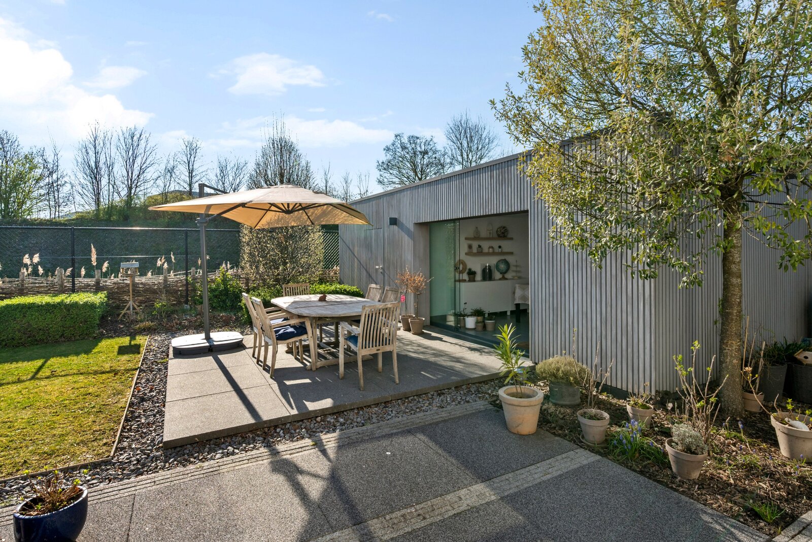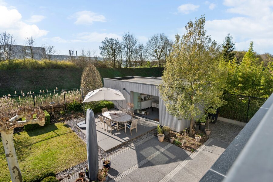 De buitenruimte is een oase van rust: onderhoudsvriendelijk aangelegd, volledig omheind en voorzien van een gezellig terras, stijlvolle beplanting en een elegant poolhouse – ideaal voor lange zomeravonden in alle privacy.