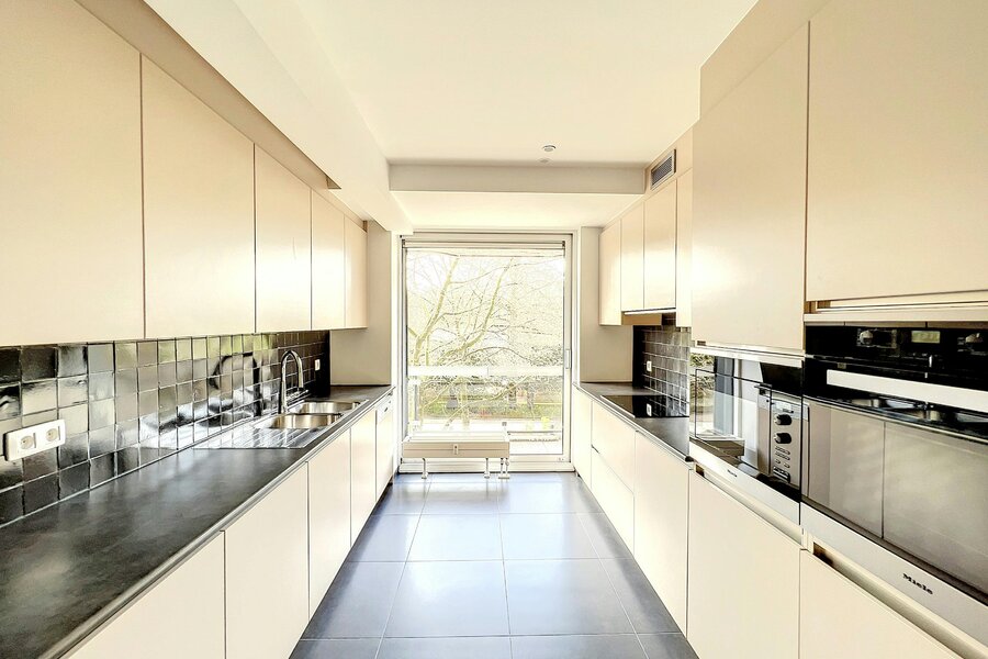Vlakbij het Jubelpark, prachtig standingvol, volledig gerenoveerd appartement van 160m² gelegen op de 2de verdieping. Het bestaat uit een woonkamer met parket, volledig ingerichte keuken, 3 slaapkamers, dressing, badkamer, douchekamer, muurkasten, 2 terrassen, 1 kelder en een parkeerplaats is verplicht in het gebouw voor 25.800 €