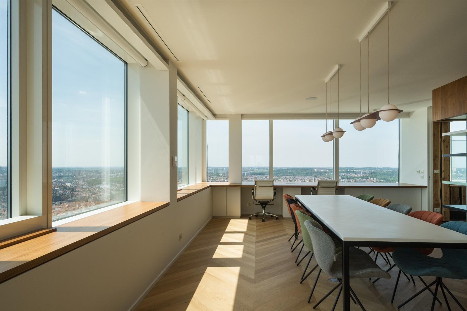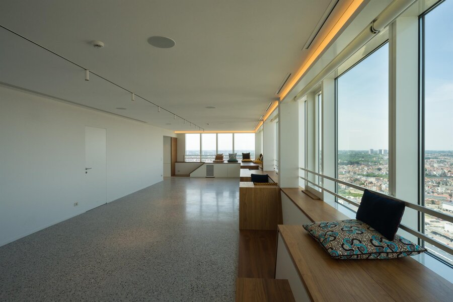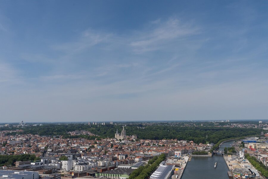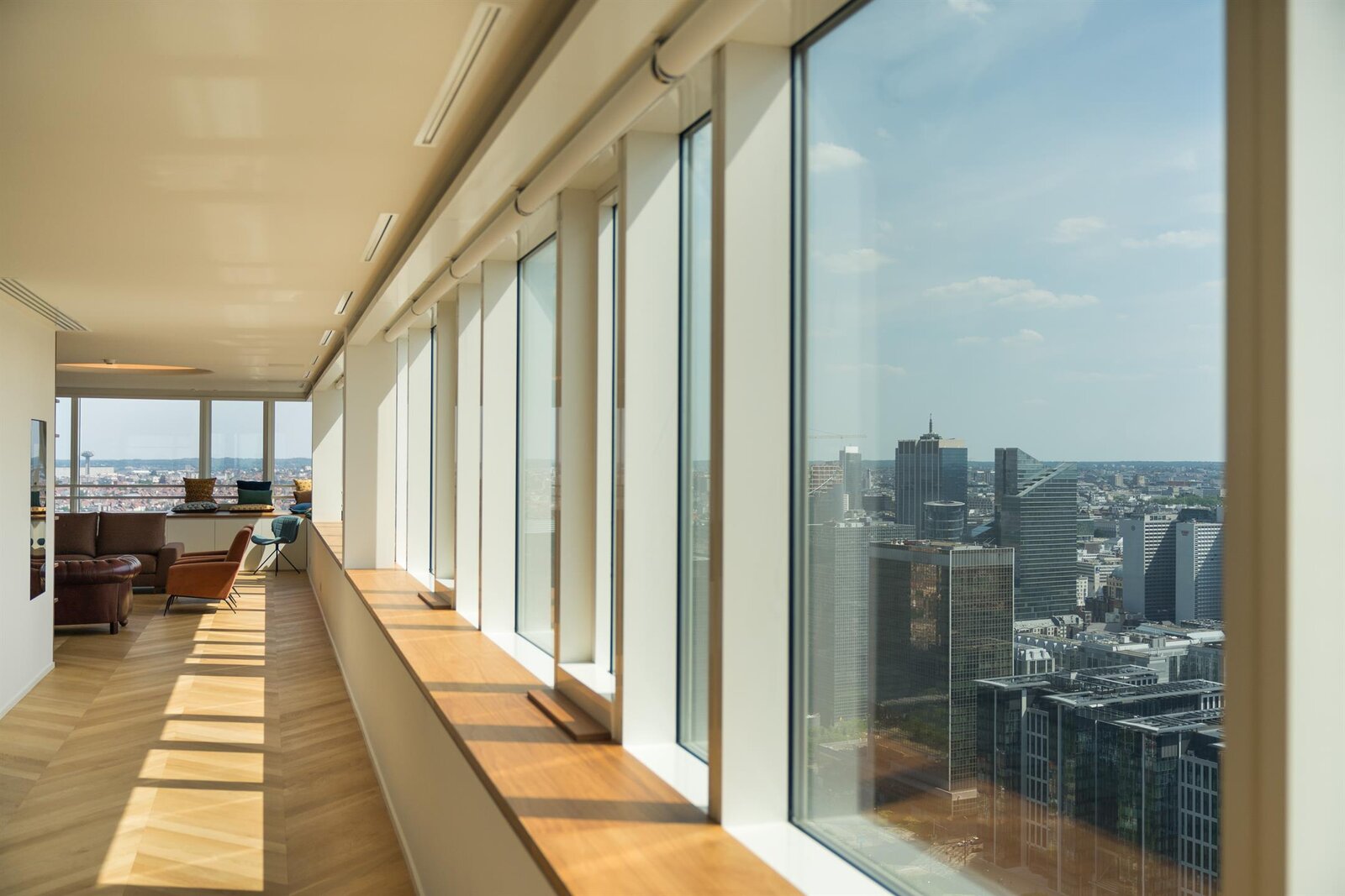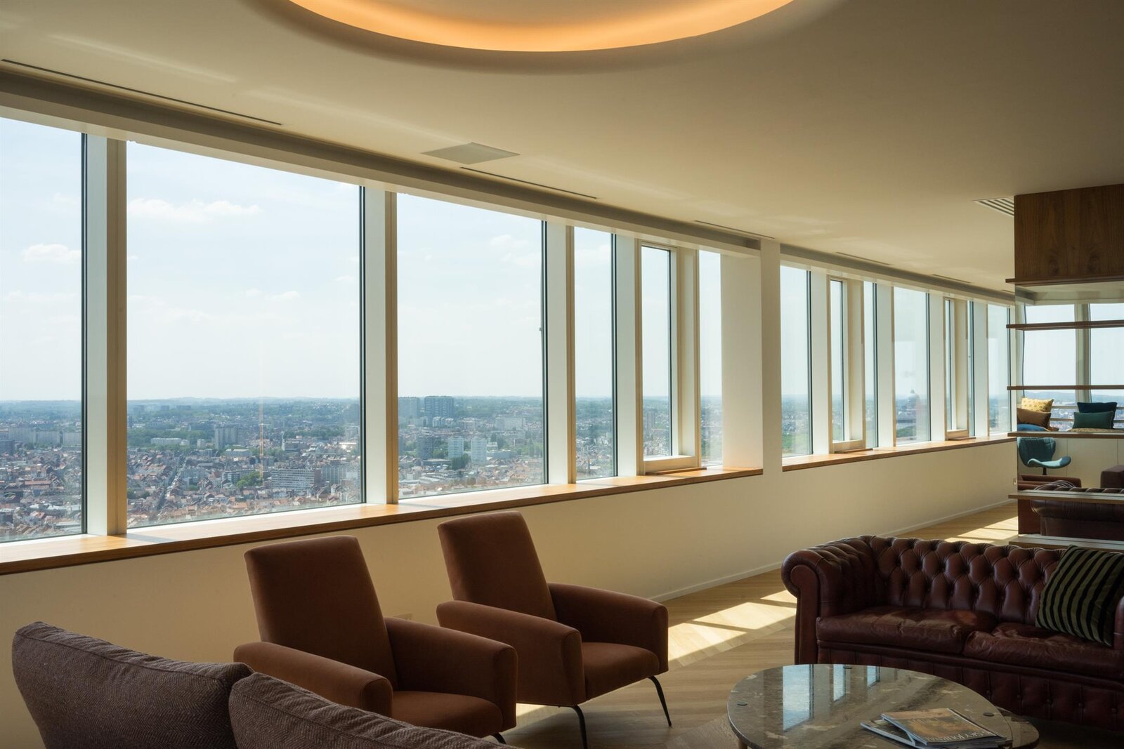 De “ hoogste PENTHOUSE van België” torent 140 meter hoog boven Brussel. Het appartement van 540m² bestaat uit een inkomhal met vestiaire met in het verlengde een wintertuin met bar die uitgeeft op een groot terras, een ruime leefruimte en een prachtige super uitgeruste Amerikaanse keuken. Het slaapgedeelte bestaat uit 3 suites met elk een slaapkamer met dressing en aangrenzende badkamer. Een grote ontvangstruimte, een panoramische sauna en een mezzanine vervolledigen dit luxueus appartement. 2 ondergrondse garageboxen, 2 parkeerplaatsen en kelders.
