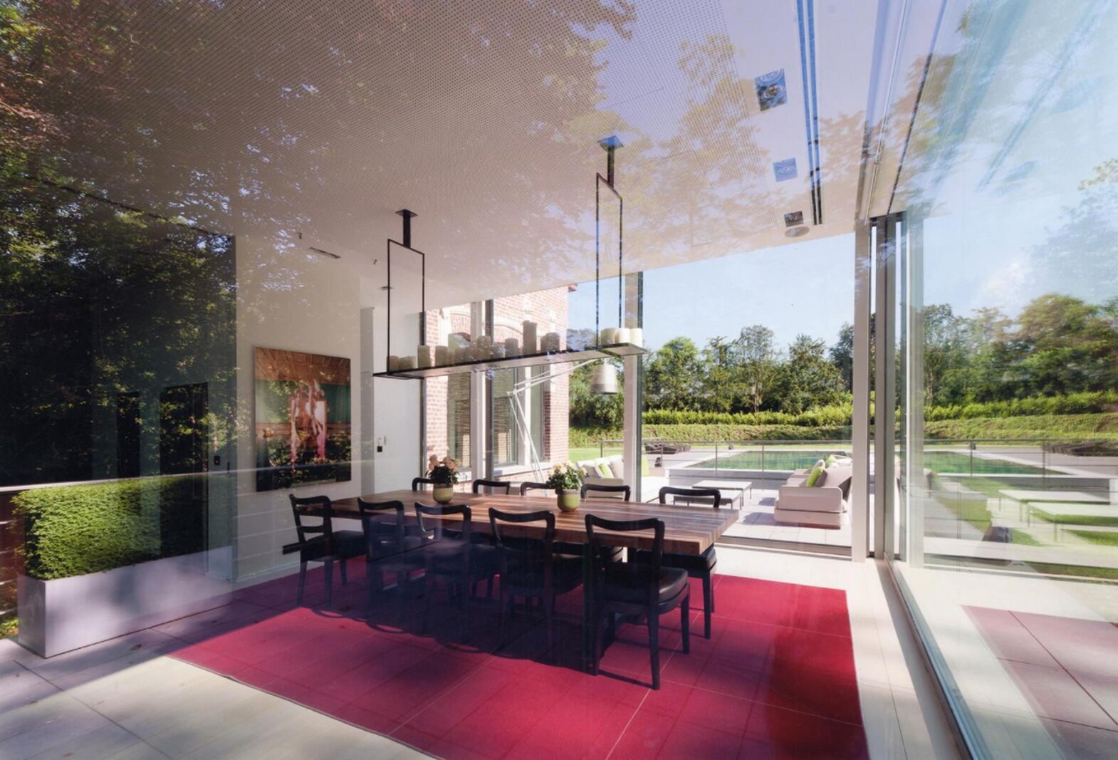 Villa met 6 slaapkamers in een prachtige tuin van 75a met een 13m buitenzwembad. Gelijkvloers: inkomhal, vestiaire, wc, grote woonkamer die het huis doorkruist met een zuidelijk deel en een noordelijk deel, glazen eetkamer met zicht op de tuin, volledig ingerichte keuken, prachtig terras rondom het zwembad. 1e verdieping: twee suites met een grote kleedkamer, elk met een eigen aangrenzende badkamer en een exotisch houten terras. Kantoor met uitzicht op de tuin. 2de verdieping: 3 slaapkamers, twee met mezzanine + een kleedkamer en een doucheruimte voor elke slaapkamer. Lager niveau met toegang tot de tuin: conciërge, bioscoopzaal, zenkamer met buitenpatio, binnenpatio, garage, technische ruimtes. Lift. PEB wordt verwerkt
