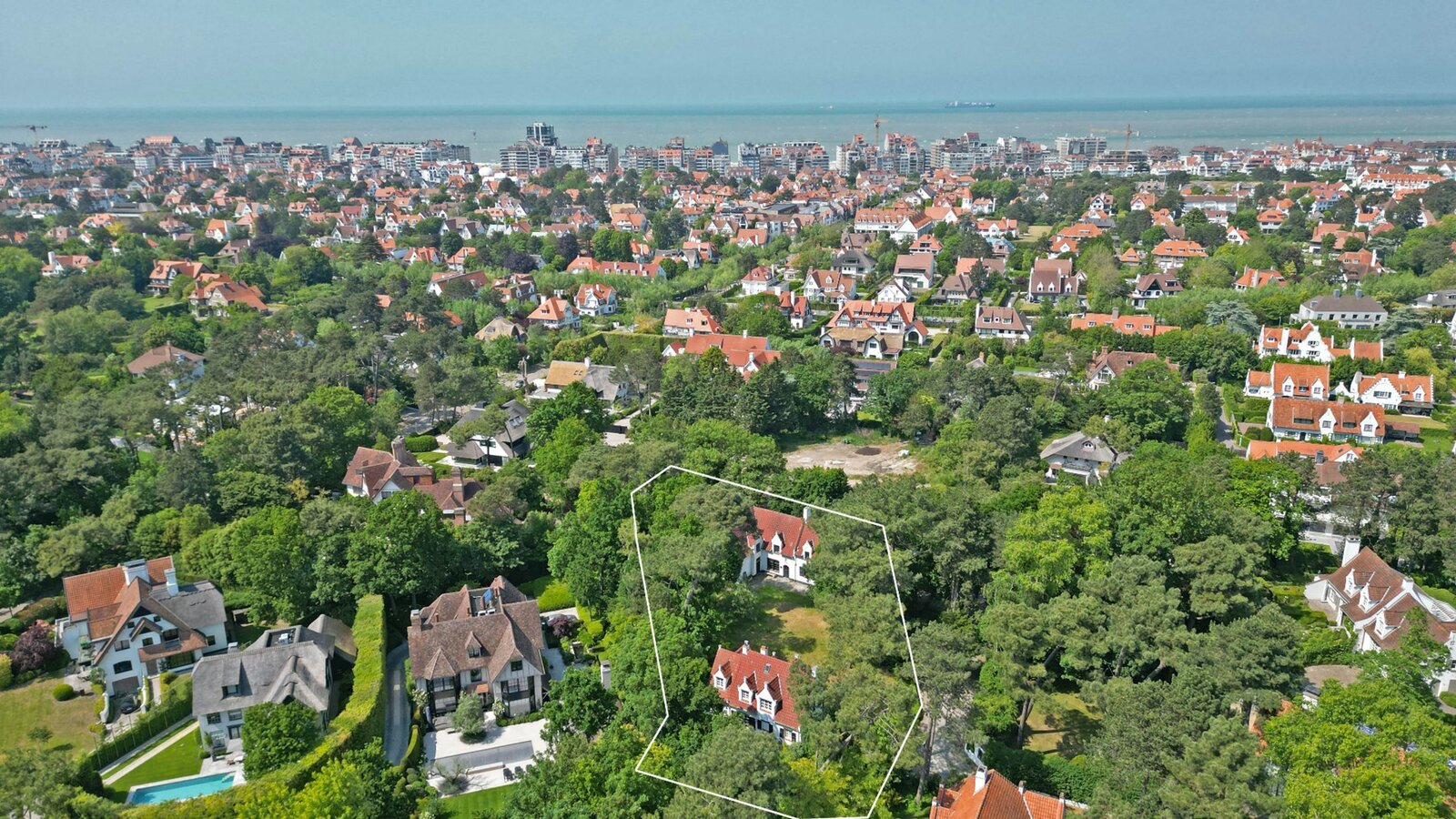 Uitzonderlijke eigendom te koop, verscholen tussen de paadjes in hartje Zoute, vlakbij de Royal Zoute Golf Club op een terrein van 2.421m².