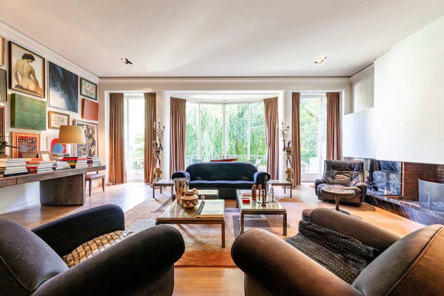 In de onmiddellijke nabijheid van het Brugmannplein, uitzonderlijk herenhuis uit 1939 in art-decostijl, ongeveer 1 200 m², gelegen in een park van 14,5 hectare dat toegankelijk is via een koetspoort.